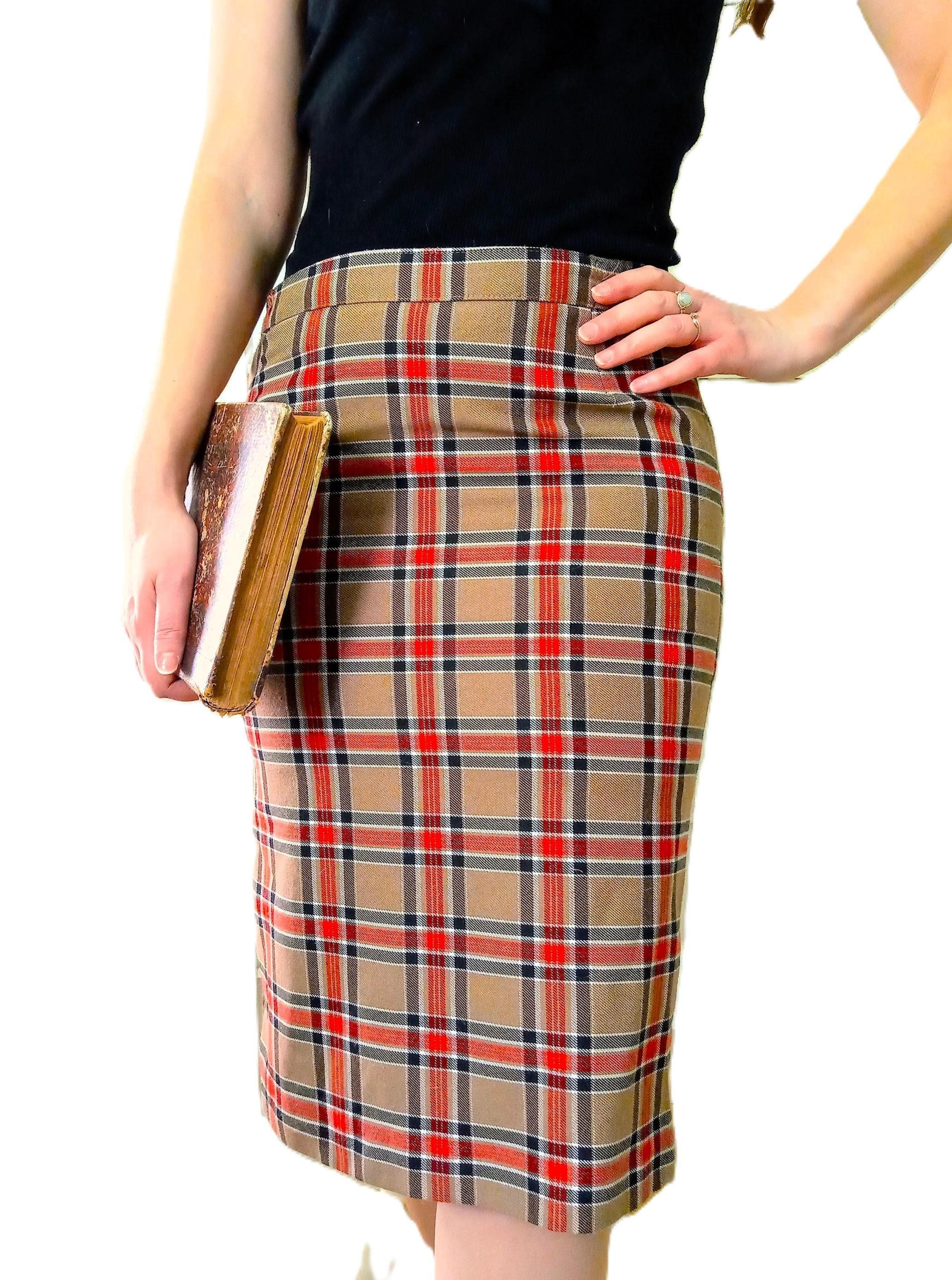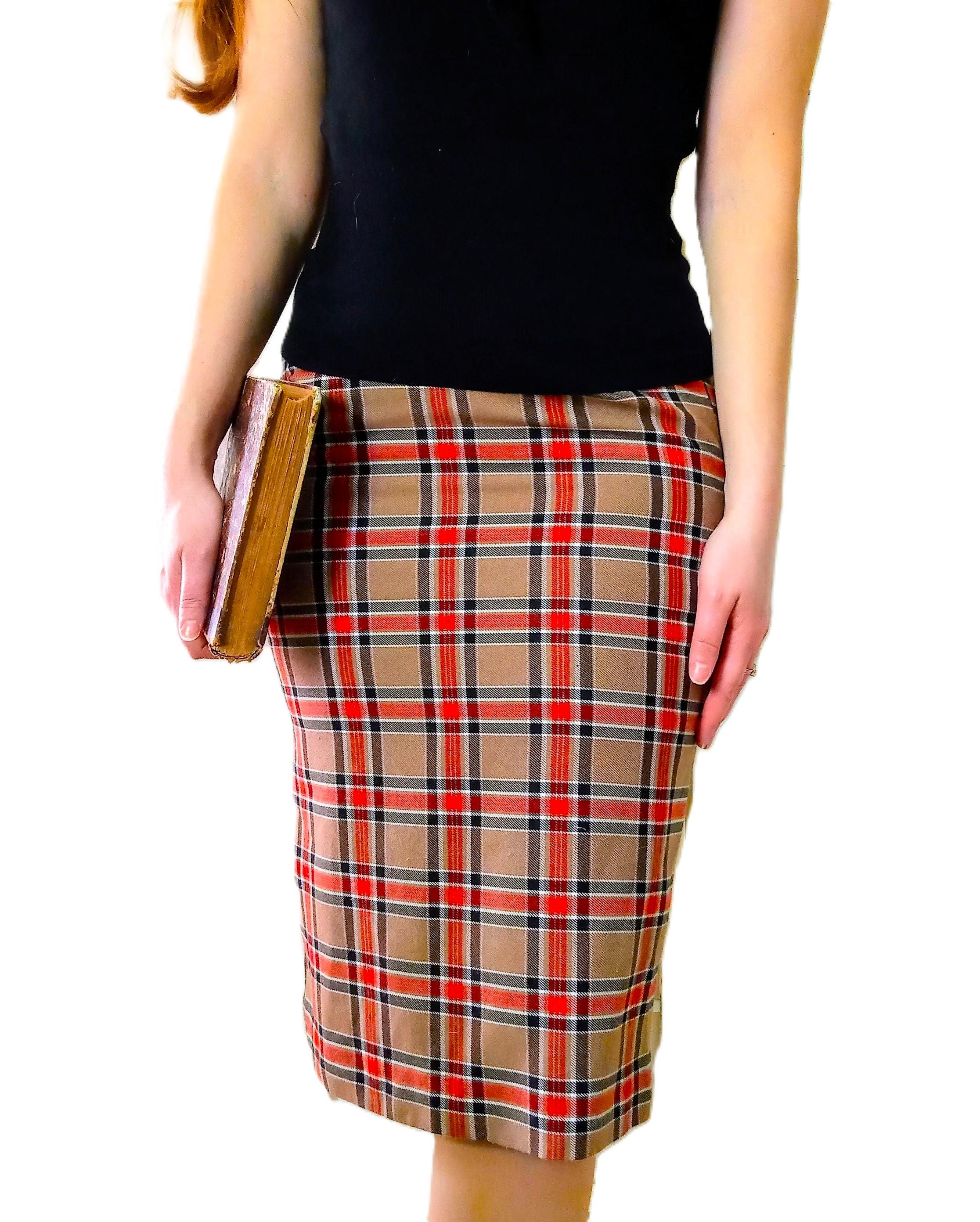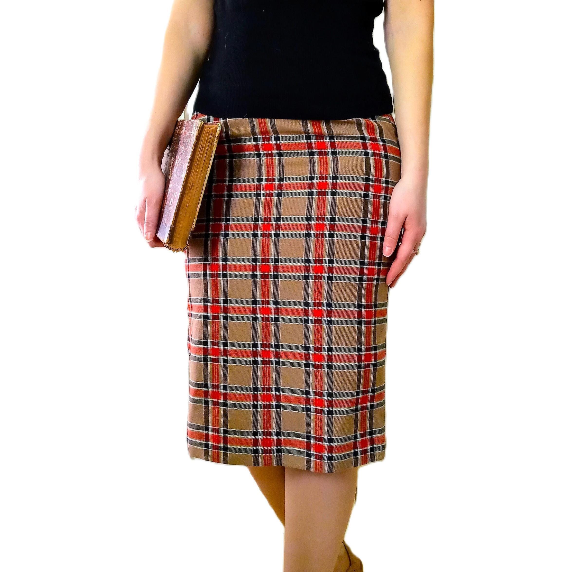 🇬🇧Lovely camel brown, red, black and white Scottish pencil skirt; 50s/60s style; made in France in the late 70s or early 80s; 50% polyester, 50% viscose; material is thick enough, warm, does not pique; high elastic waist, zipper and buttonhole at the back; small slit of 11 cm at the back; fully lined, no transparency; very good condition.
