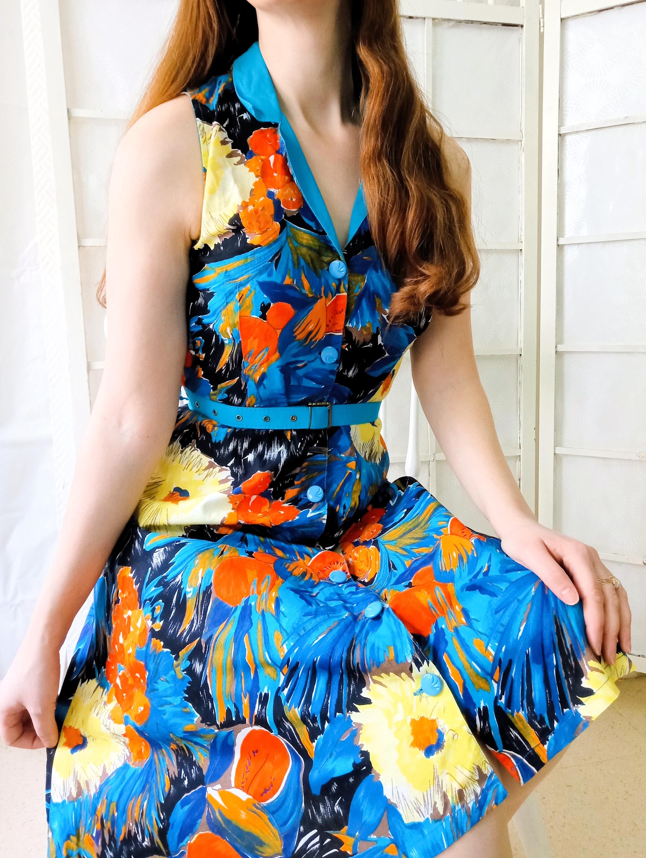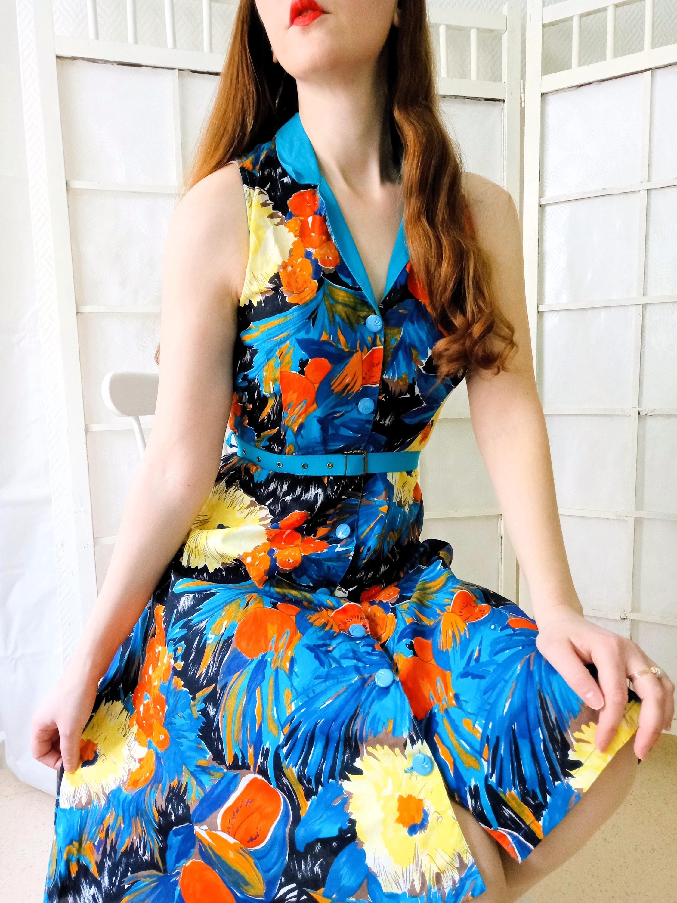 Magnifique robe d'été vintage à motifs floraux et fruit