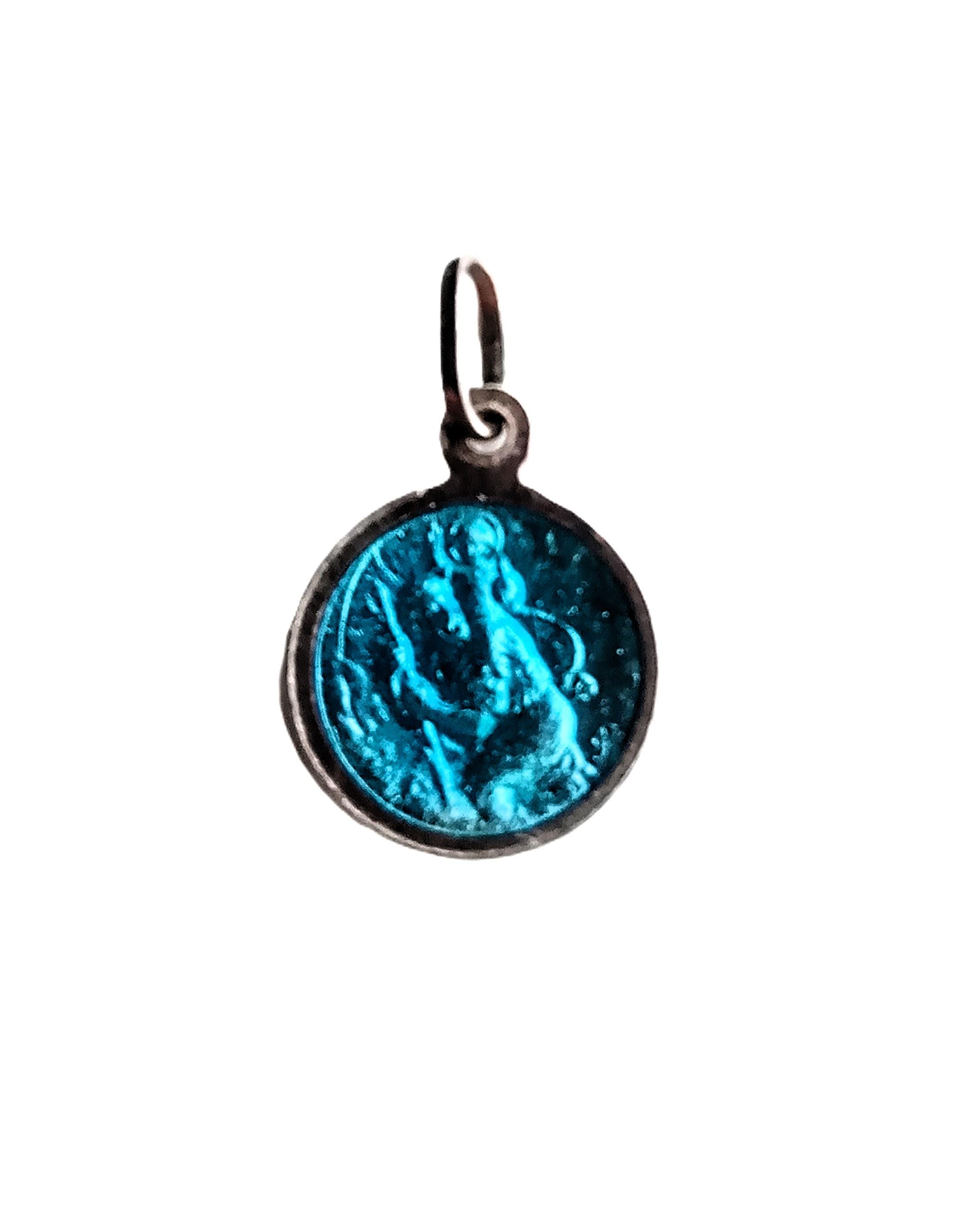 D’un côté, la médaille représente Sainte Thérèse de Lisieux, une figure religieuse catholique, avec des détails fins illustrant sa figure et ses attributs. De l’autre côté, se trouve l’image de Saint Christophe, le patron des voyageurs, symbolisé en train de porter l’Enfant Jésus sur ses épaules. Idéal comme cadeau de baptême pour un bébé ou pour une communion.