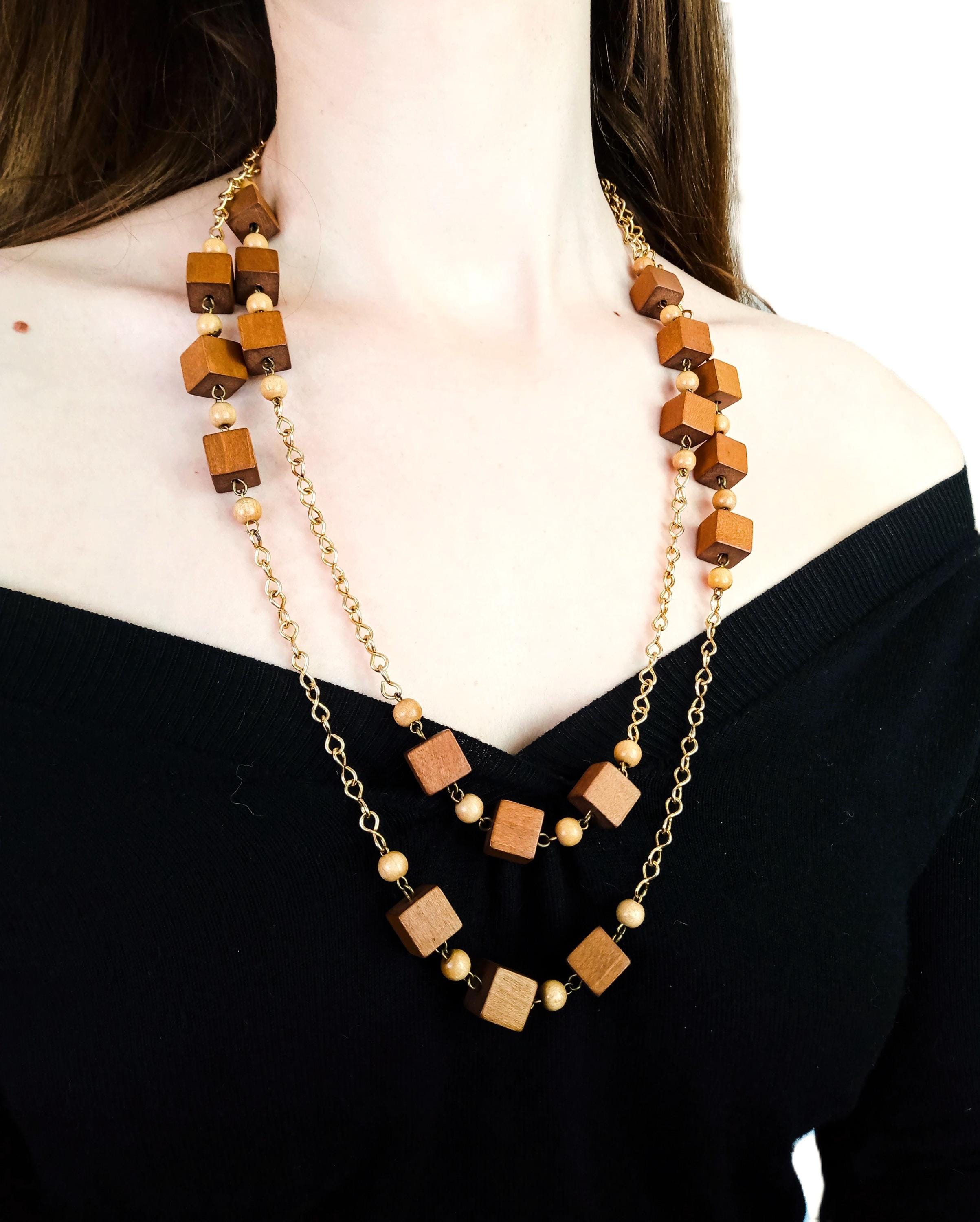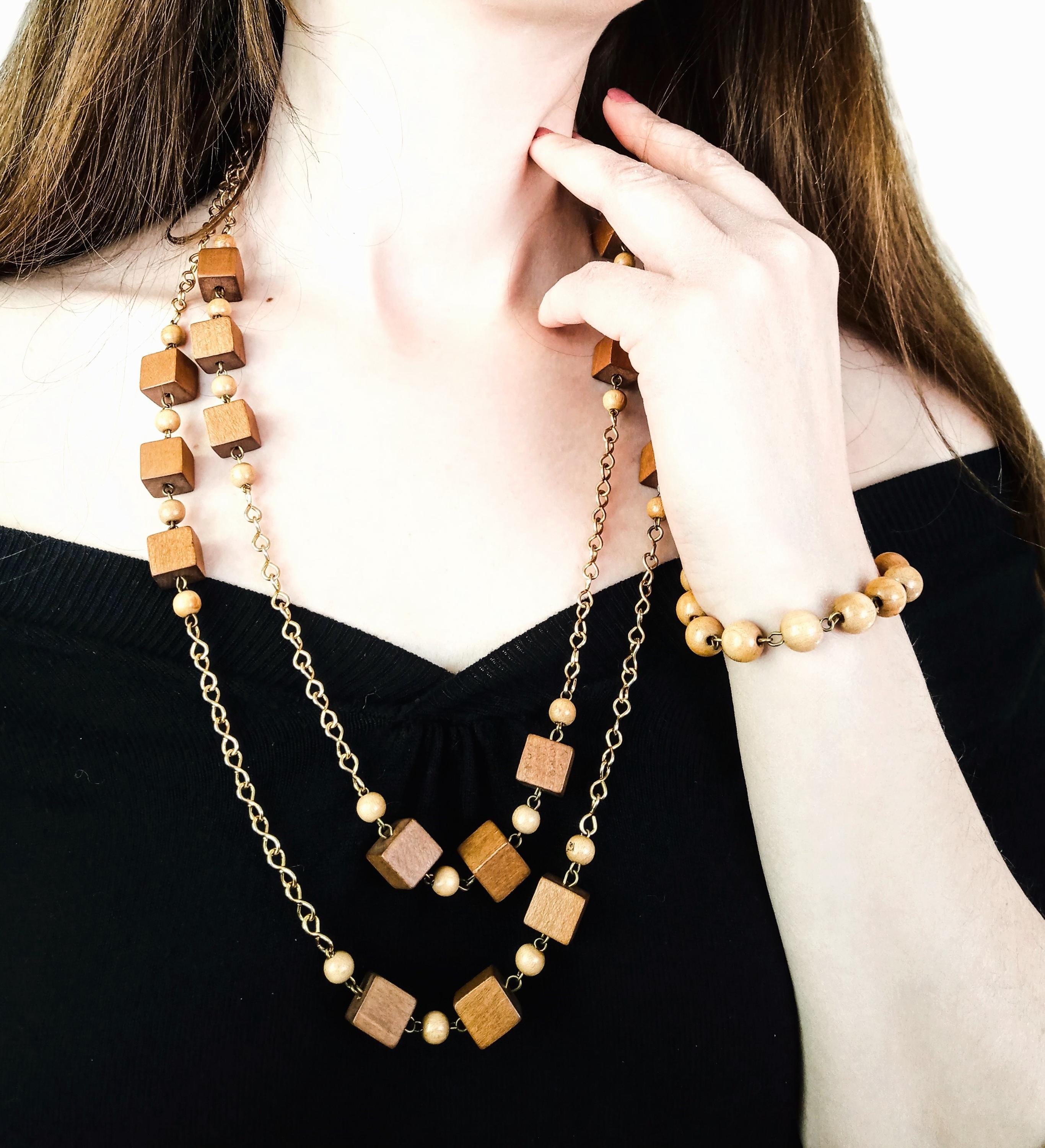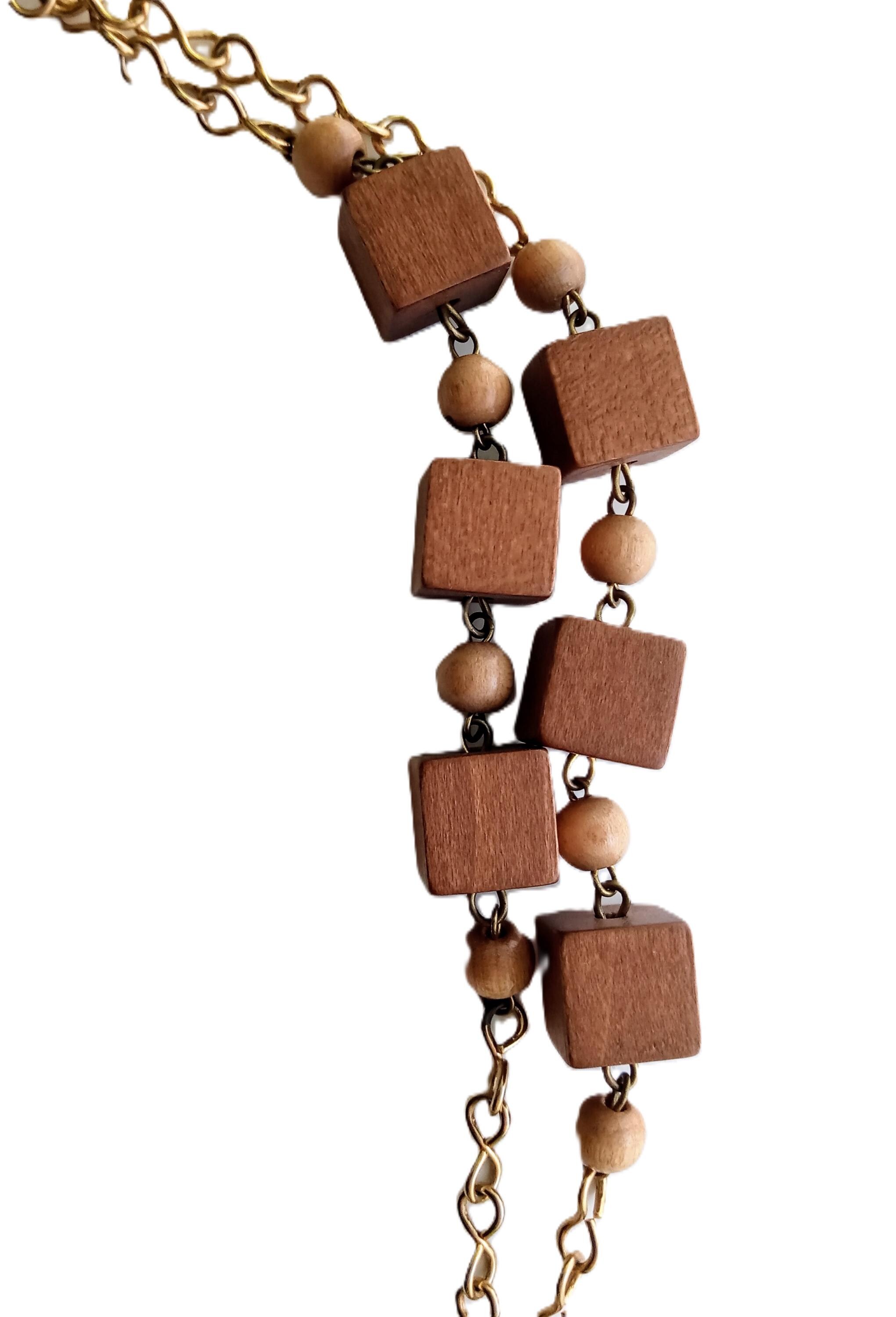 🇬🇧 Discover this magnificent set of vintage jewelry from the 70s: a necklace and a bracelet in wood beads, perfect for a bohemian chic and timeless style.