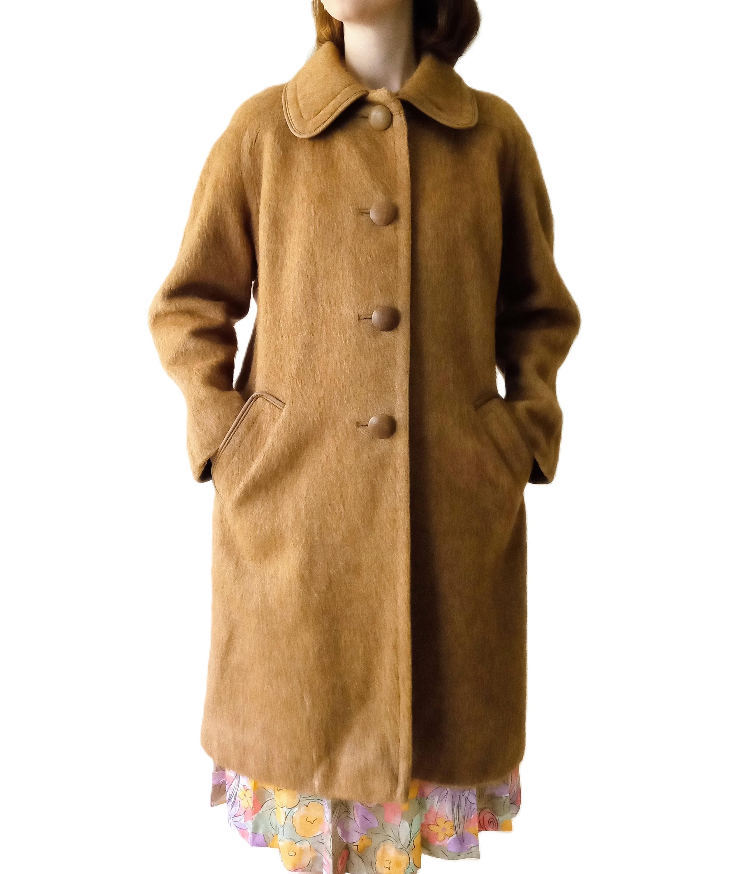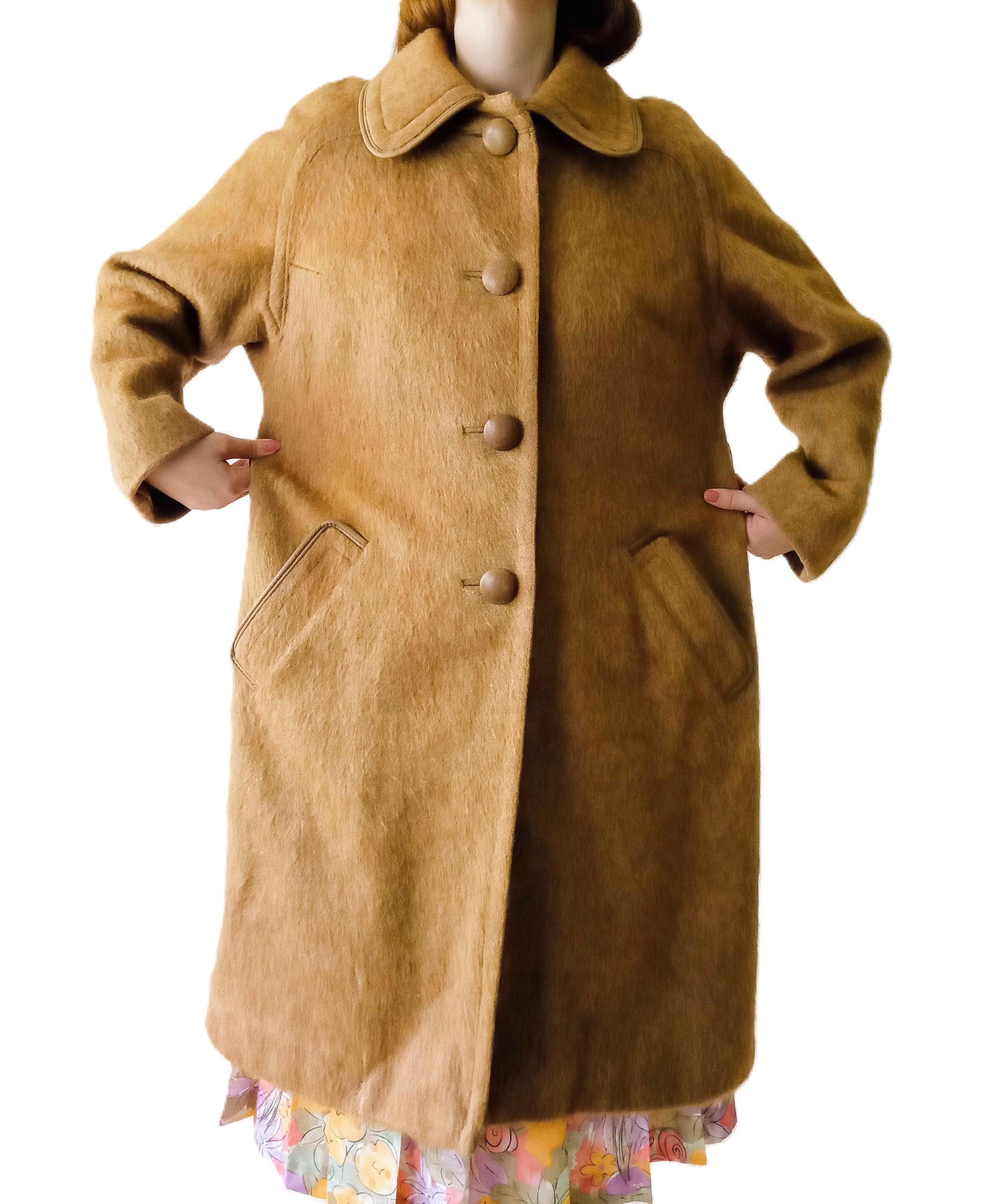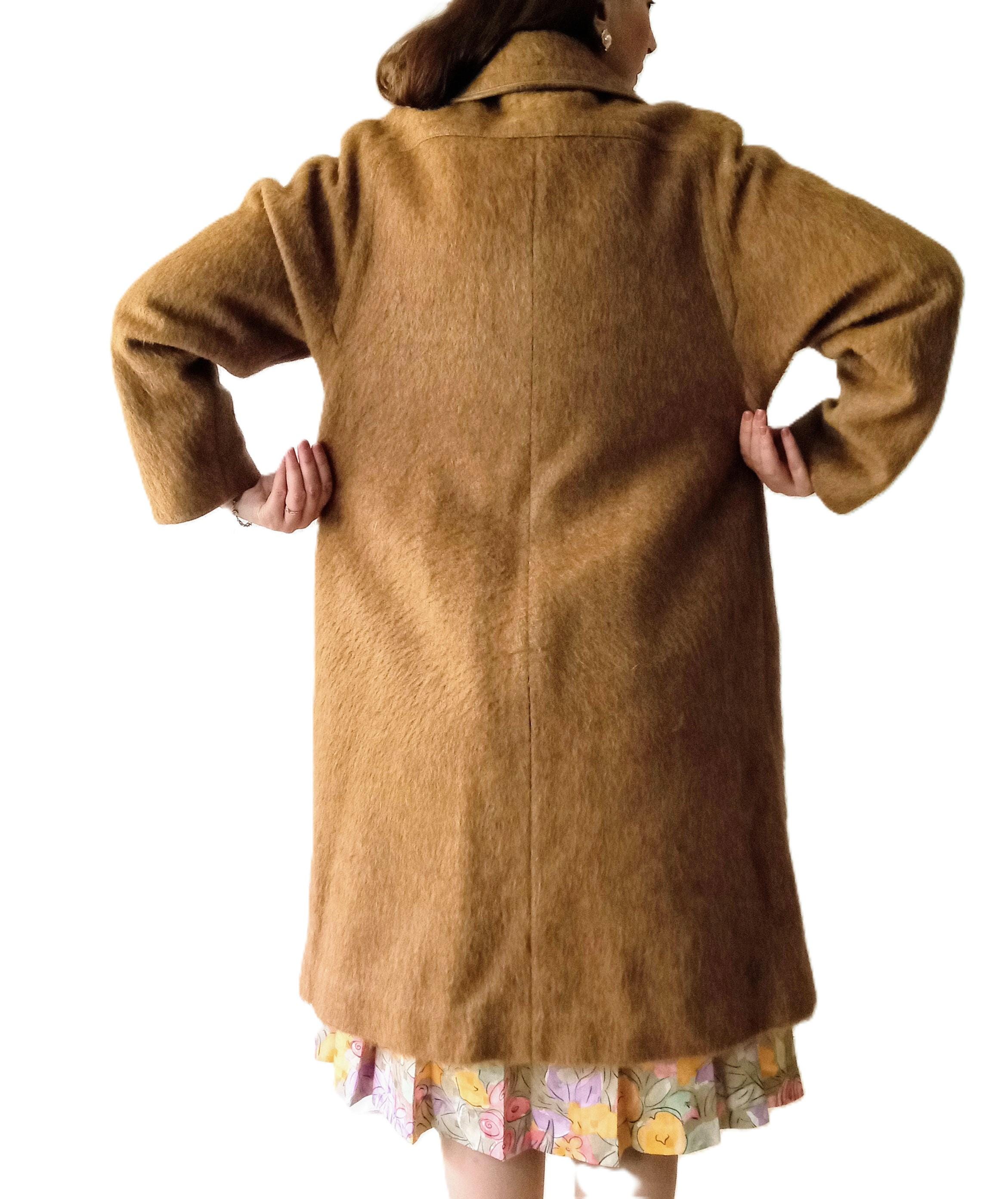 Découvrez cet incroyable manteau vintage de couleur camel des années 70.