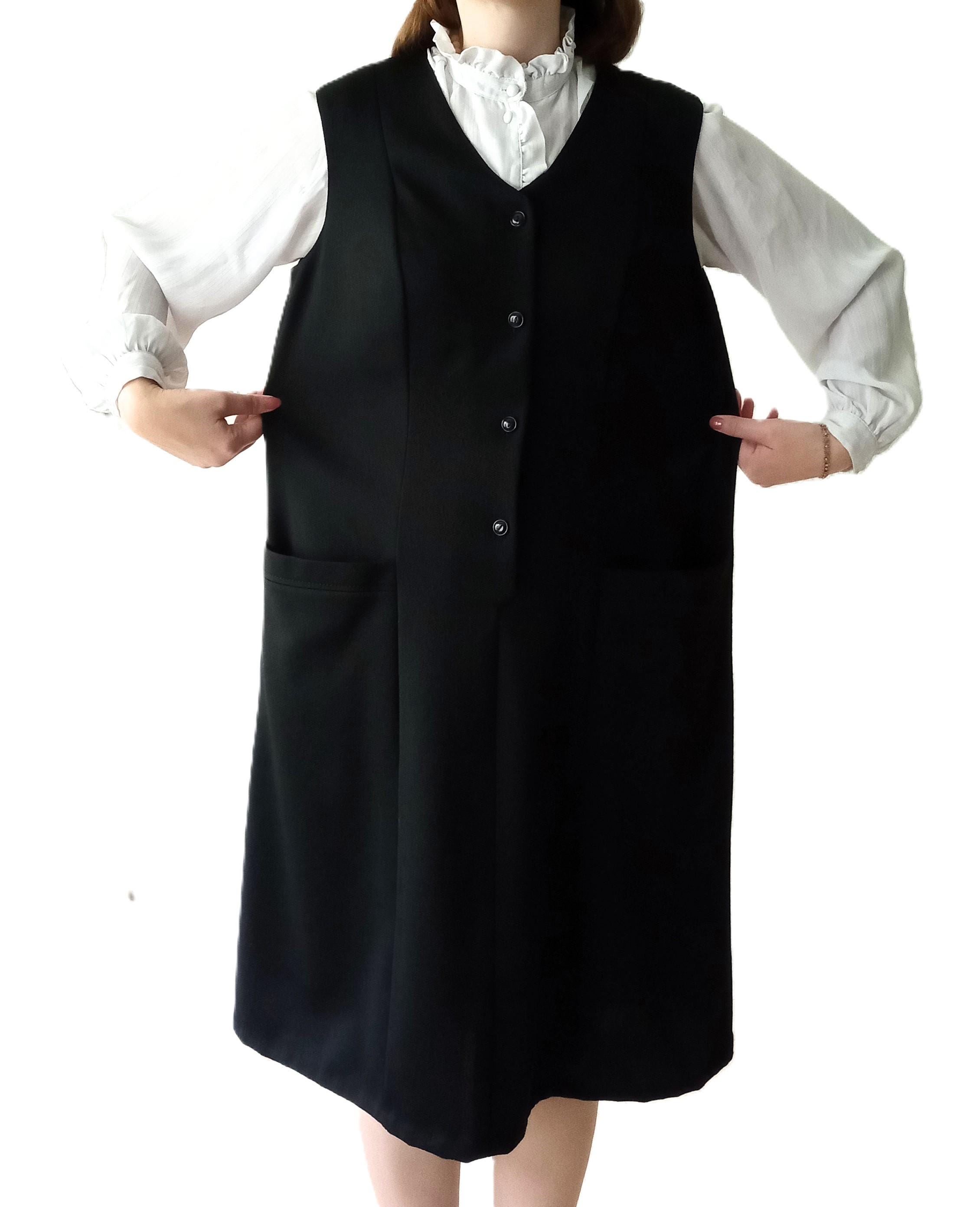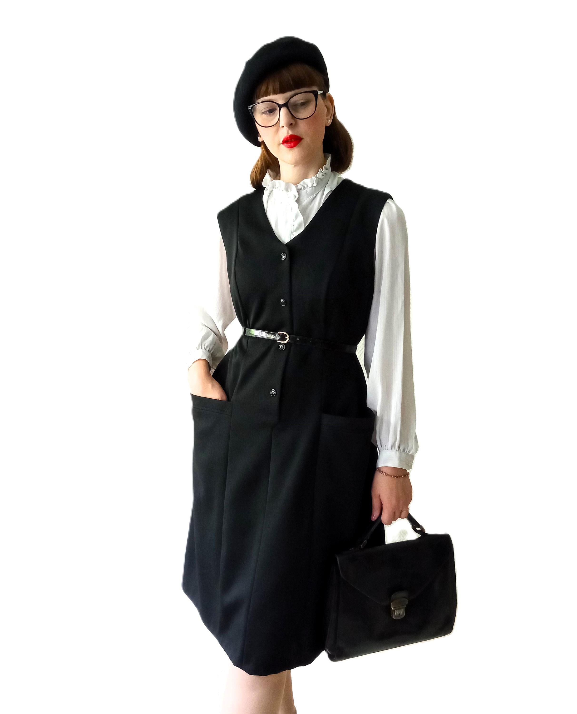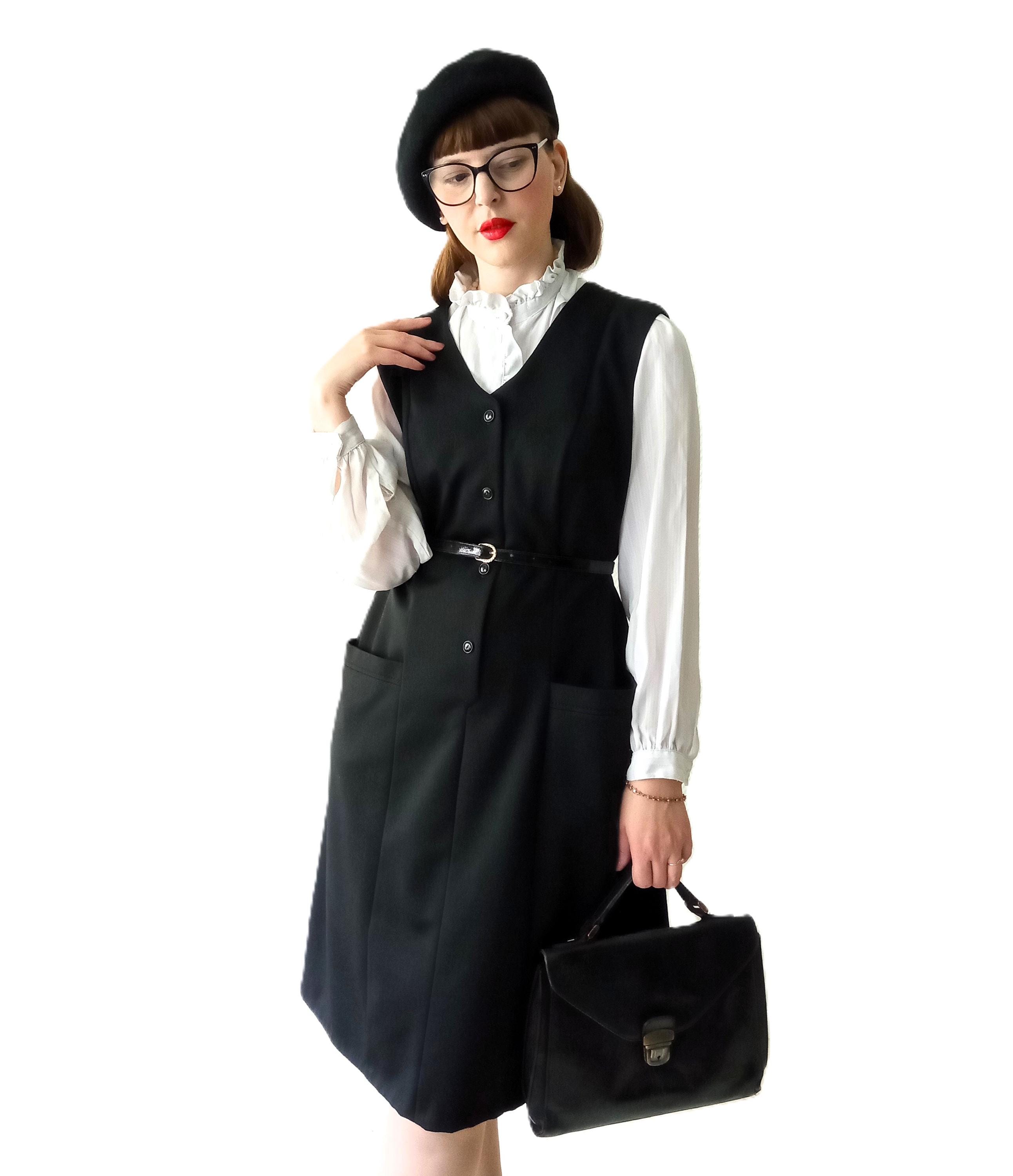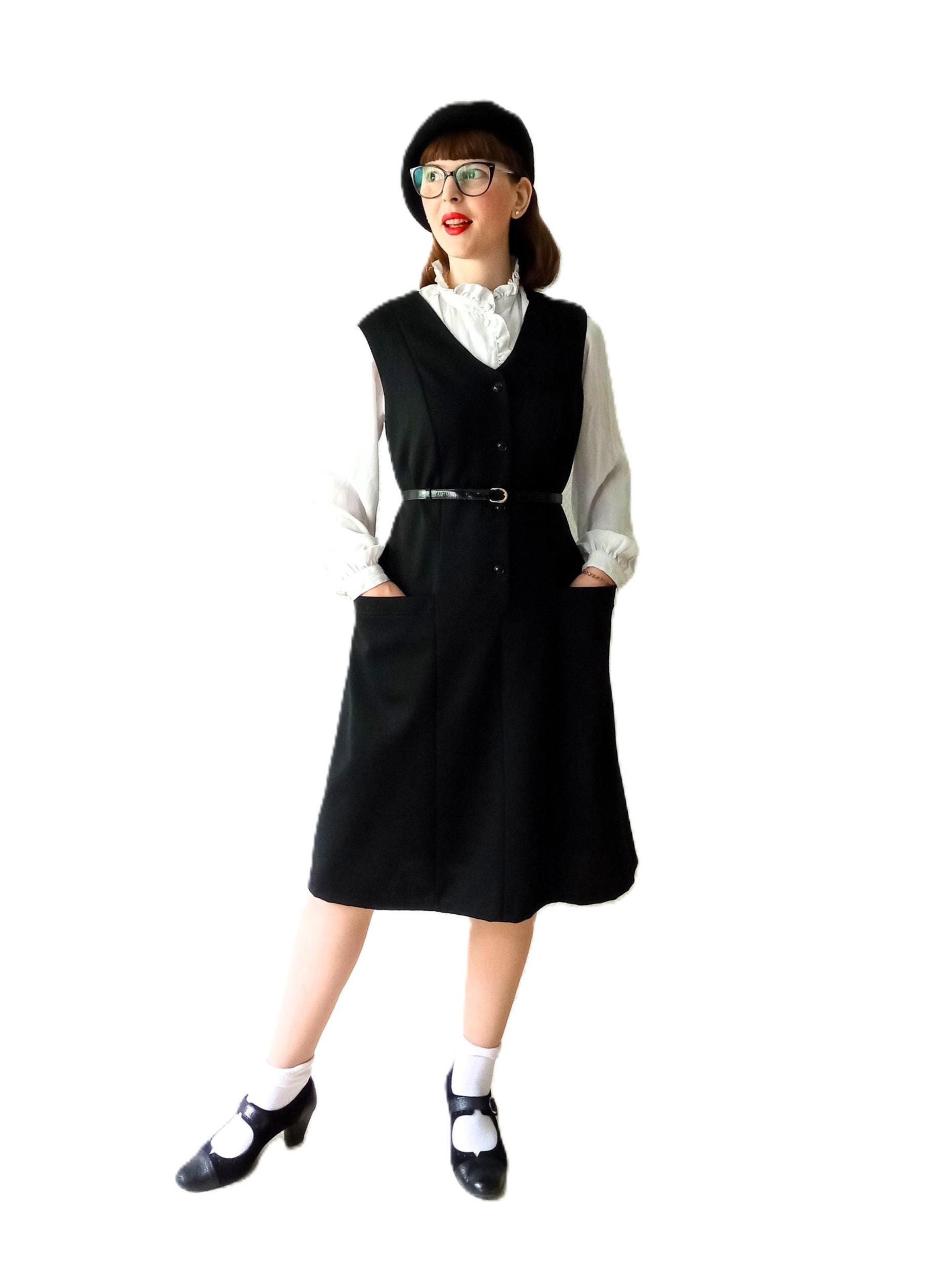 Découvrez cette magnifique robe noire chasuble automne/hiver vintage des années 70, parfaite pour un look rétro rétro.