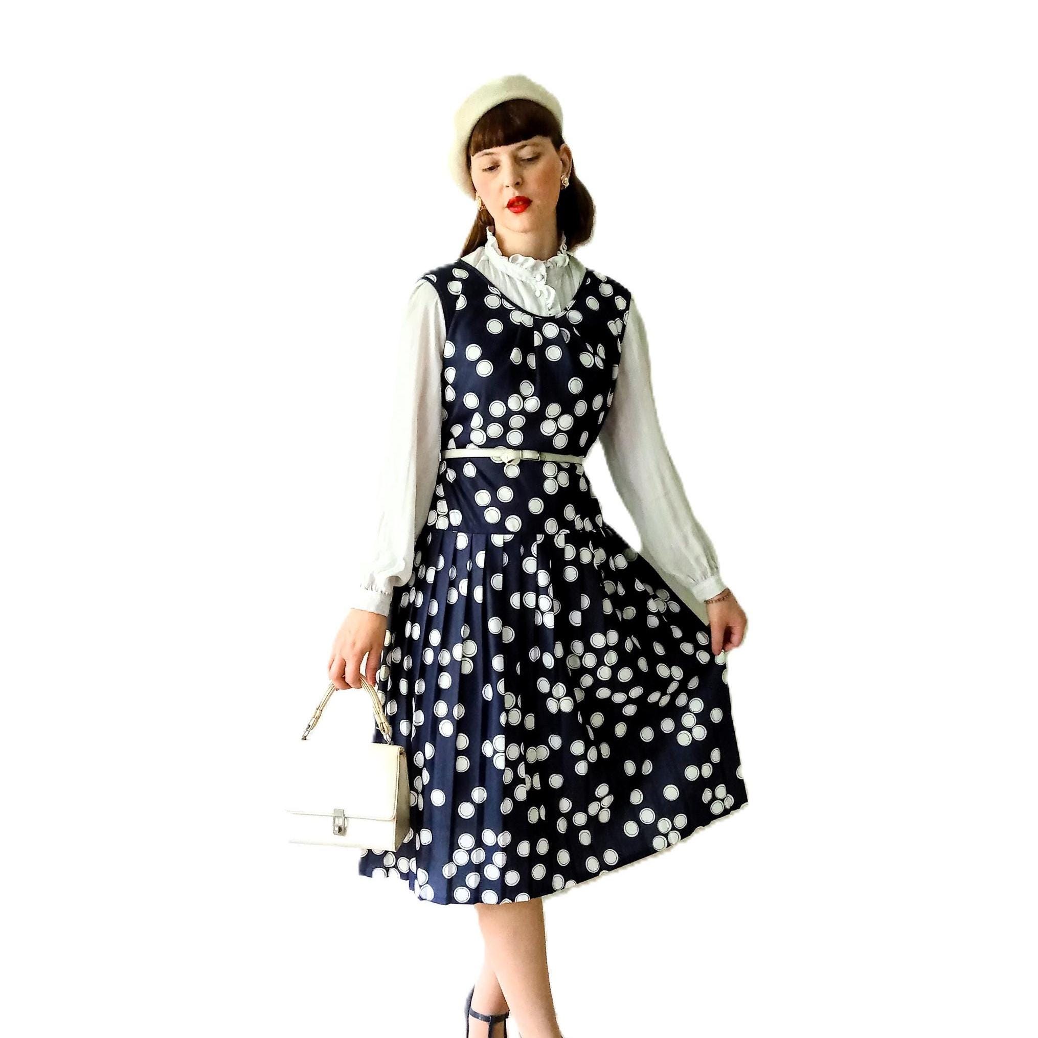 🇬🇧Large Size Polka-Dot Dress Retro Vintage 80s Style 50s & Pin-up