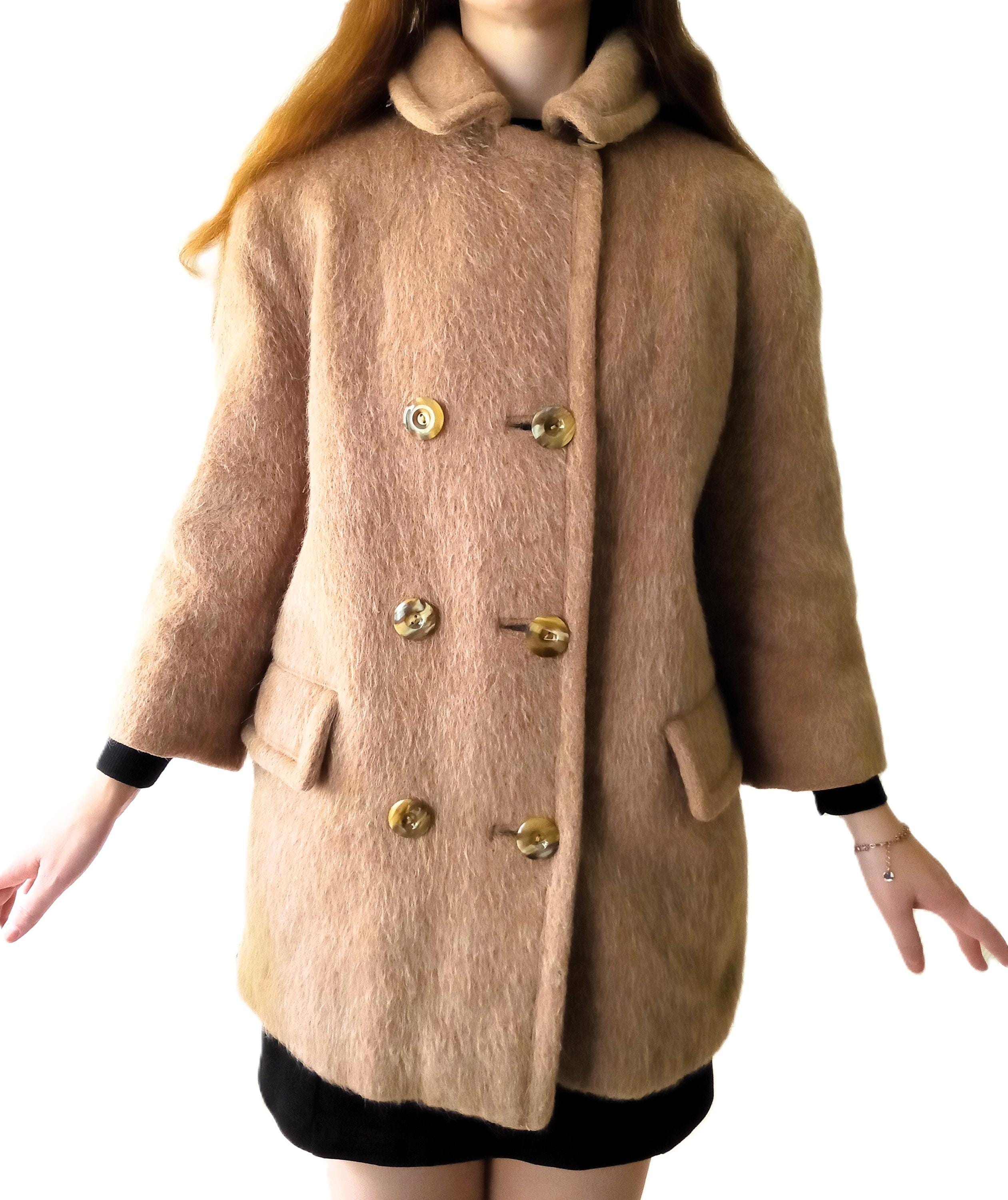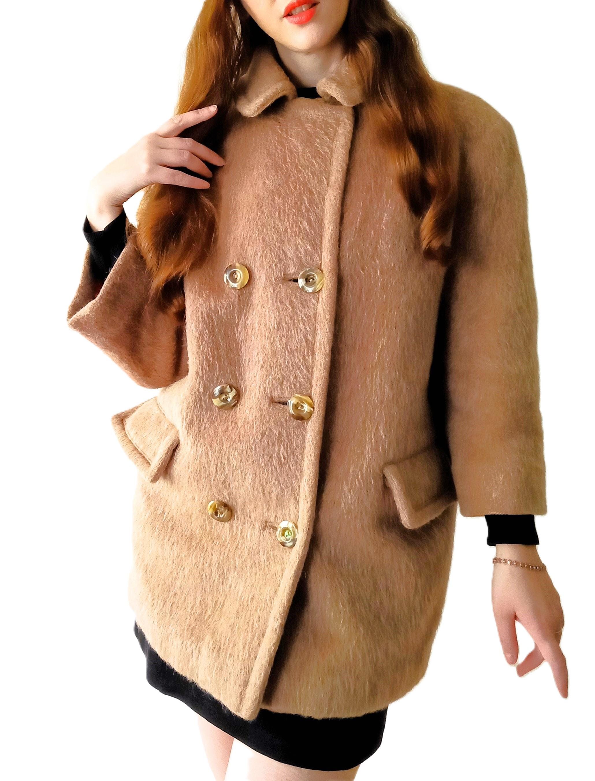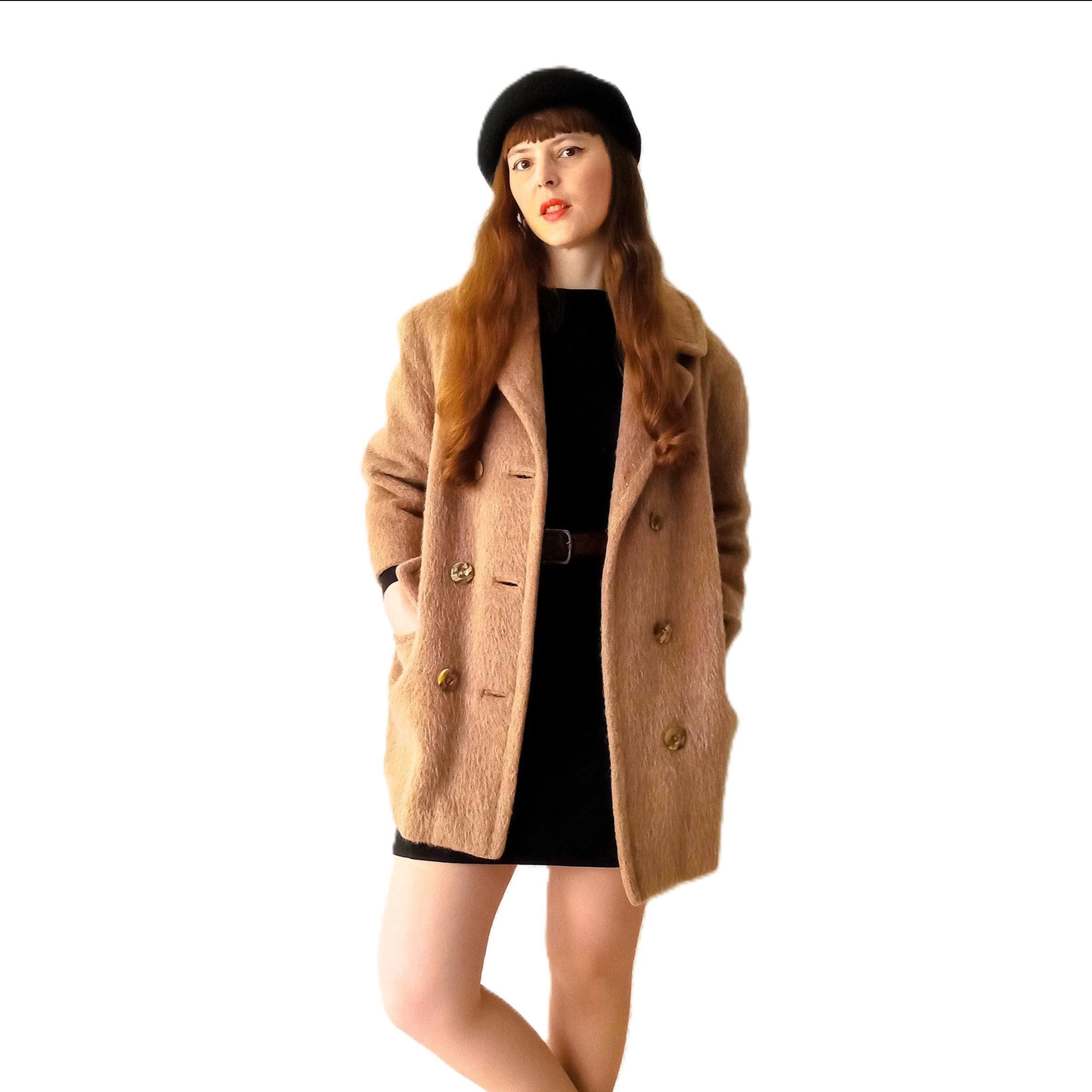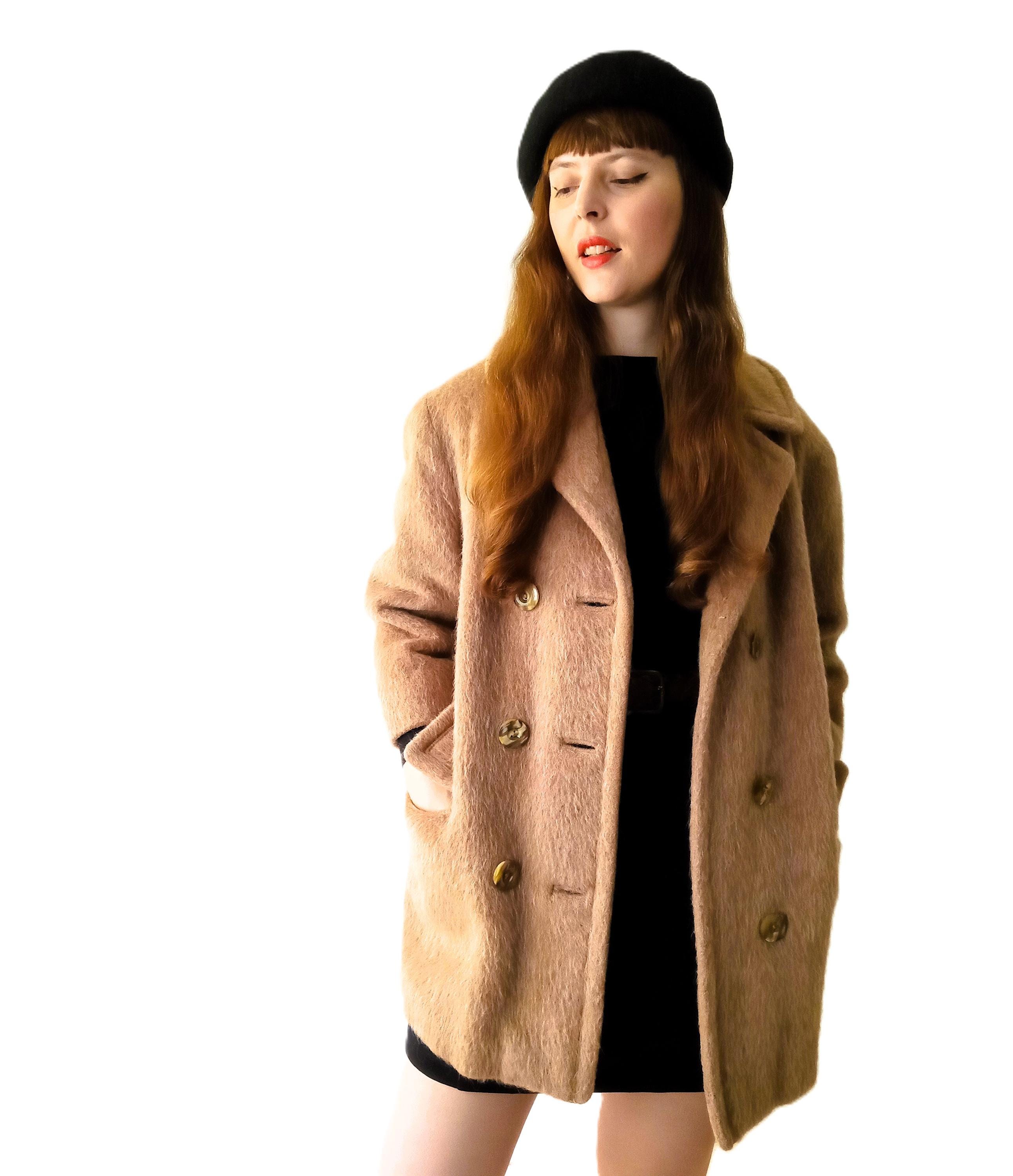 Discover this magnificent vintage Peacoat from the 70s, camel color - dark beige.