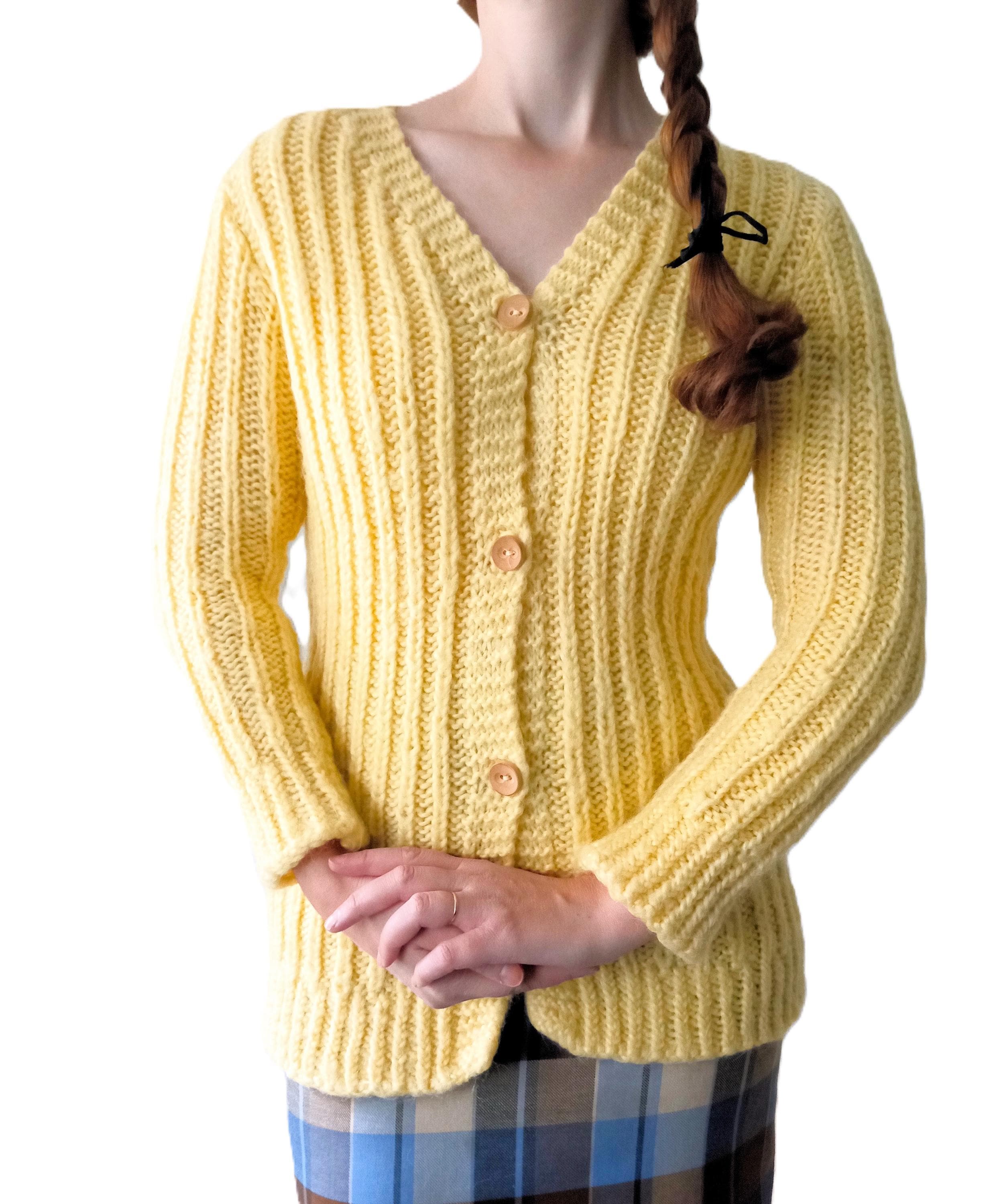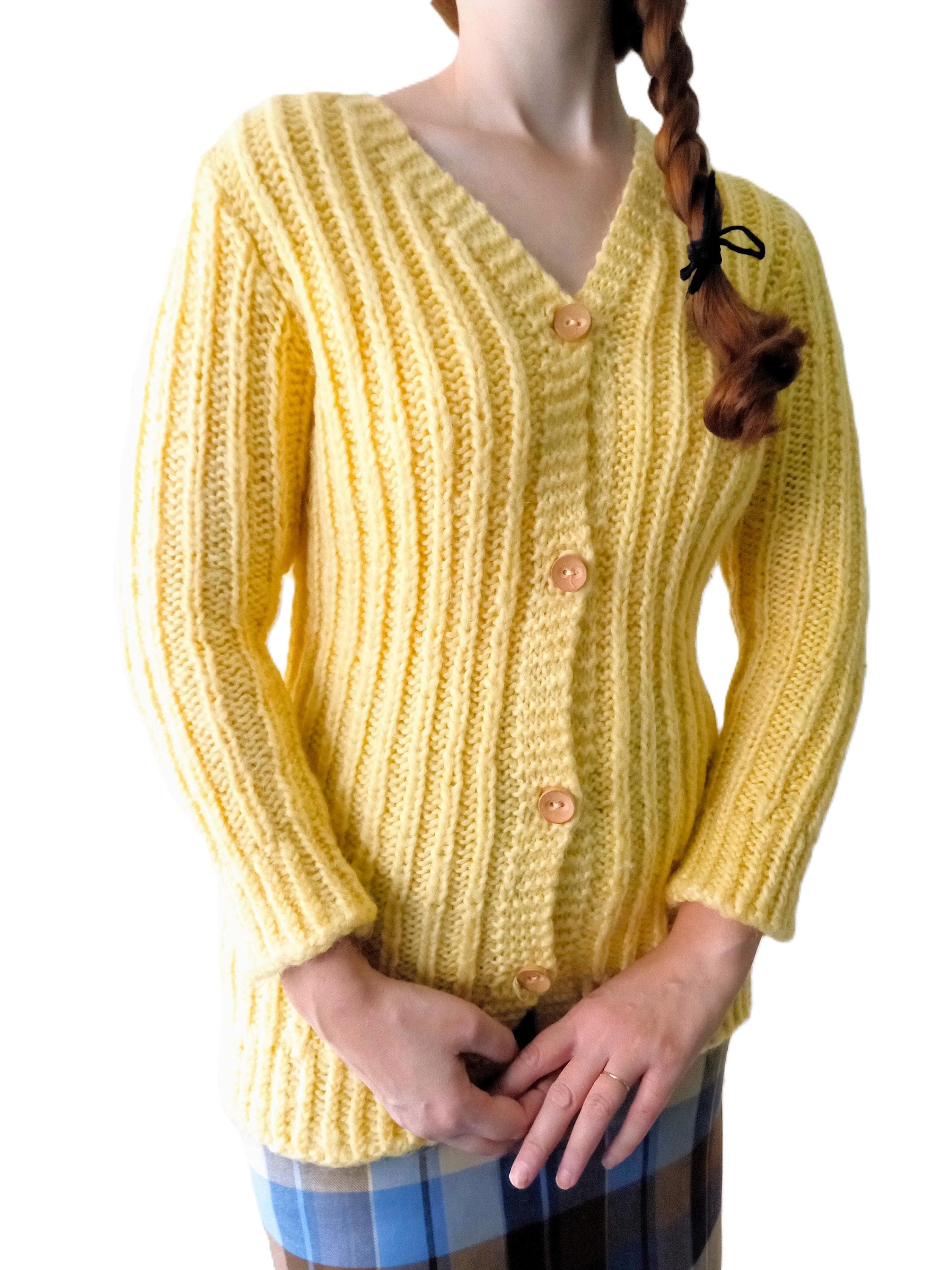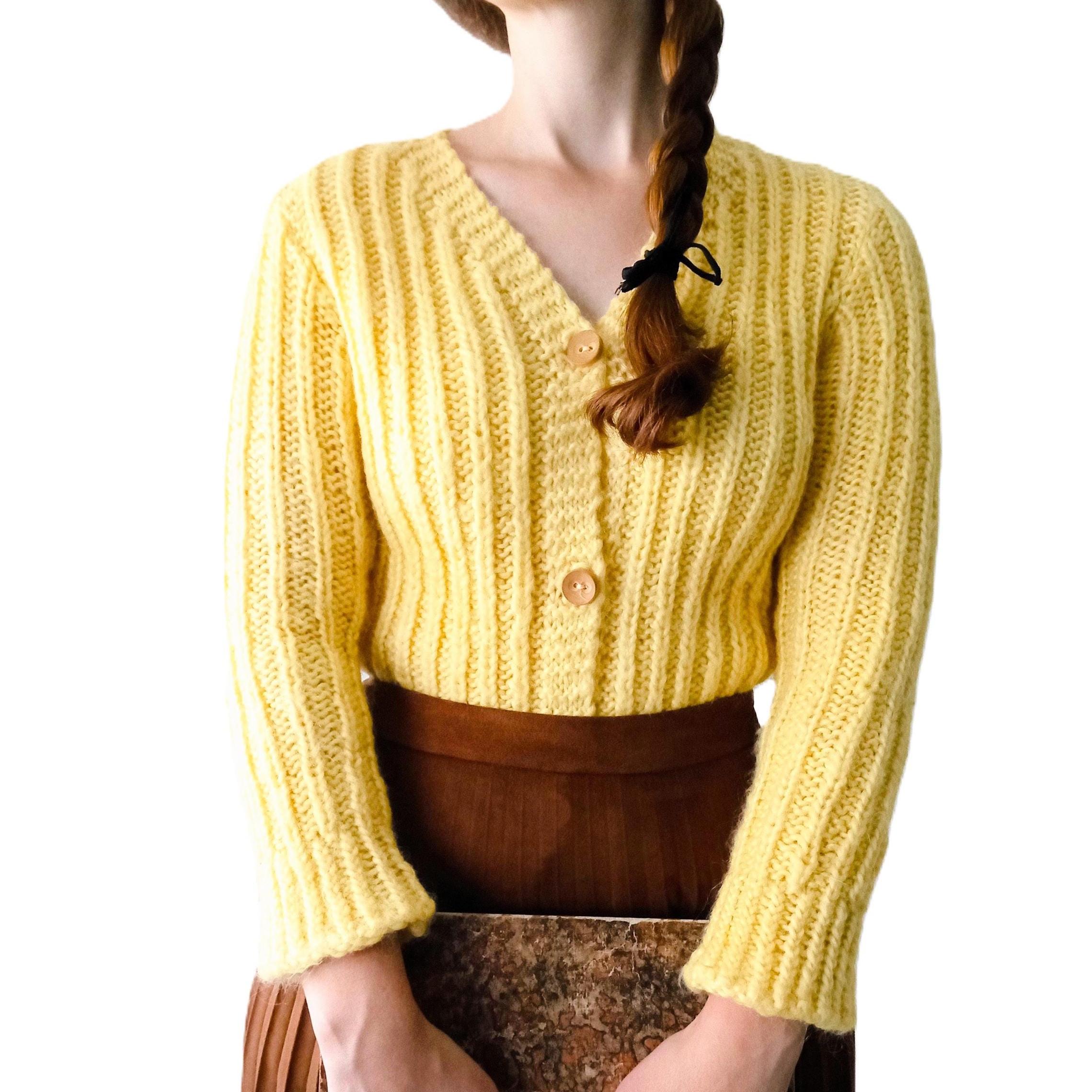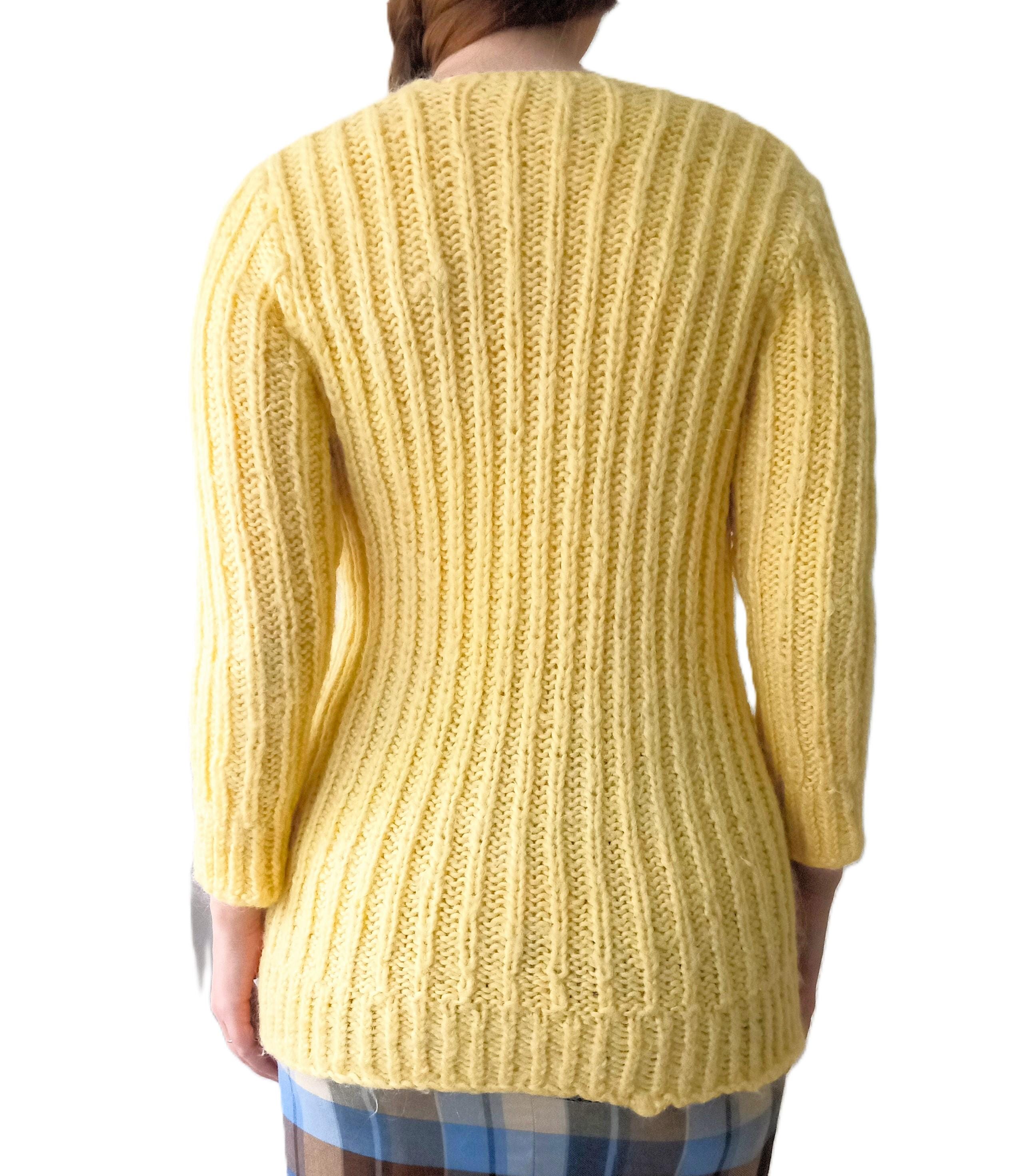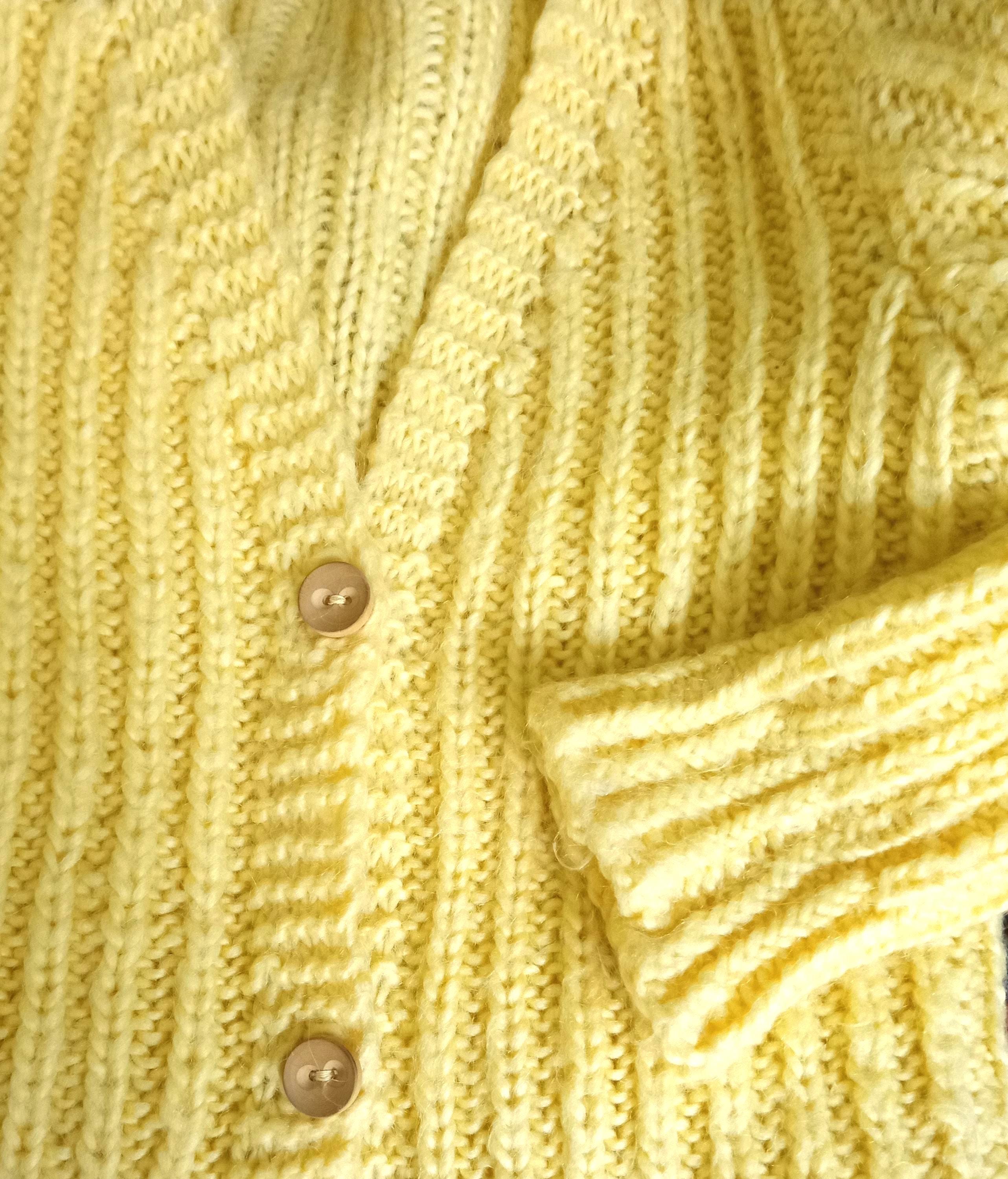 Gilet Jaune Tricoté Main Vintage Années 60/70 - Esprit rétro - Pure Laine - L/XL (40/42)