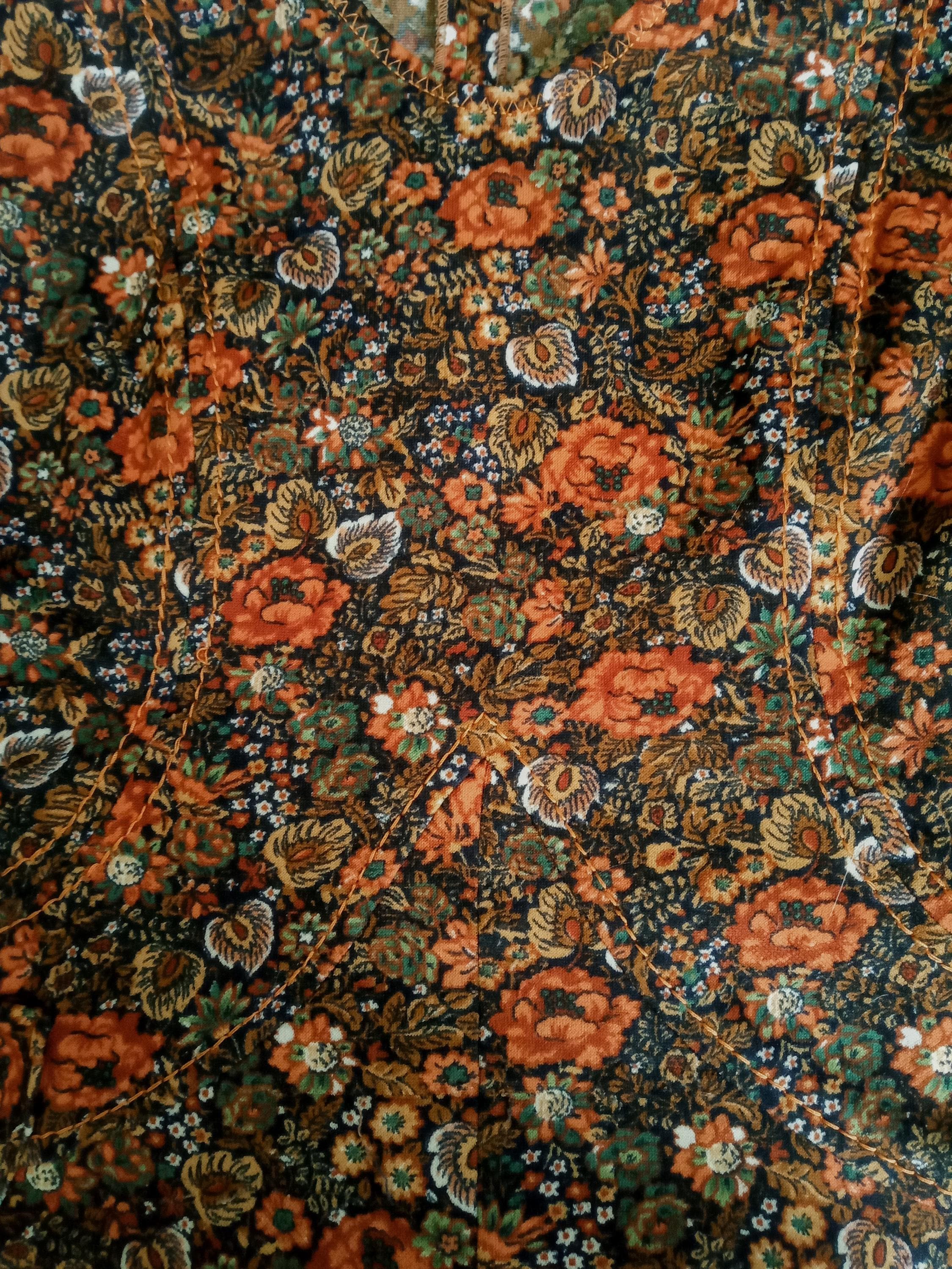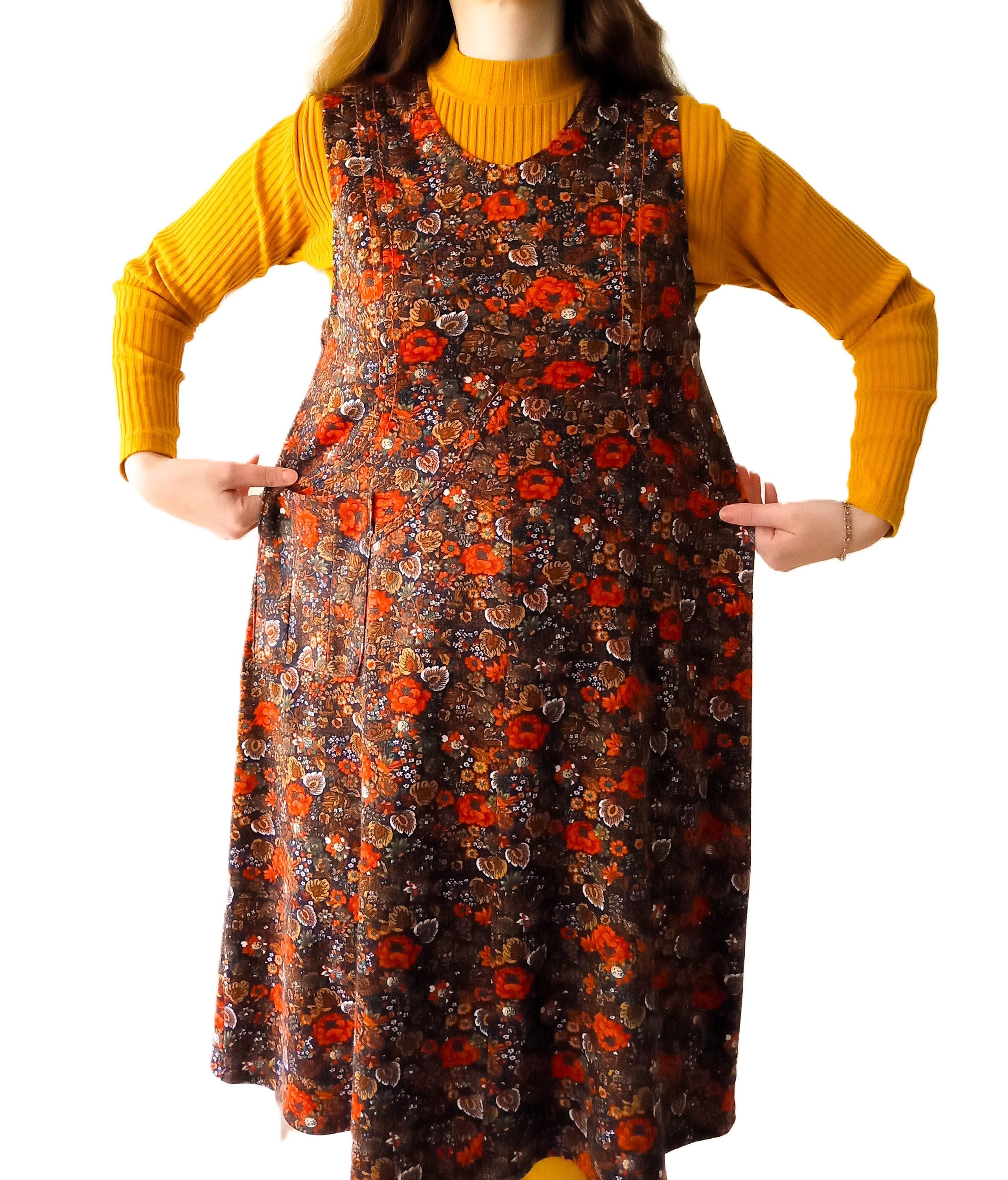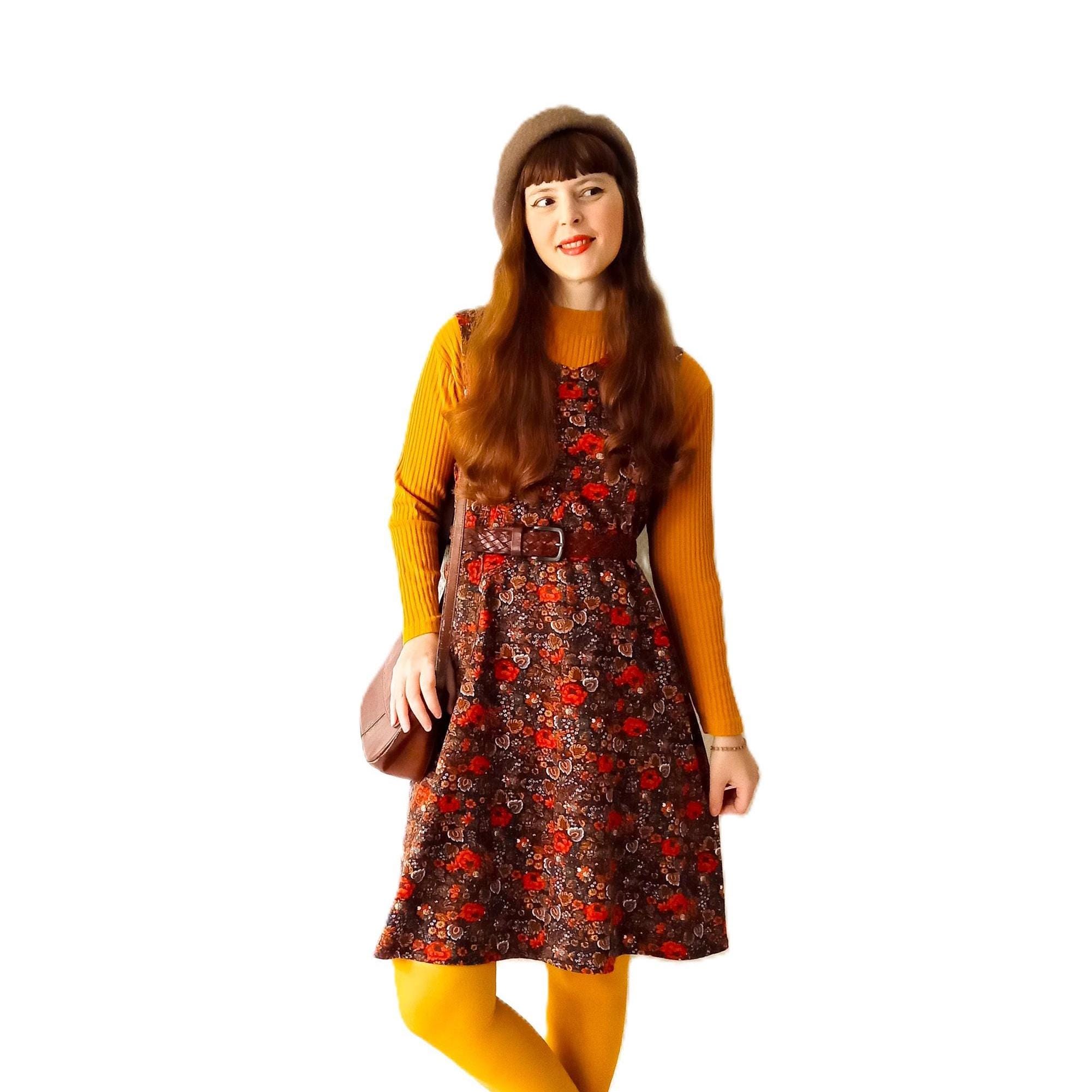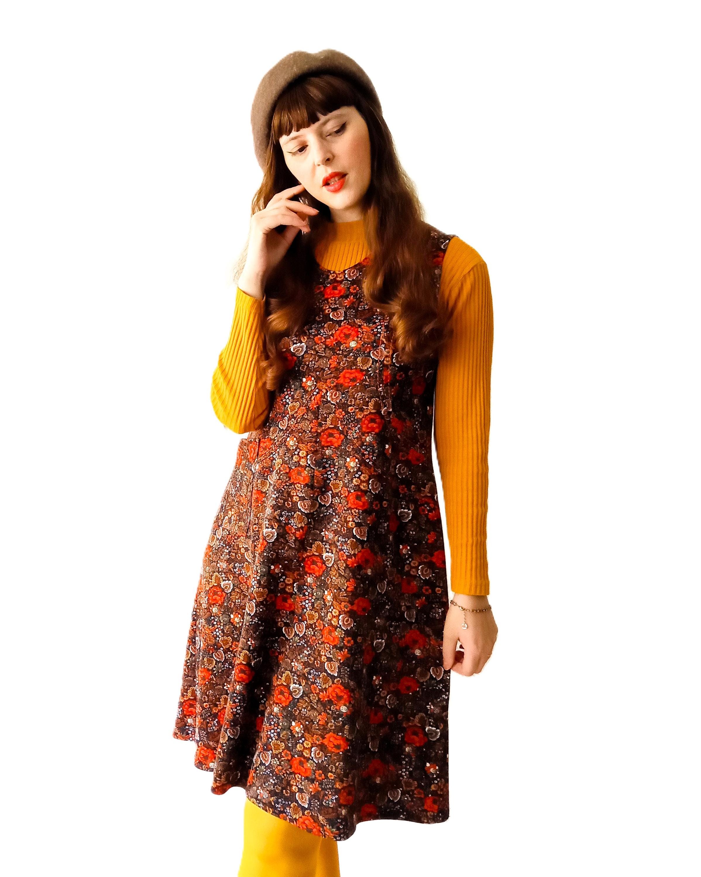 🇬🇧Discover this beautiful vintage autumn dress from the 70s, perfect for a boho retro and hippie chic look. Designed with floral patterns in red, orange and brown tones, this dress evokes the sweetness of autumn while bringing a unique vintage touch to your wardrobe.