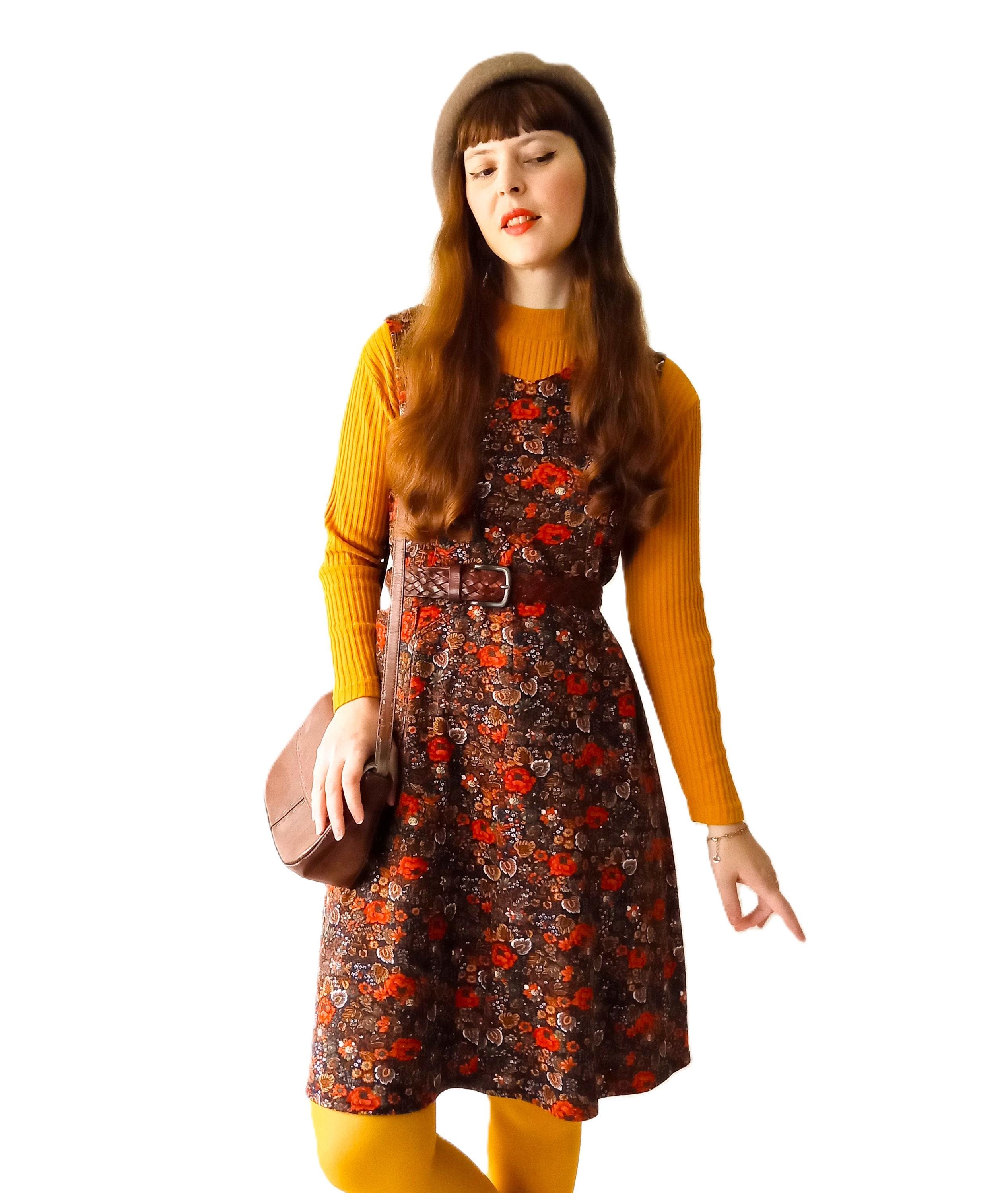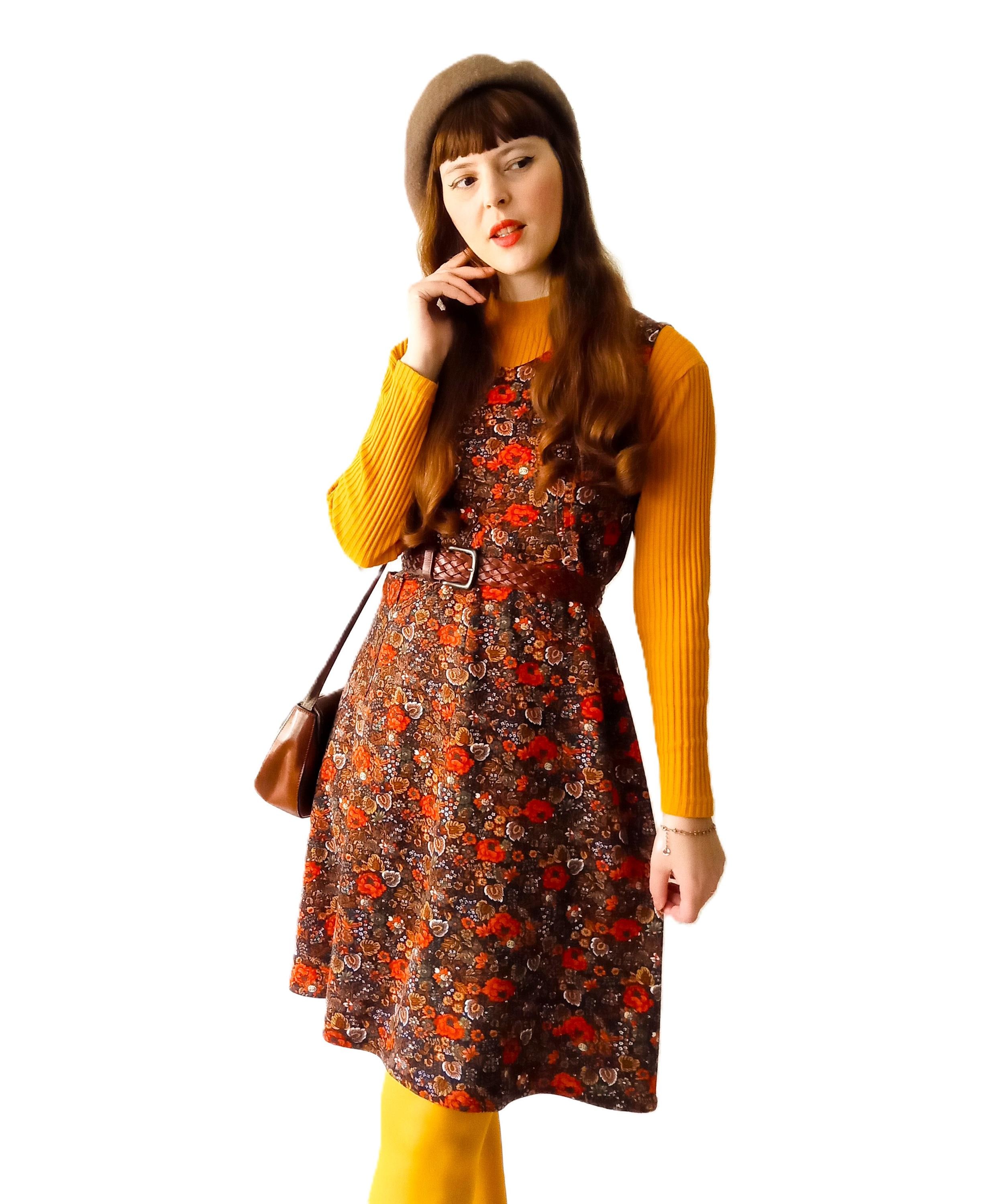 Ajoutez cette robe à votre collection pour un look automnal rétro, authentique et plein de charme.