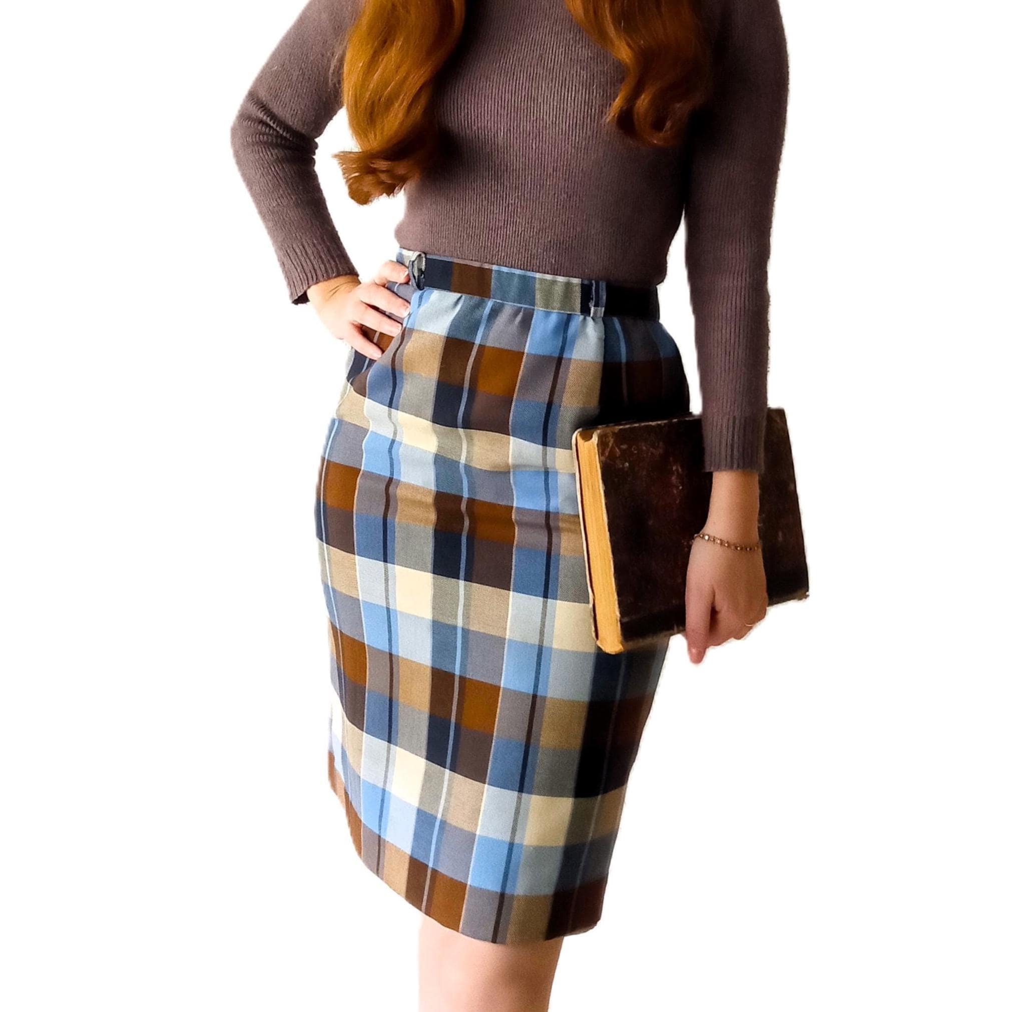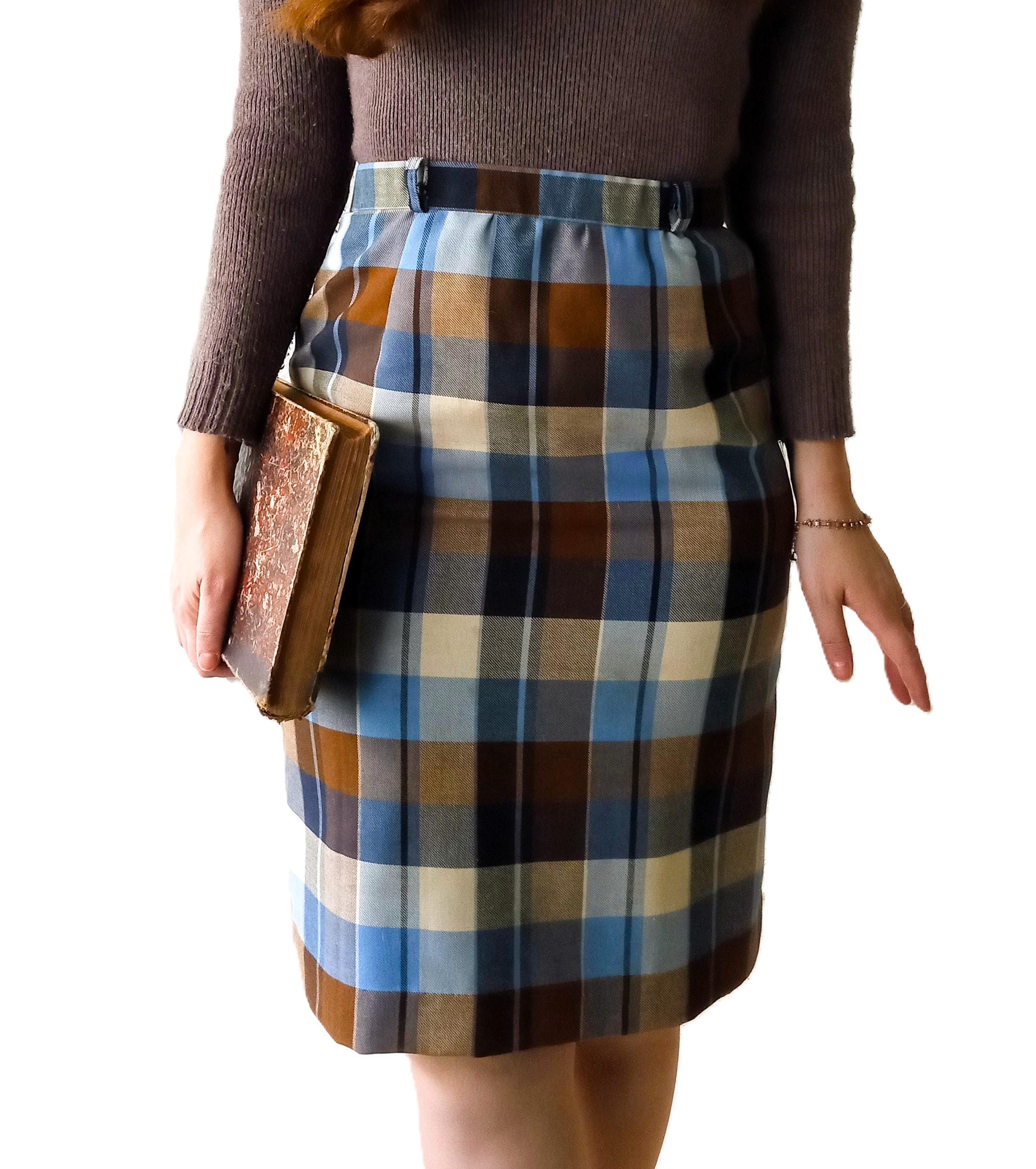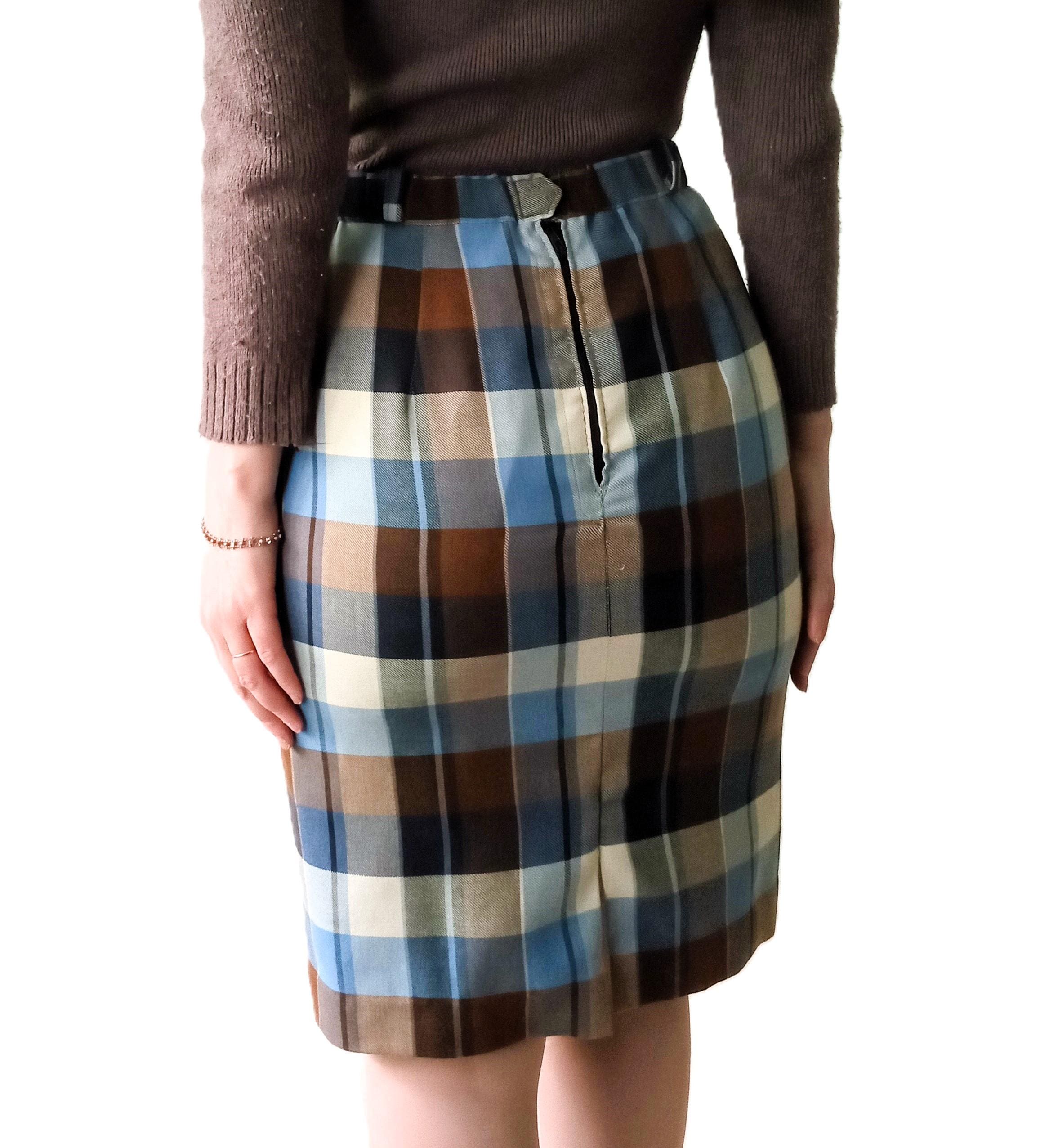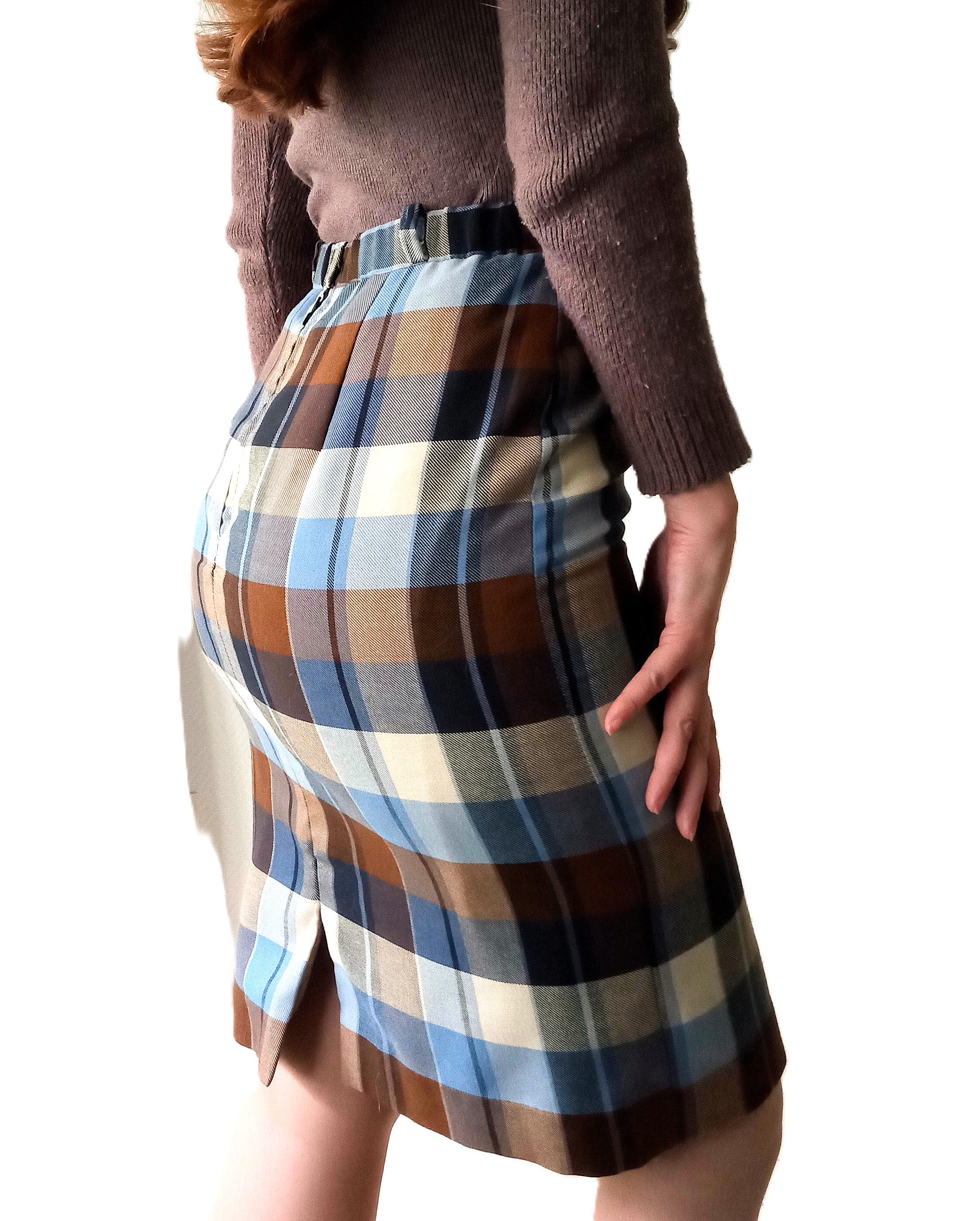 🇬🇧Scottish Tartan skirt Brown & Blue Vintage 80s - Retro spirit style 60s - S/M (36/38)