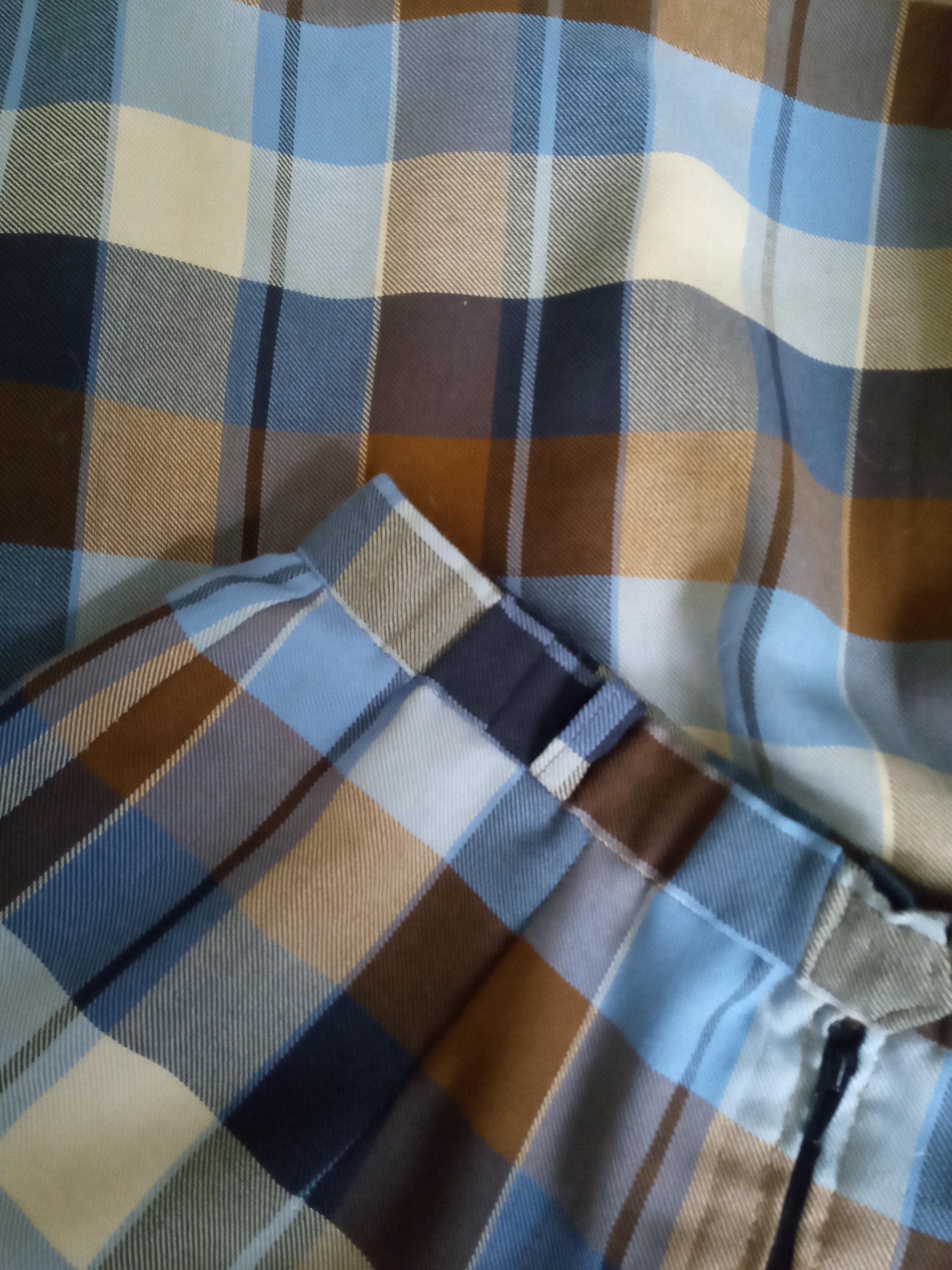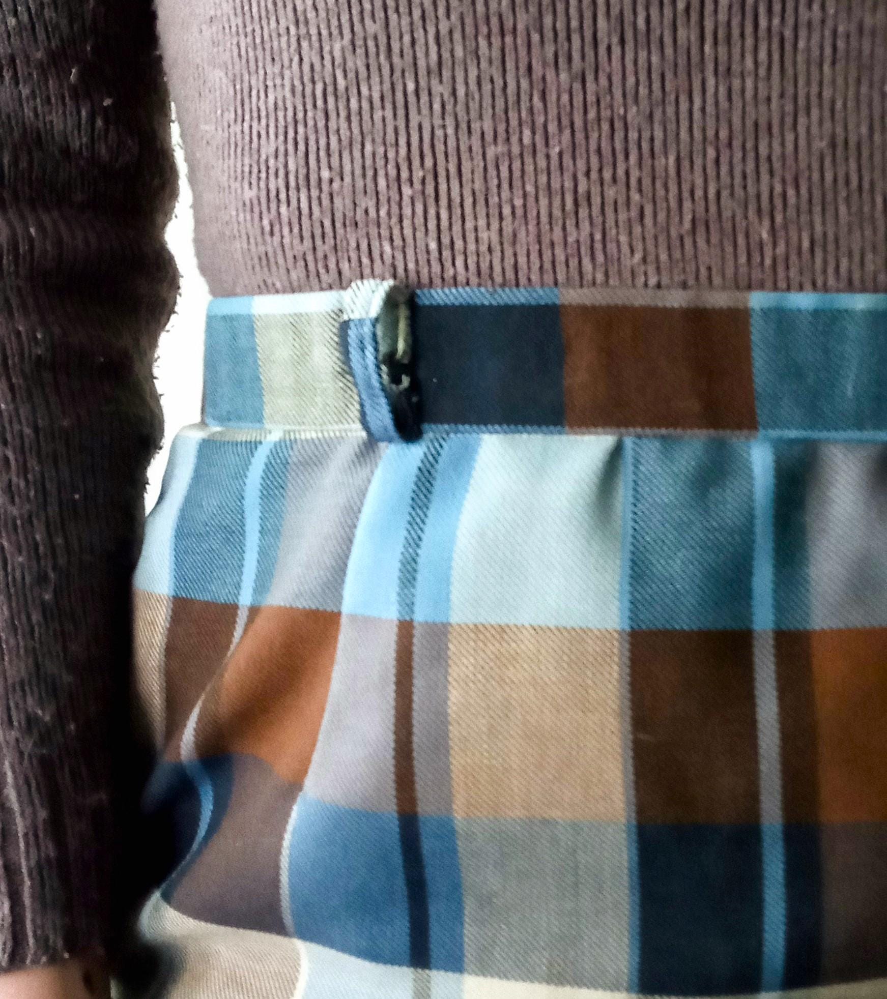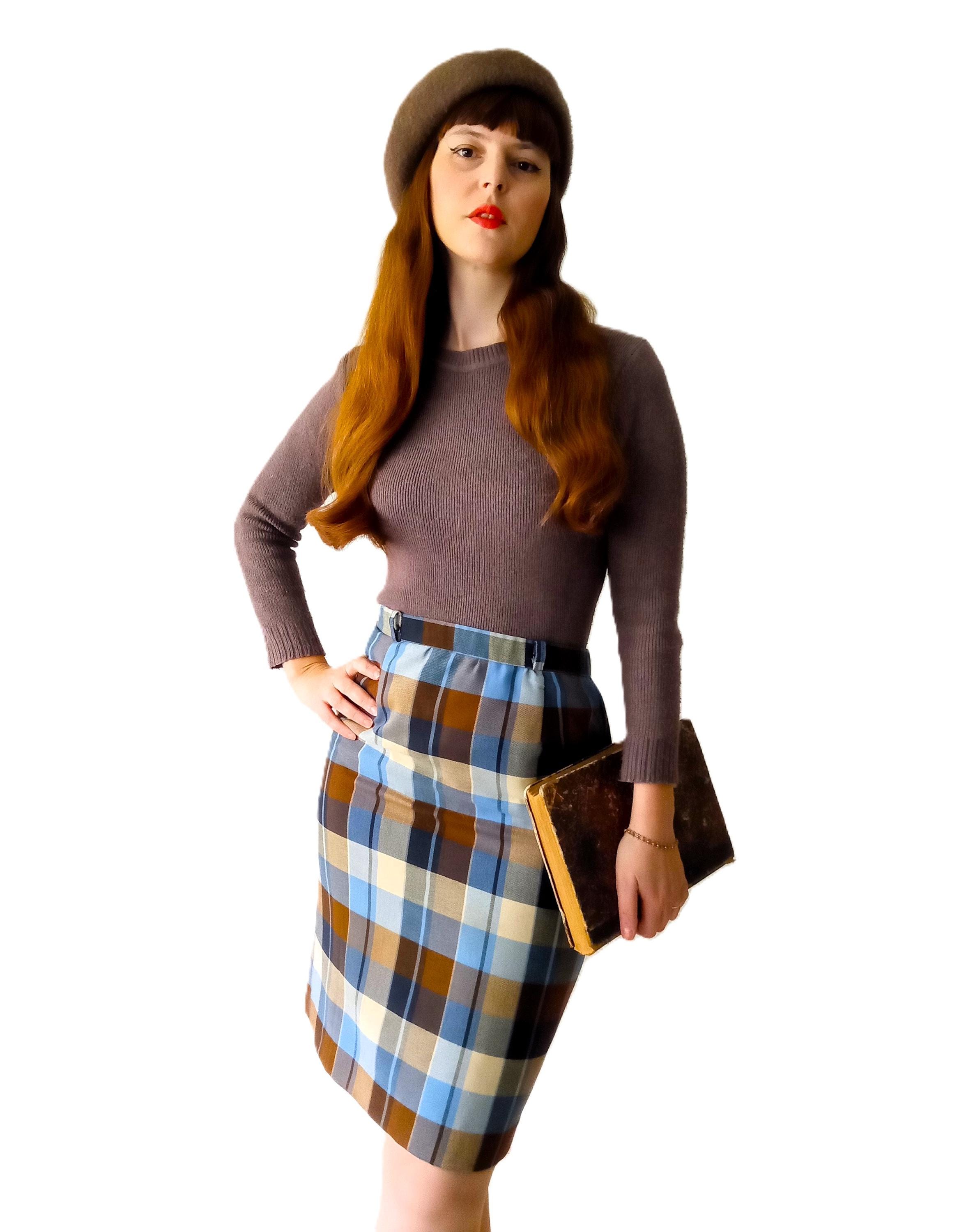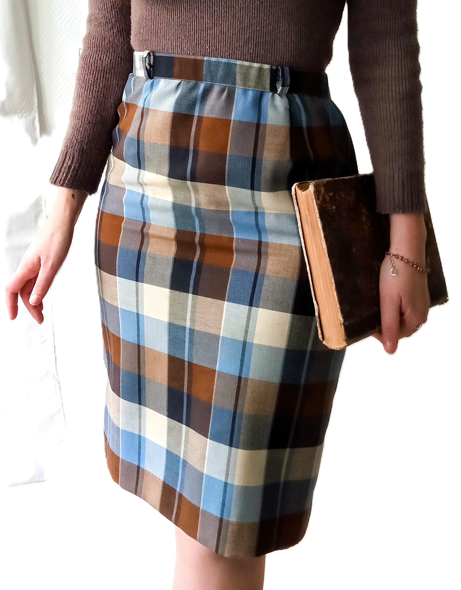 Jupe écossaise Marron & Bleu Vintage Années 80 - Esprit Rétro style Années 60 - S/M ( 36/38)