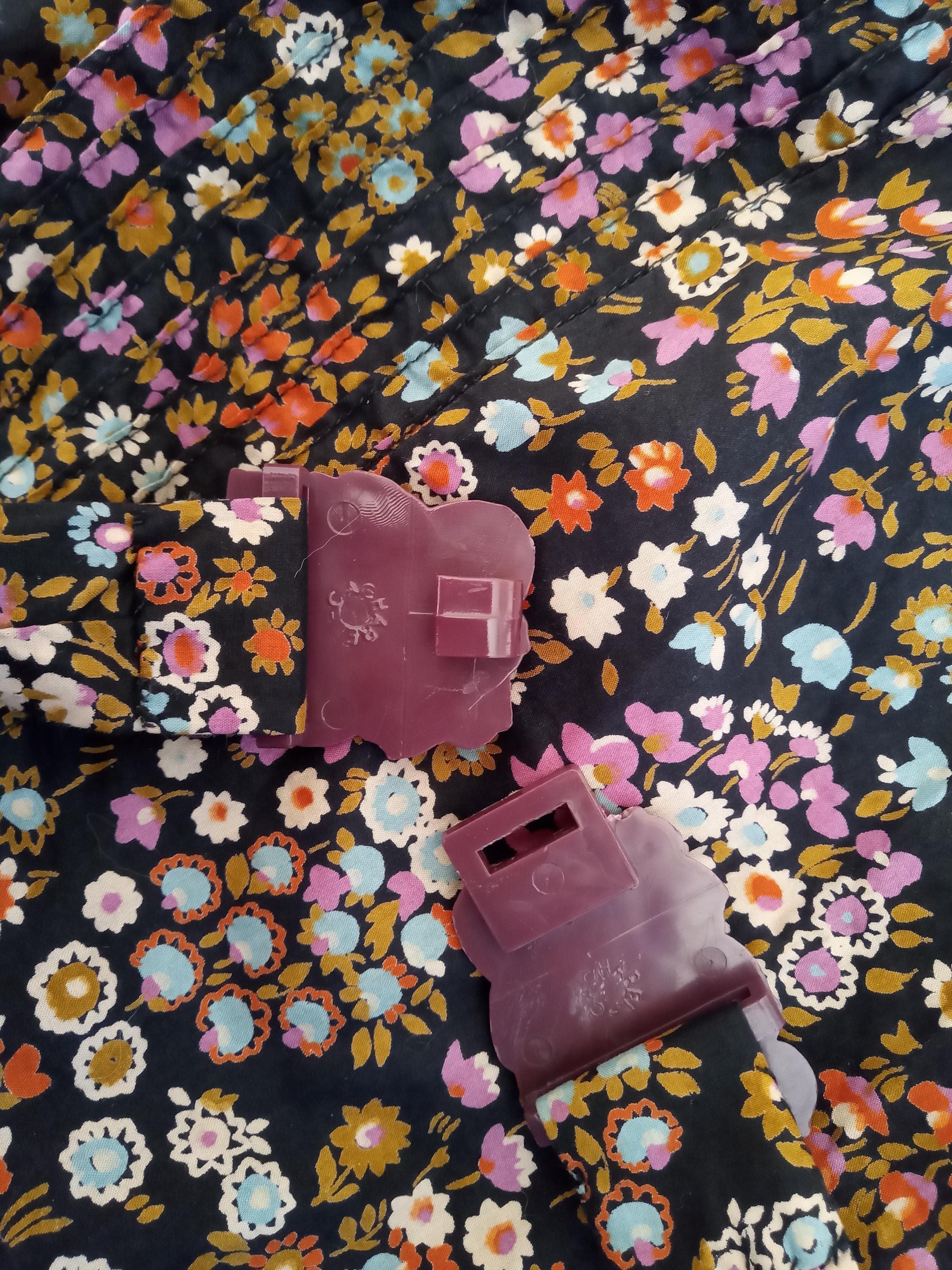 Boutons pressions à l'épaule gauche et fermeture éclair latérale