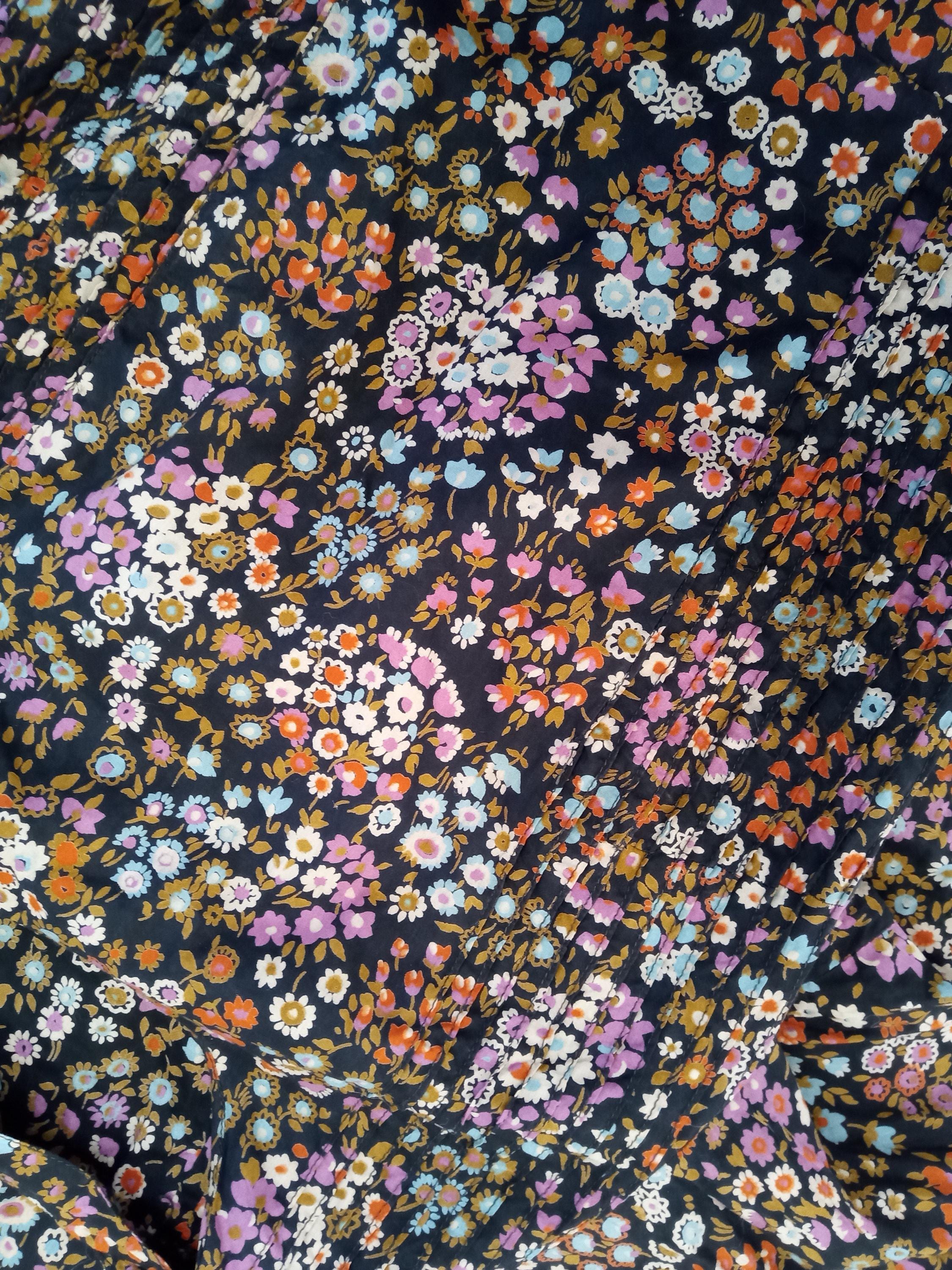 Matière non indiquée mais semble être en soie ou soie et coton mélanger