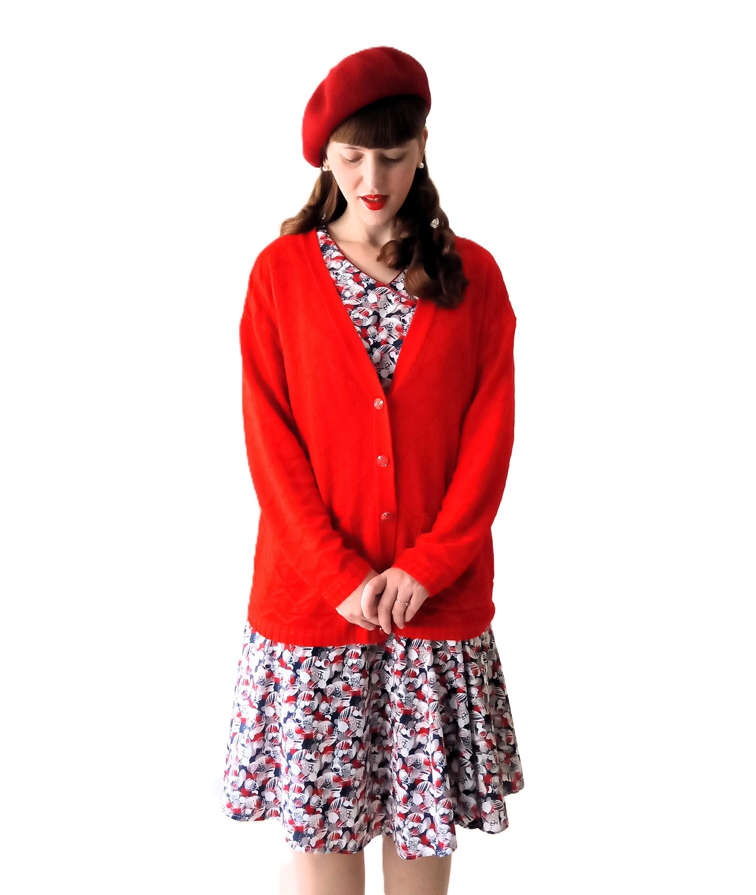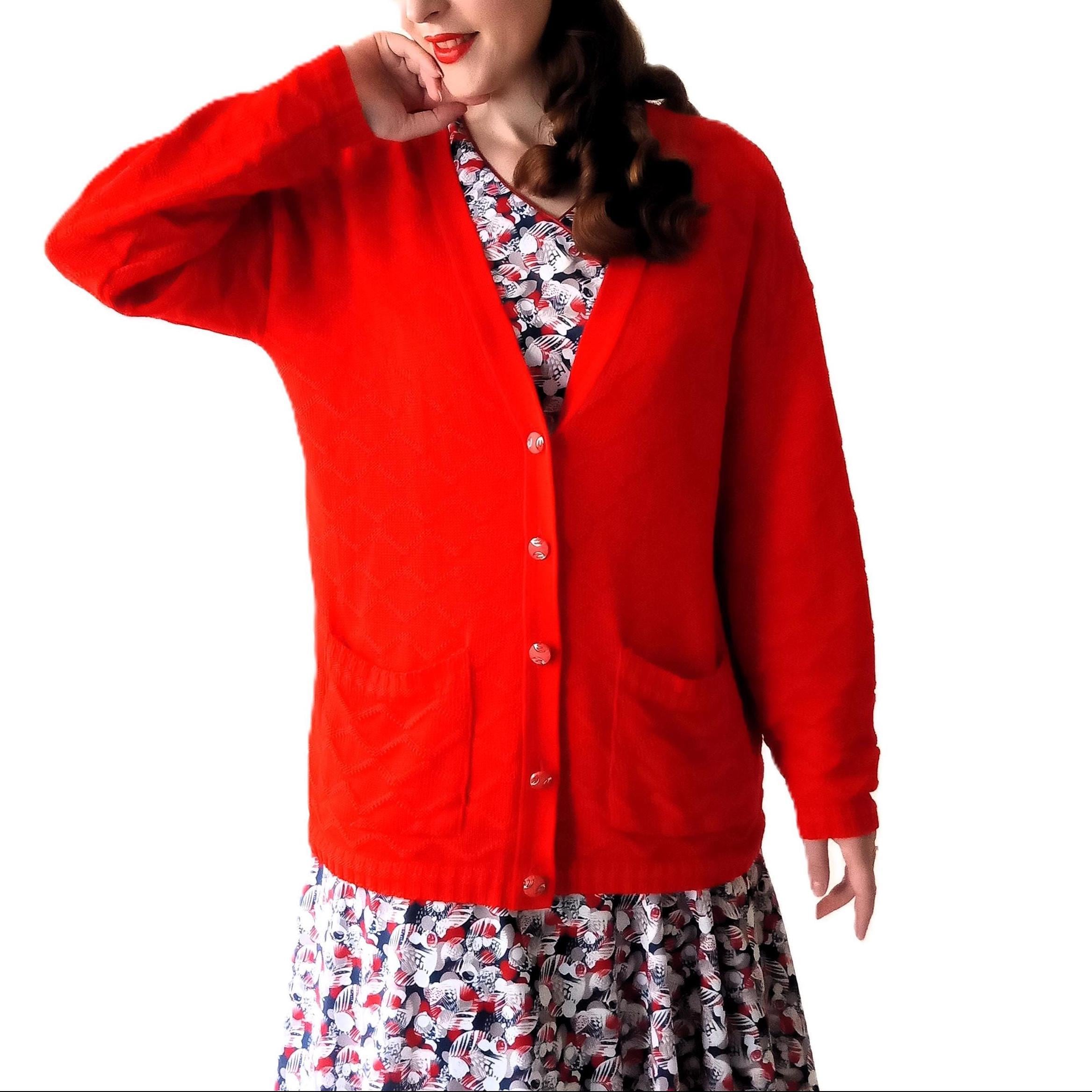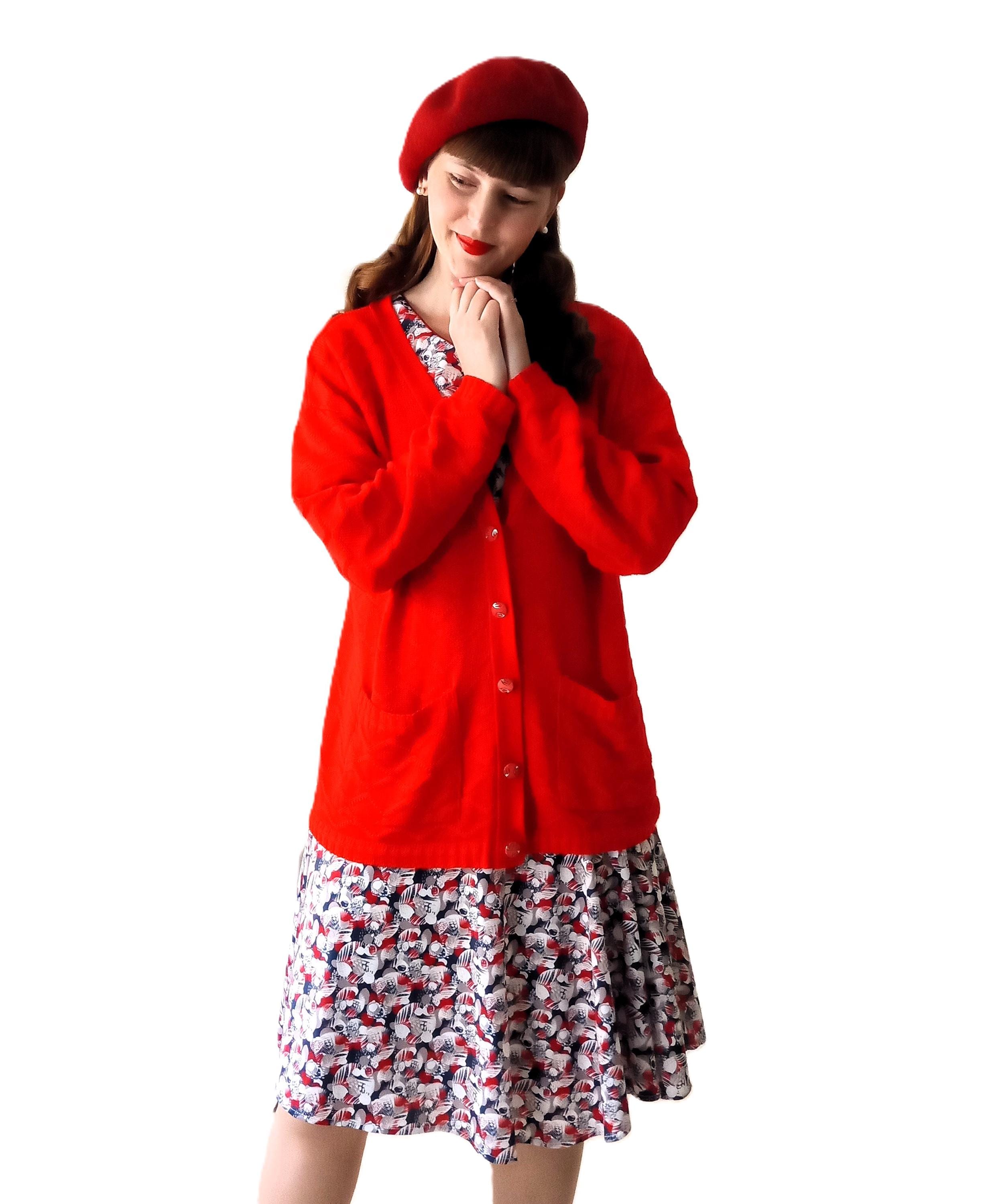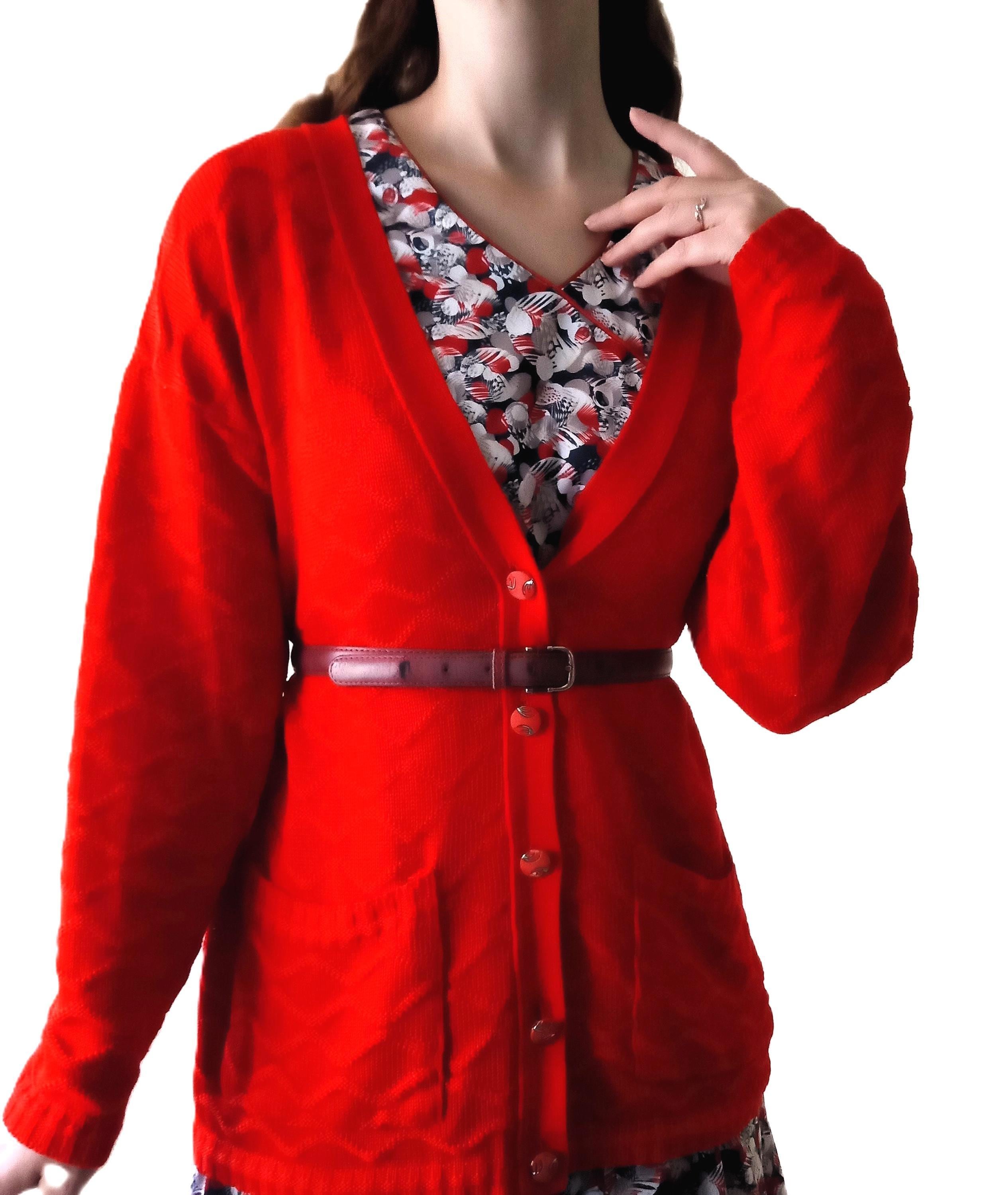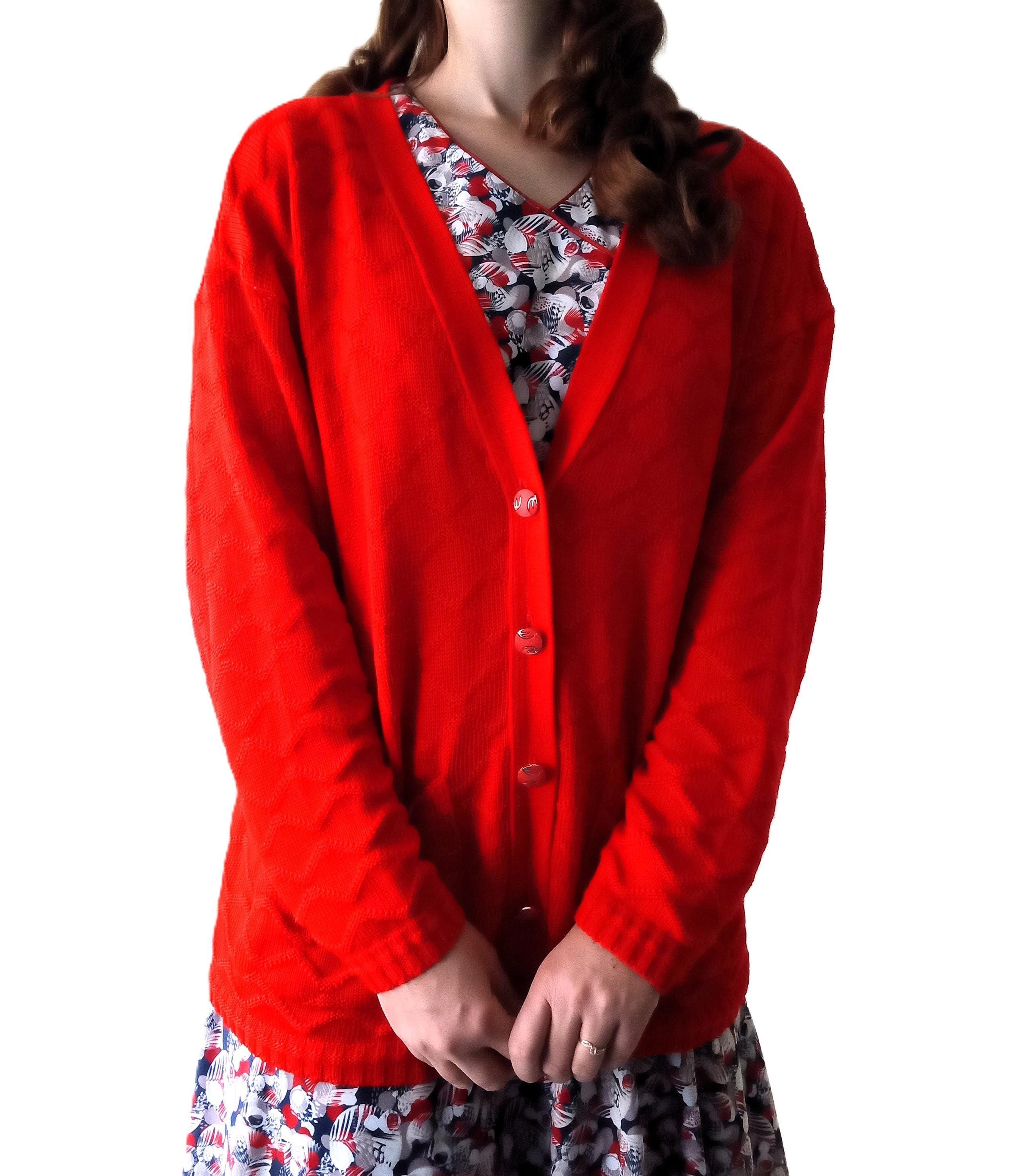 🇬🇧Vintage Large size Red Cardigan - Made in France - 80s - Jewelry Buttons - Classic & Timeless