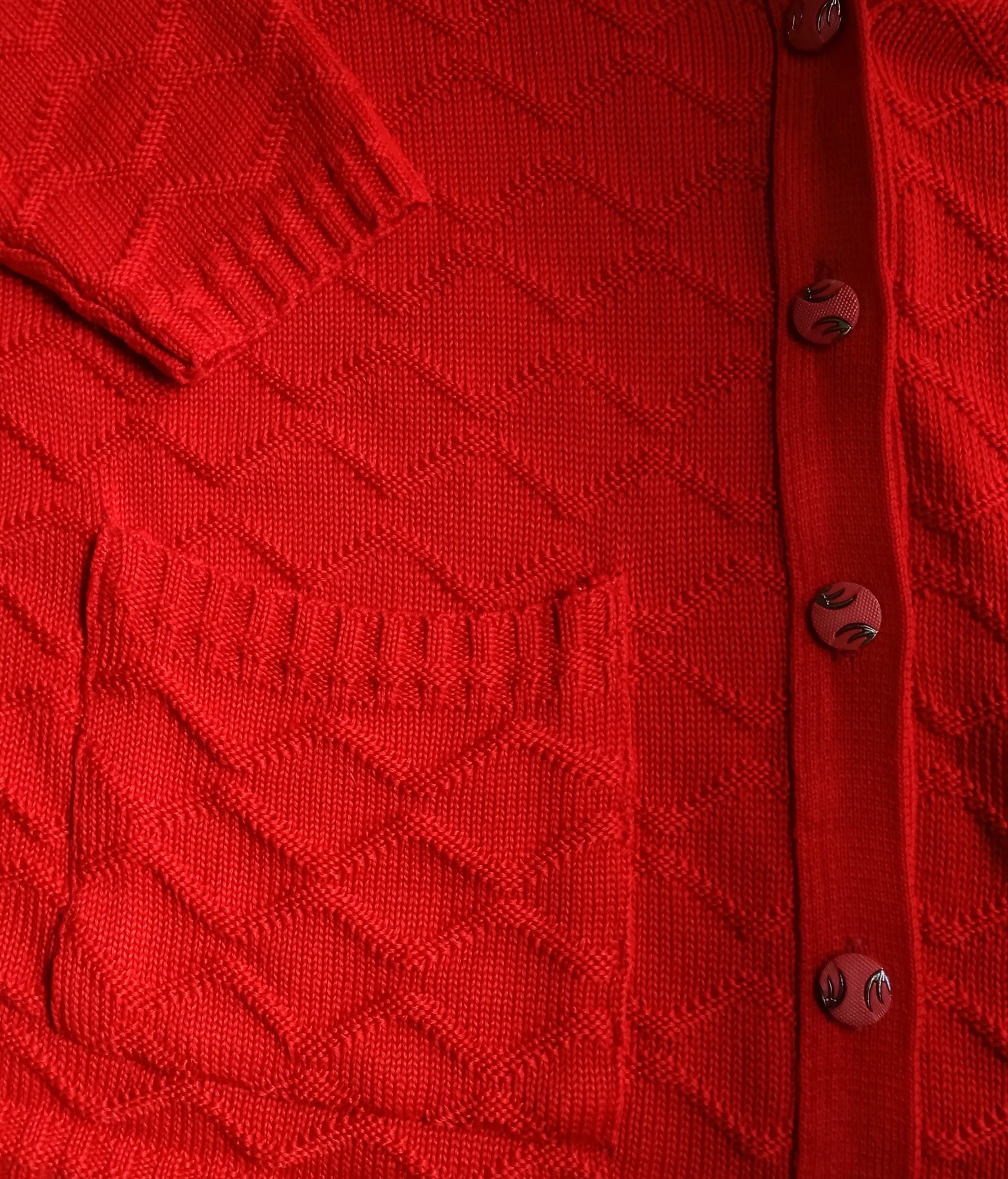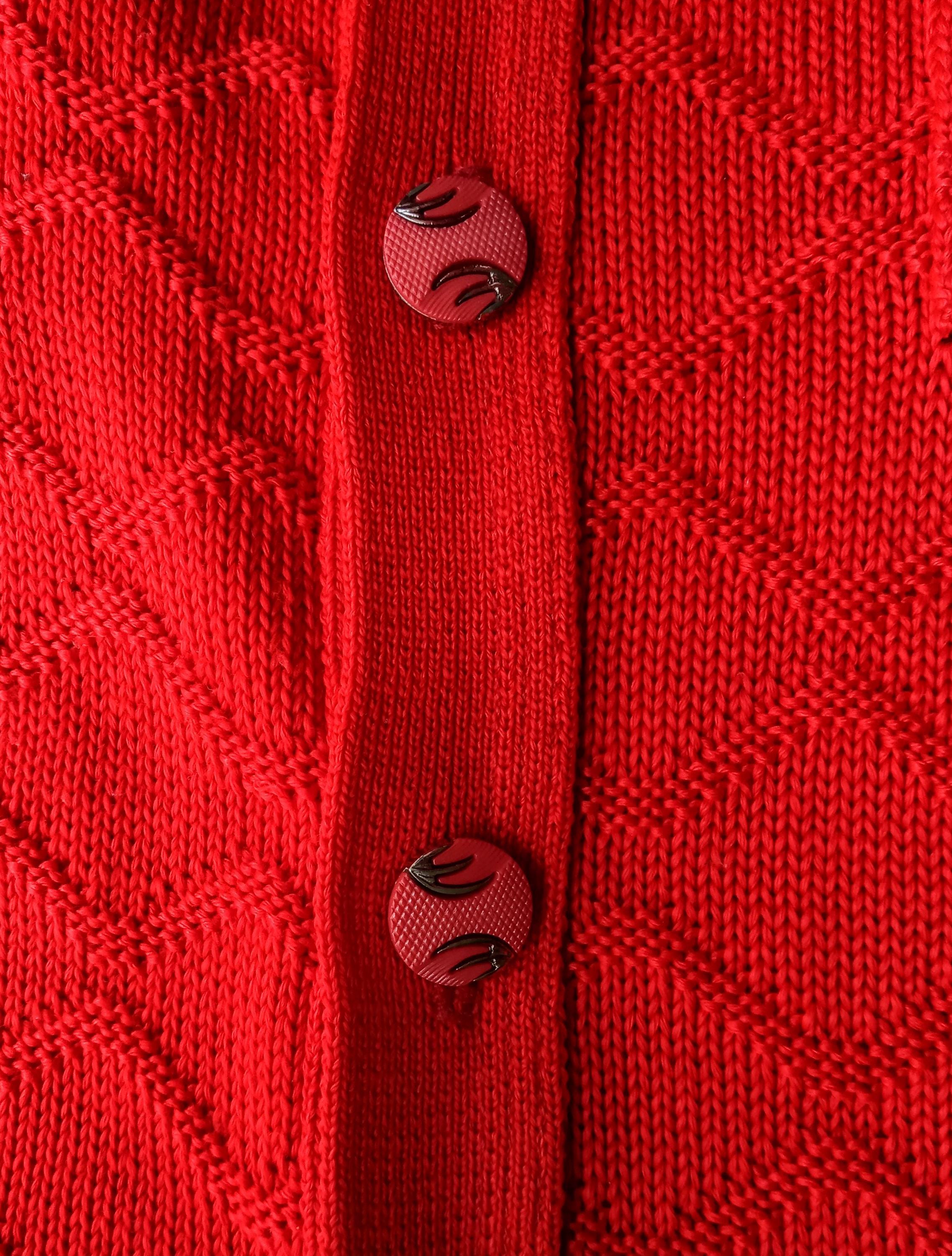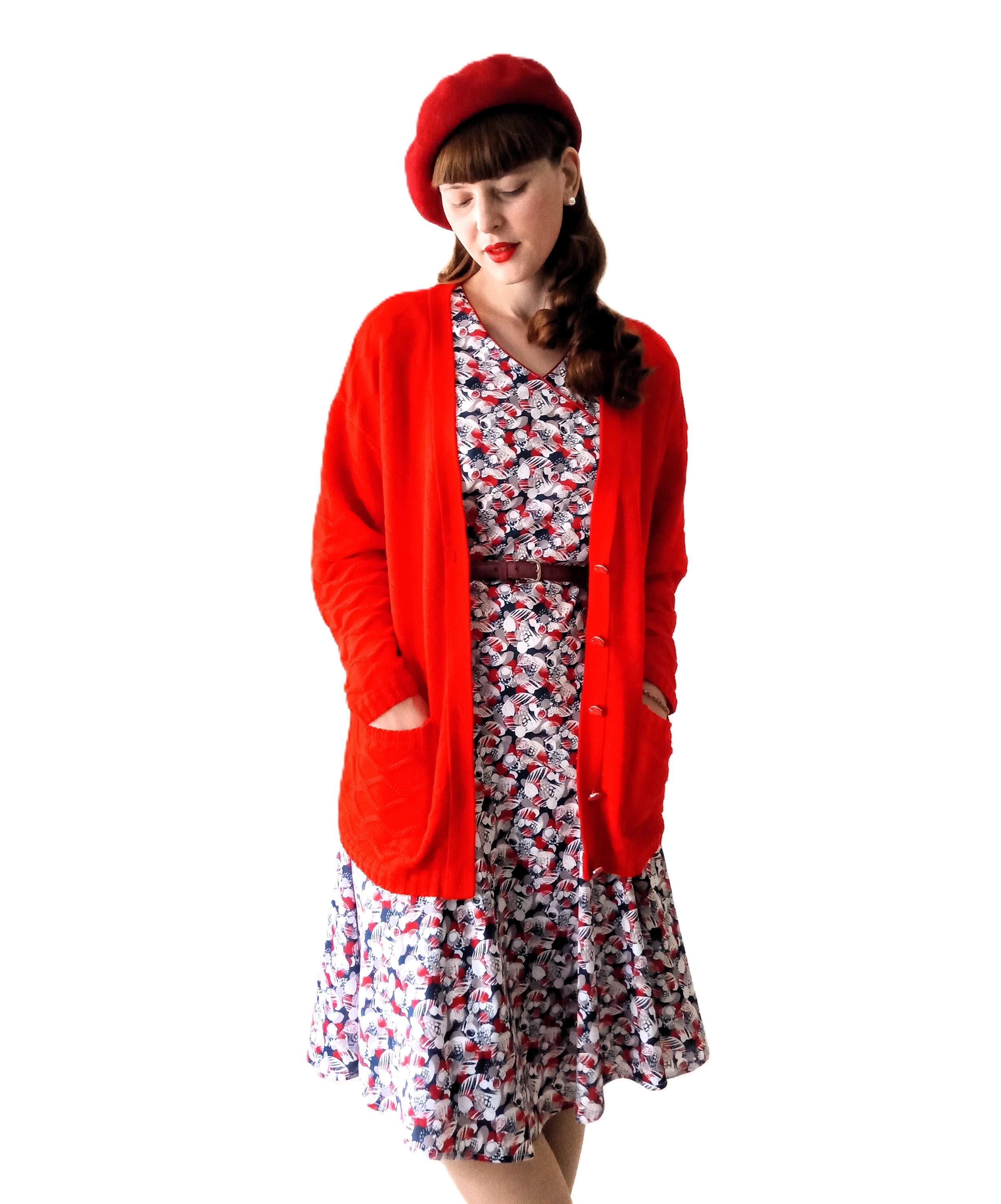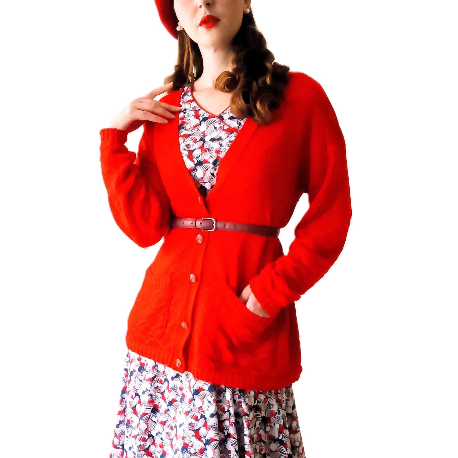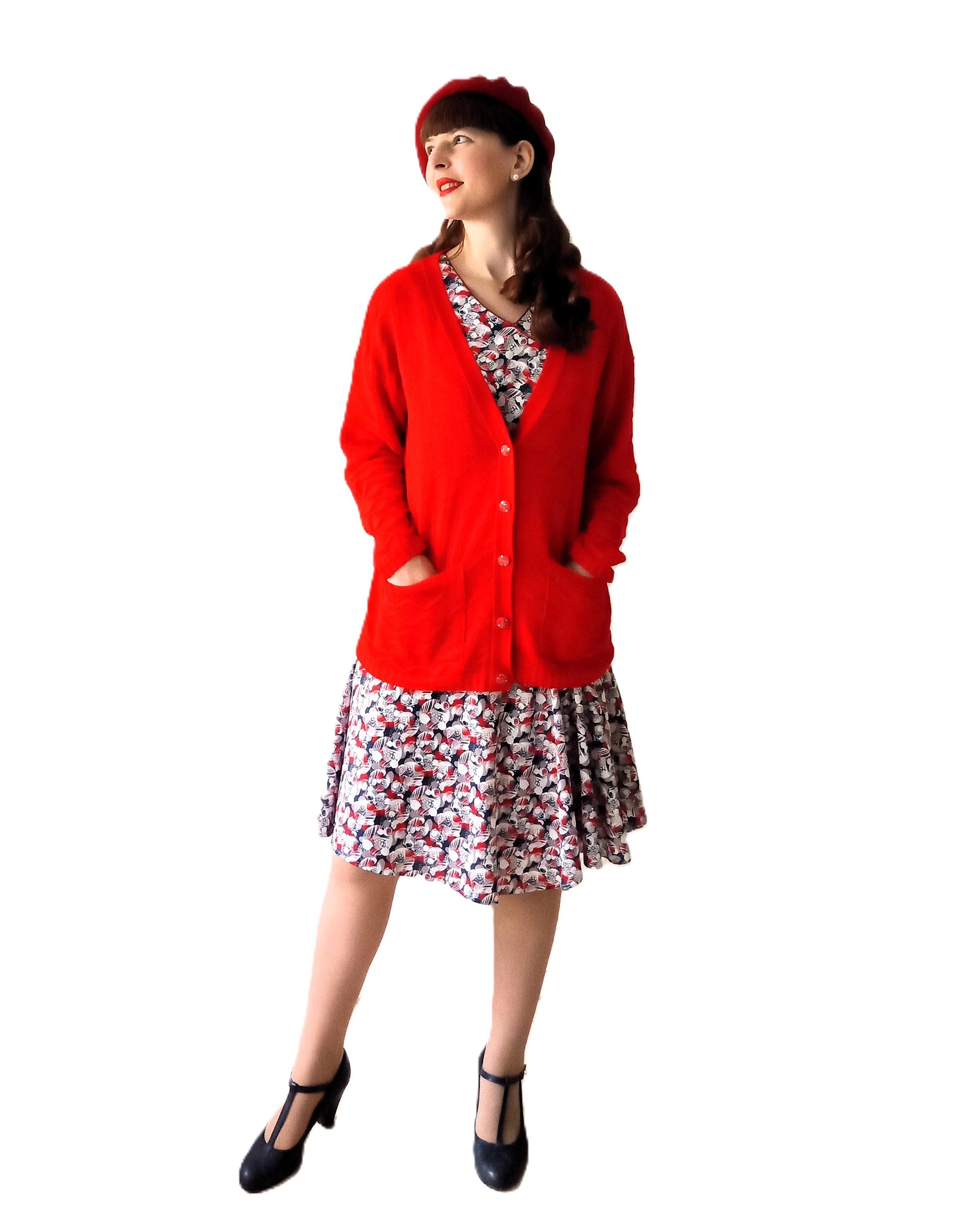 🇬🇧Vintage Large size Red Cardigan - Made in France - 80s - Jewelry Buttons - Classic & Timeless
