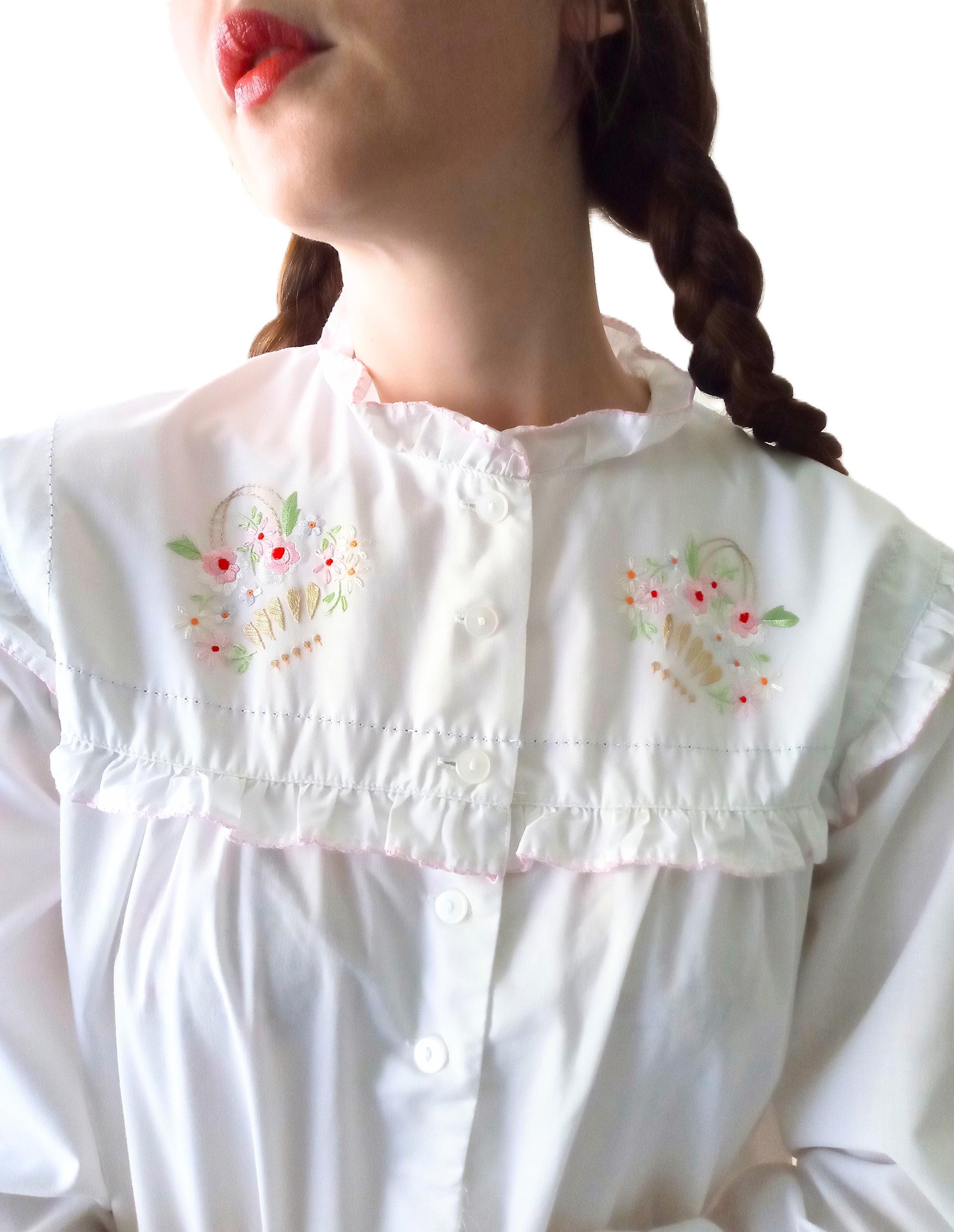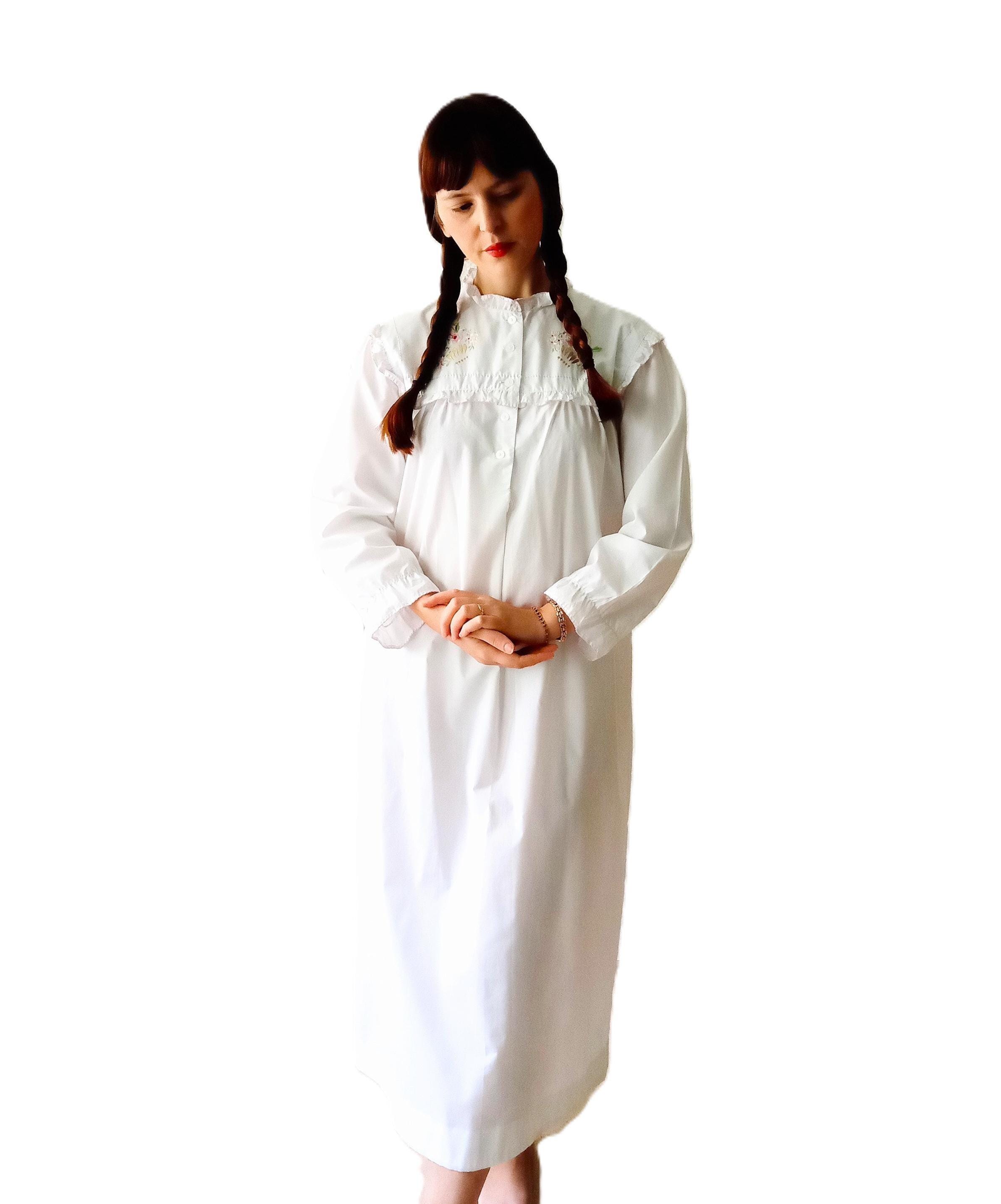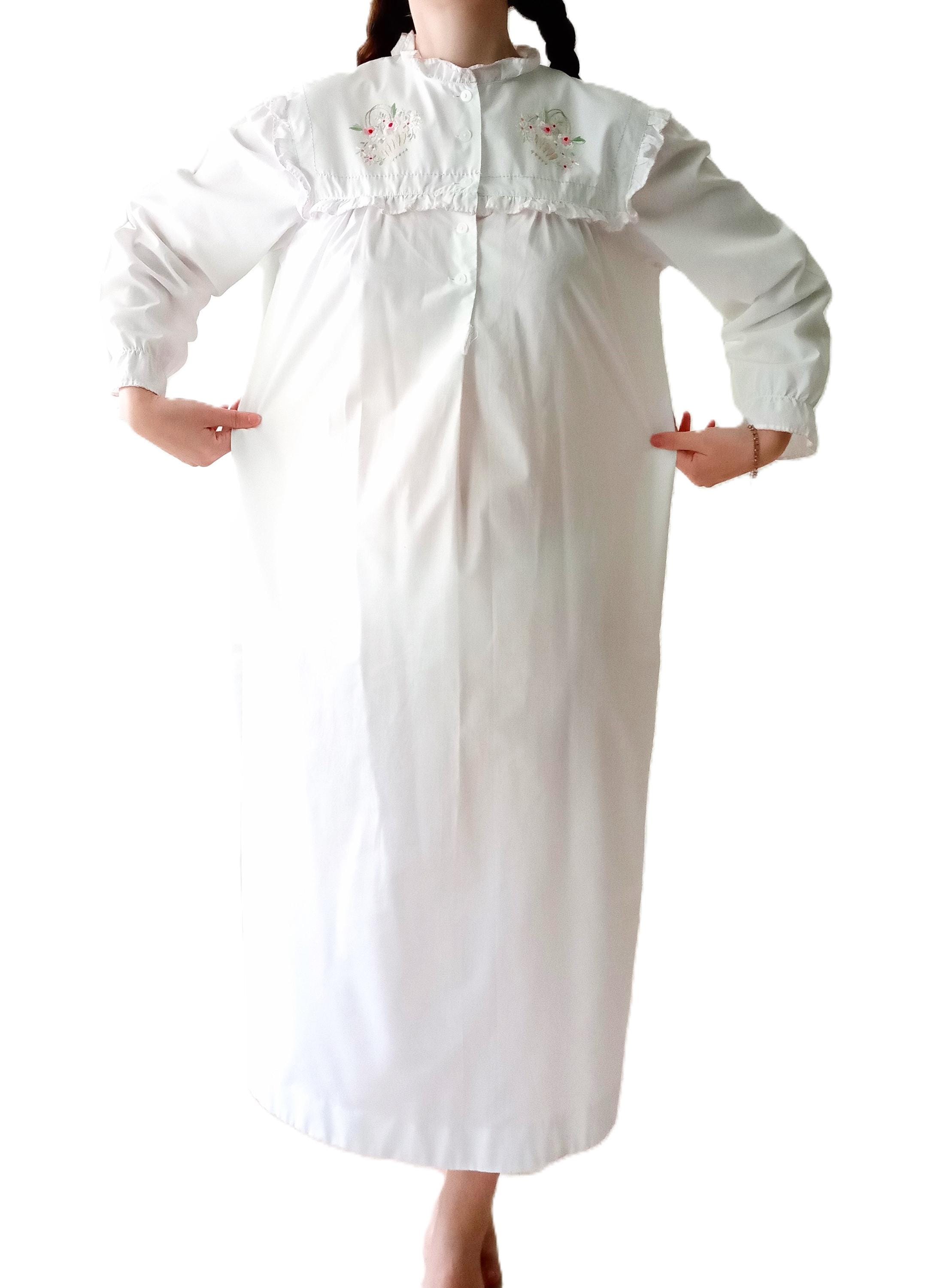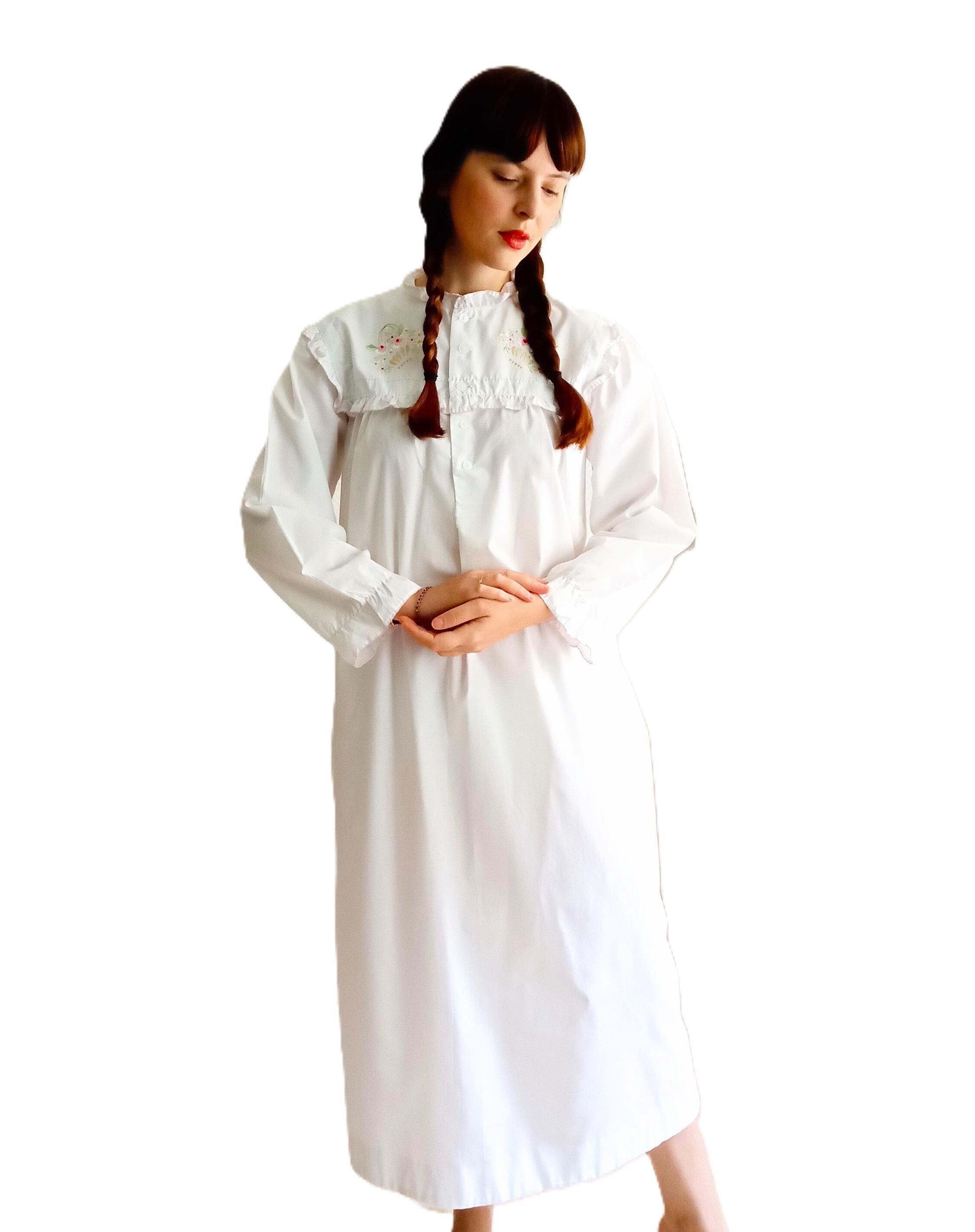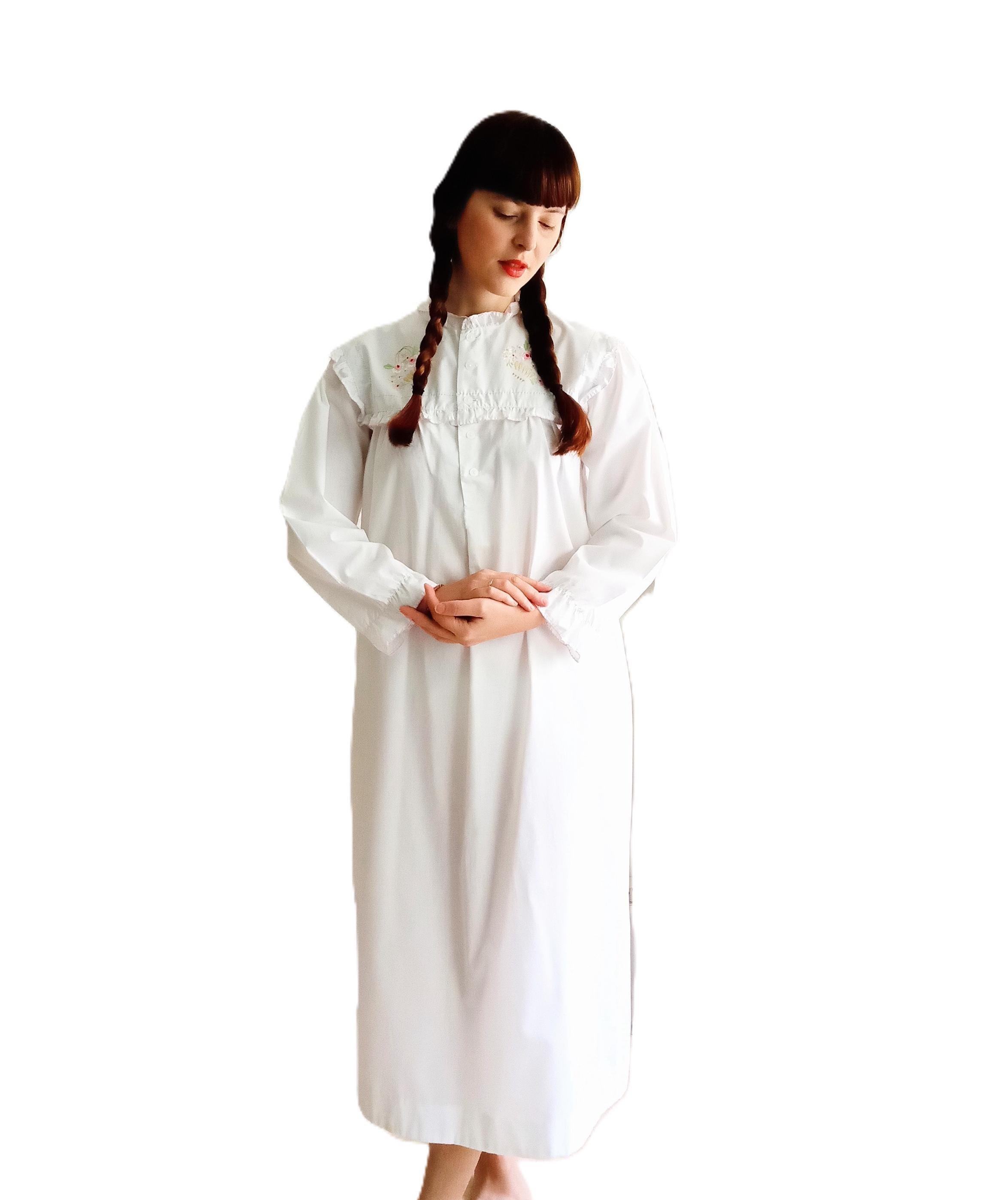 Discover this magnificent long embroidered nightgown from the 70s, inspired by the Victorian era or retro spirit of the 50s.