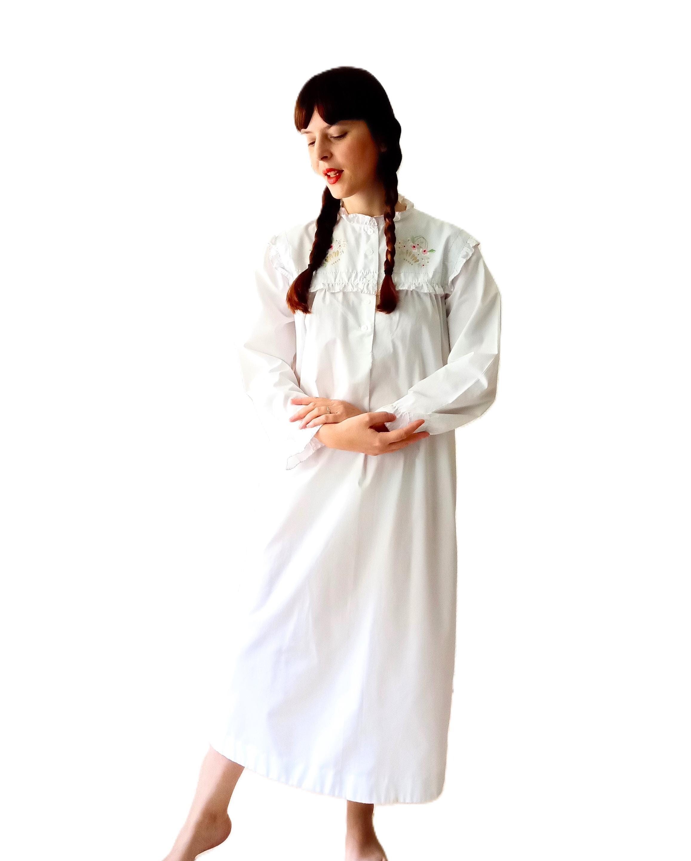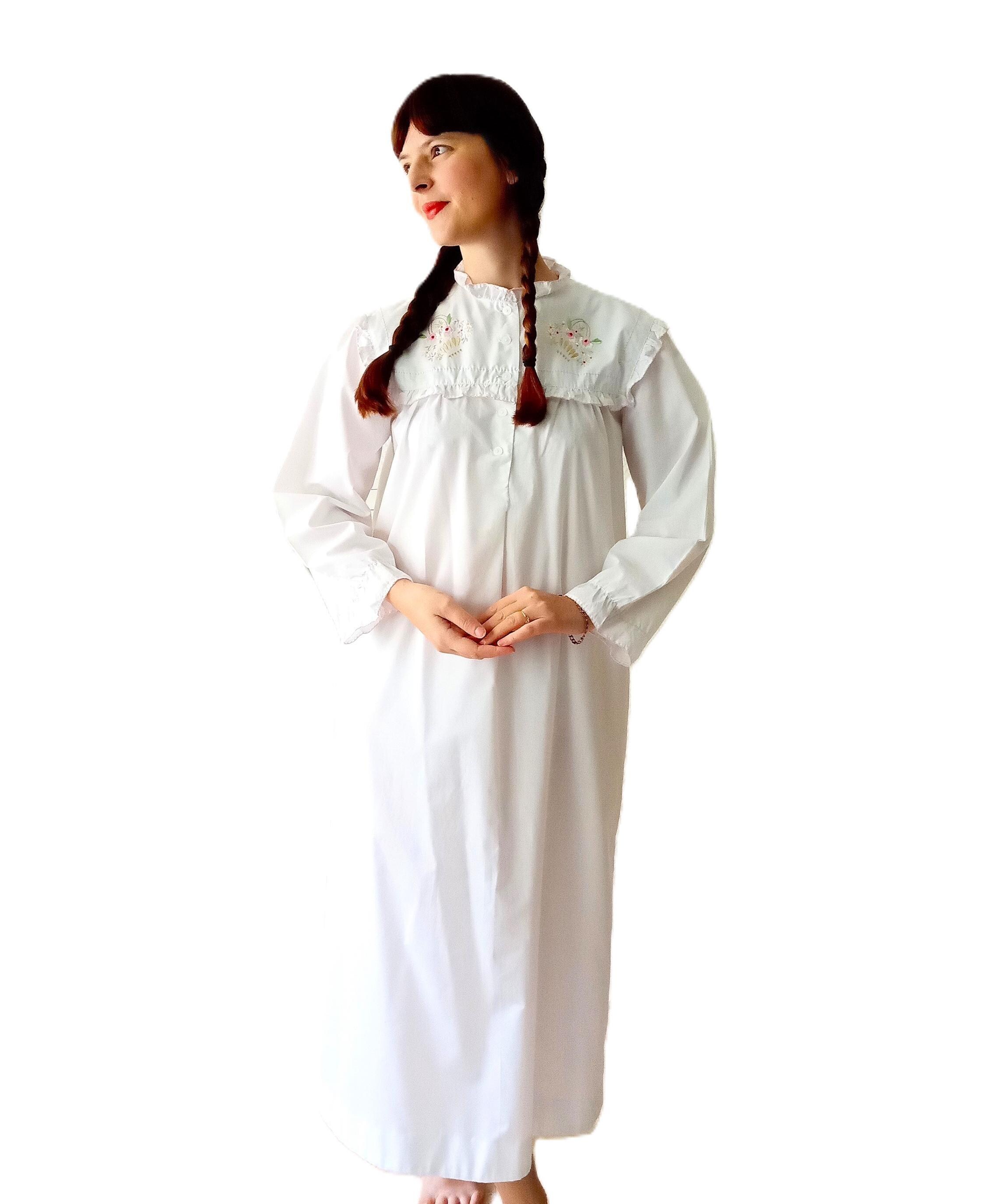 Découvrez cette magnifique chemise de nuit longue et brodée des années 70, inspiration époque victorienne ou rétro esprit années 50.
