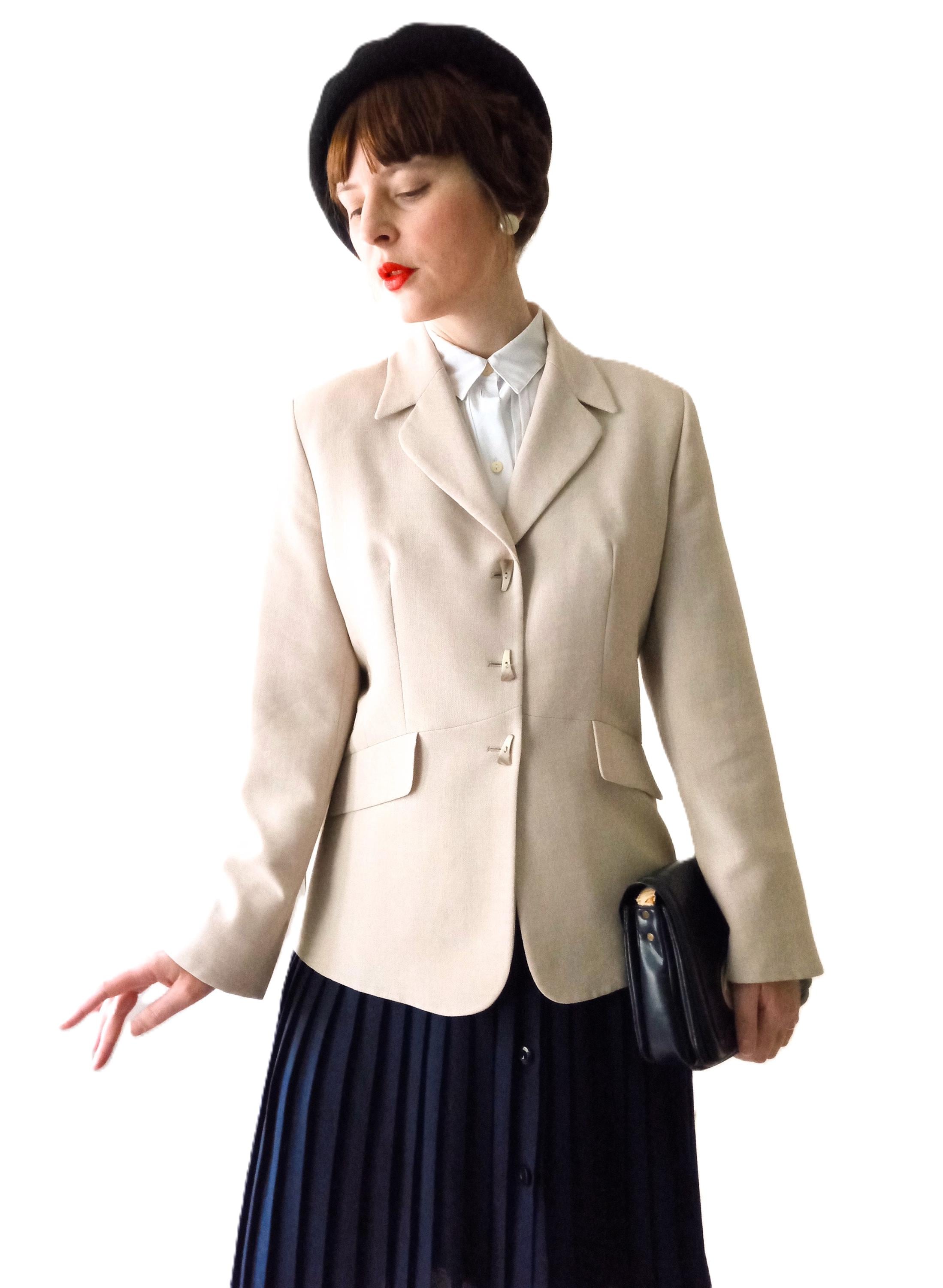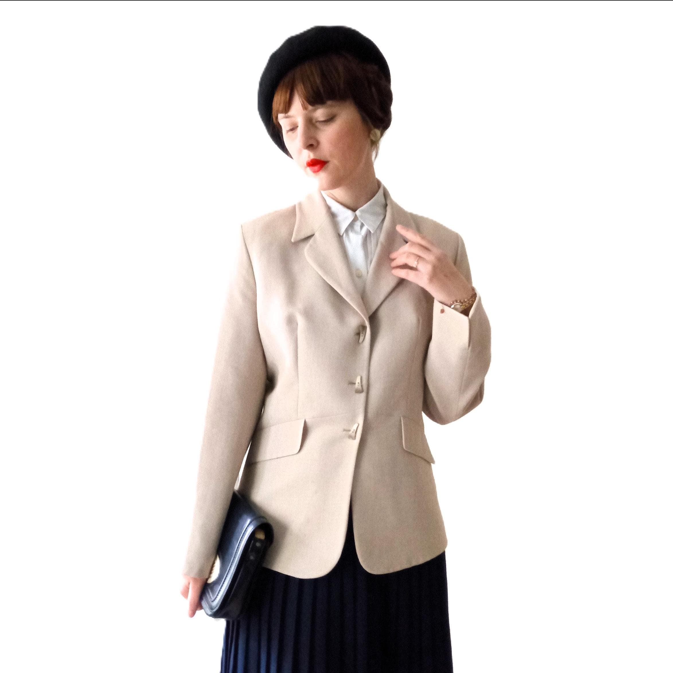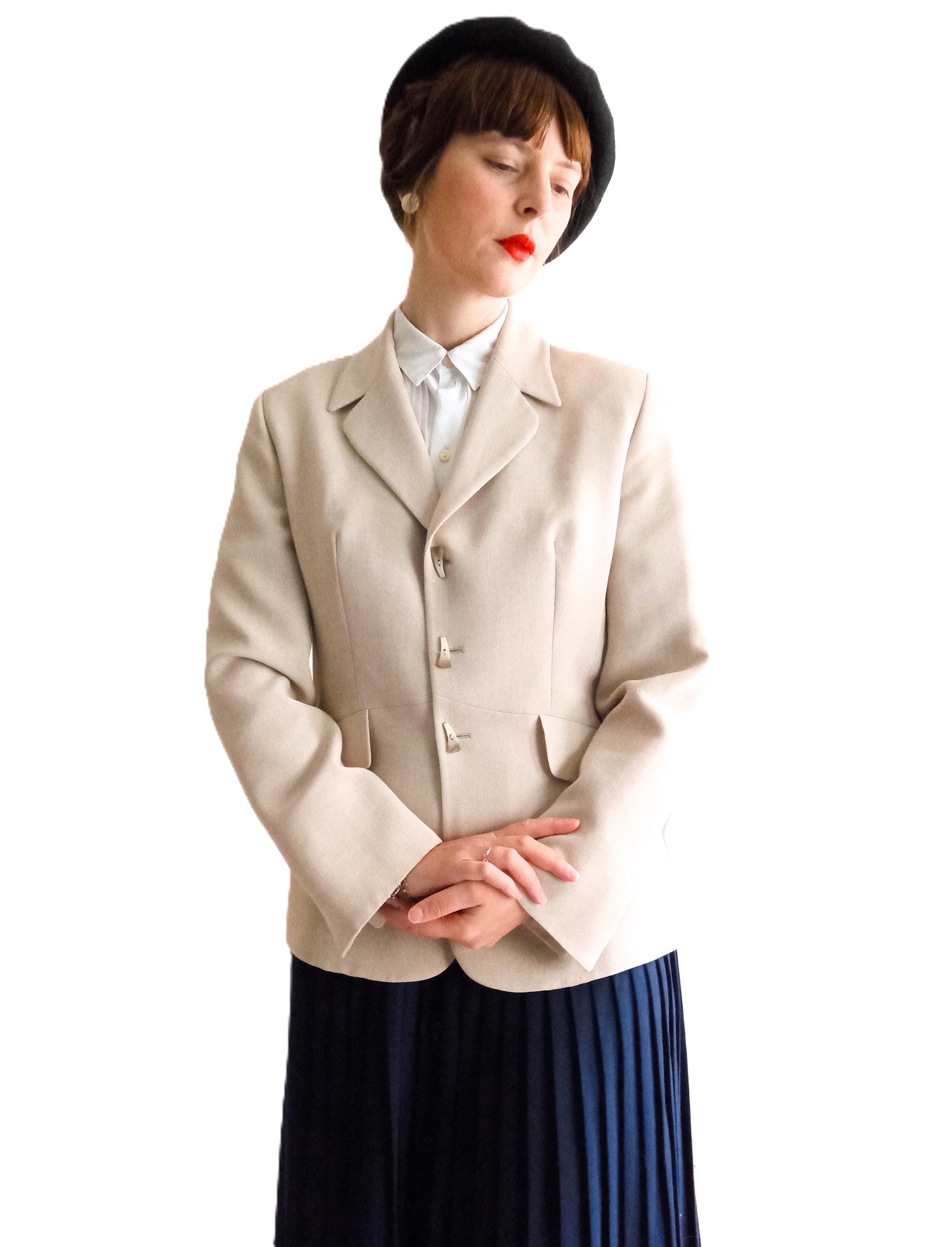 Découvrez ce magnifique blazer beige , rétro esprit années 40, vintage des années 90 .