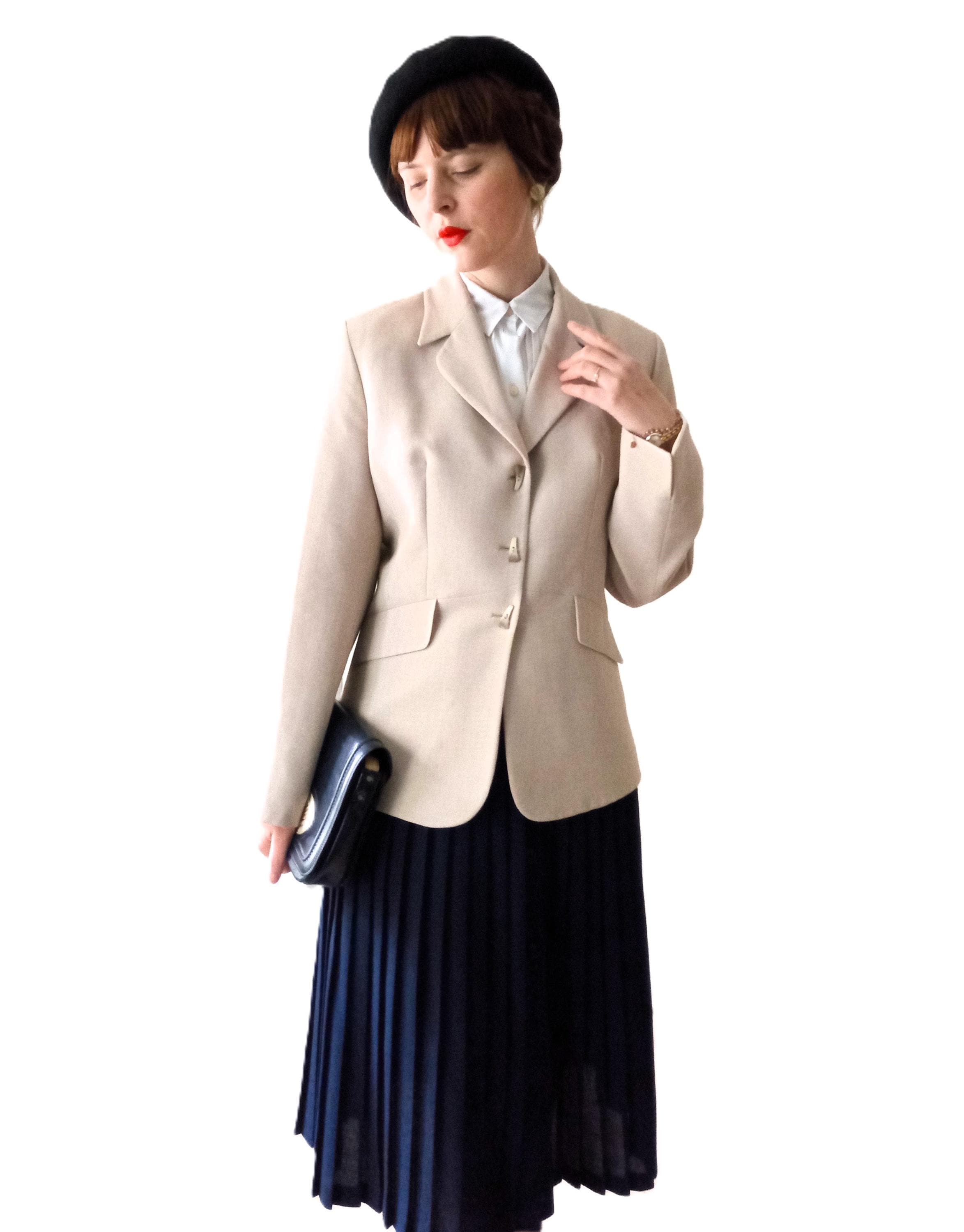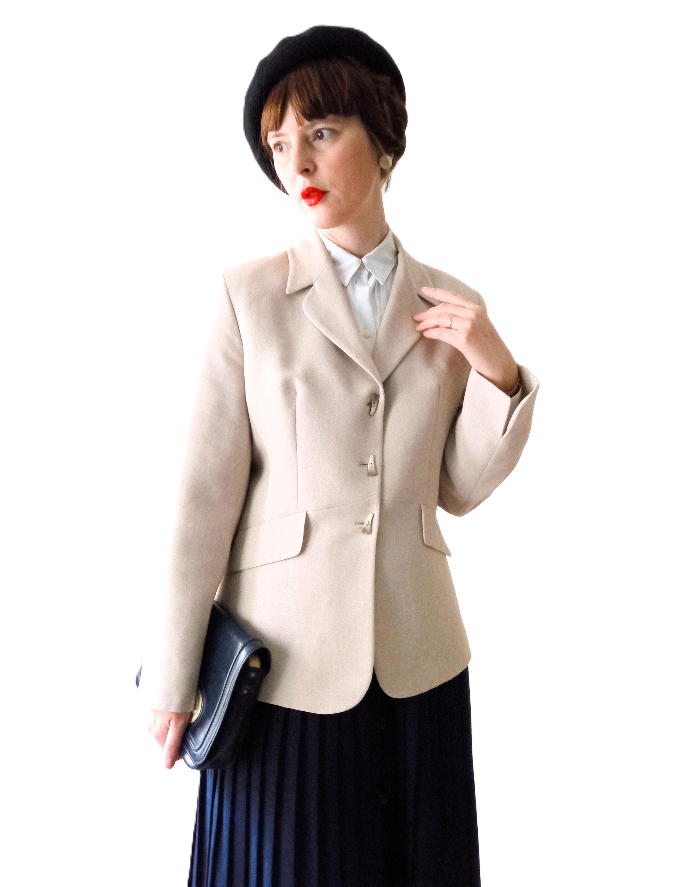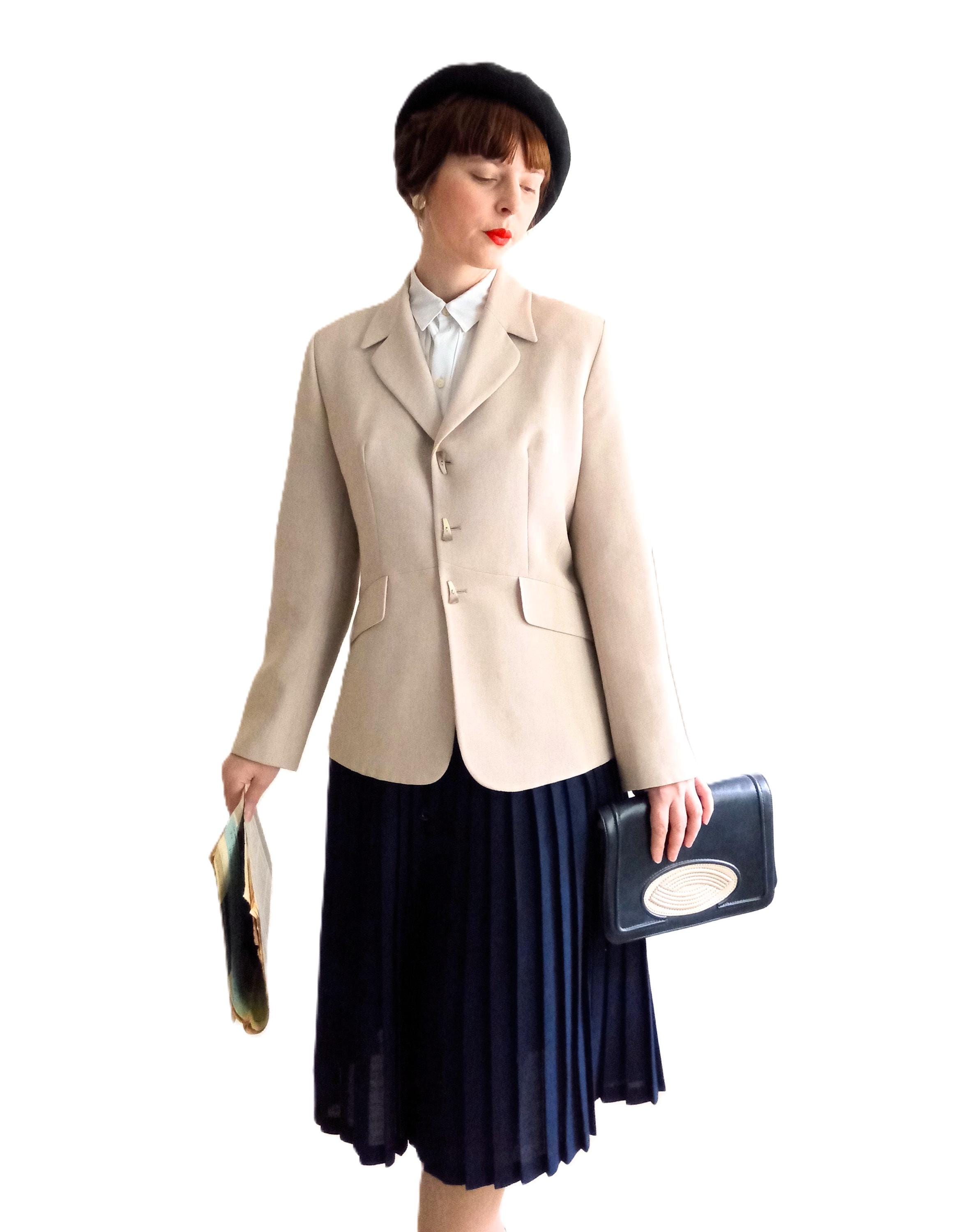 Découvrez ce magnifique blazer beige , rétro esprit années 40, vintage des années 90 .