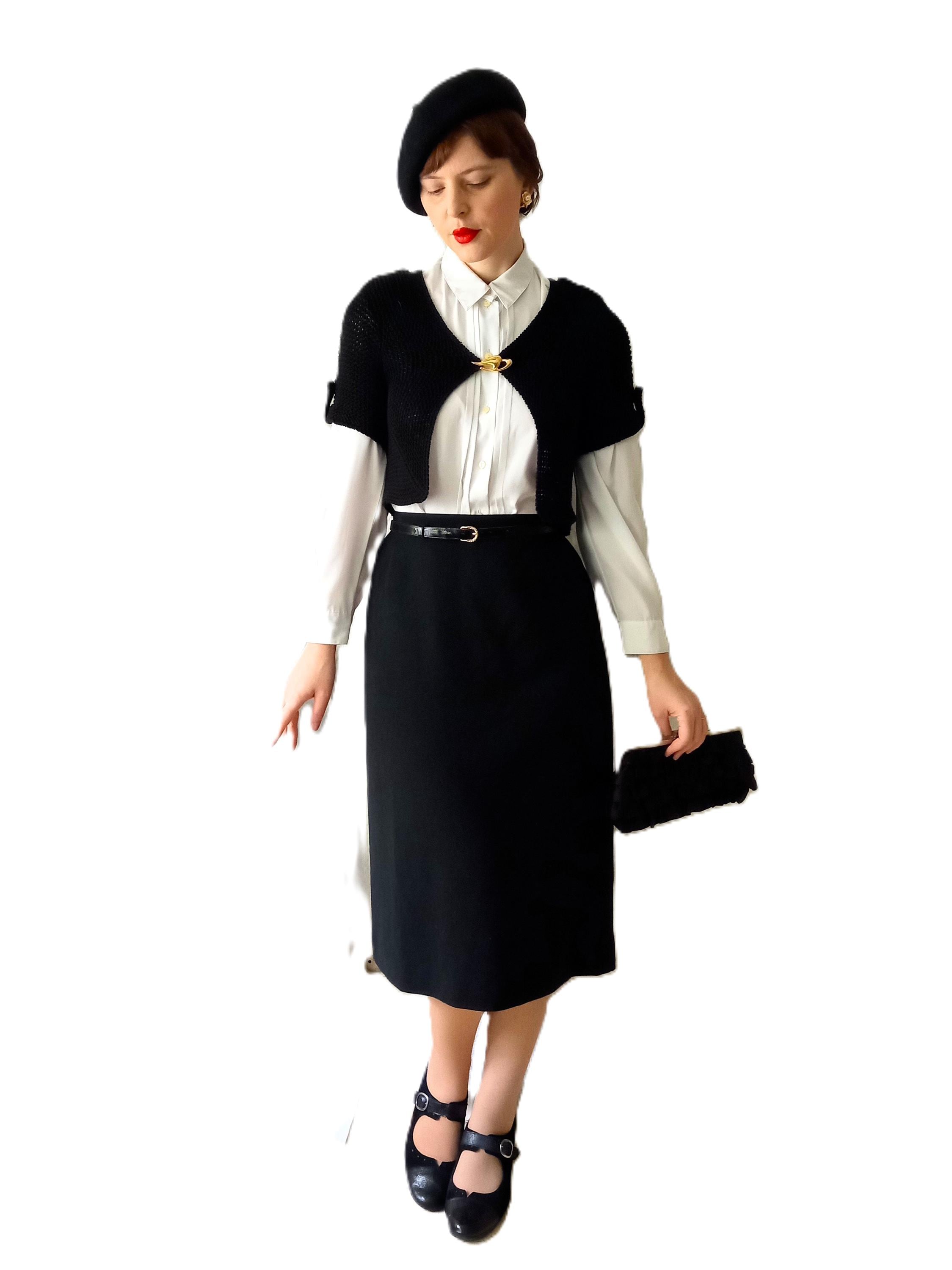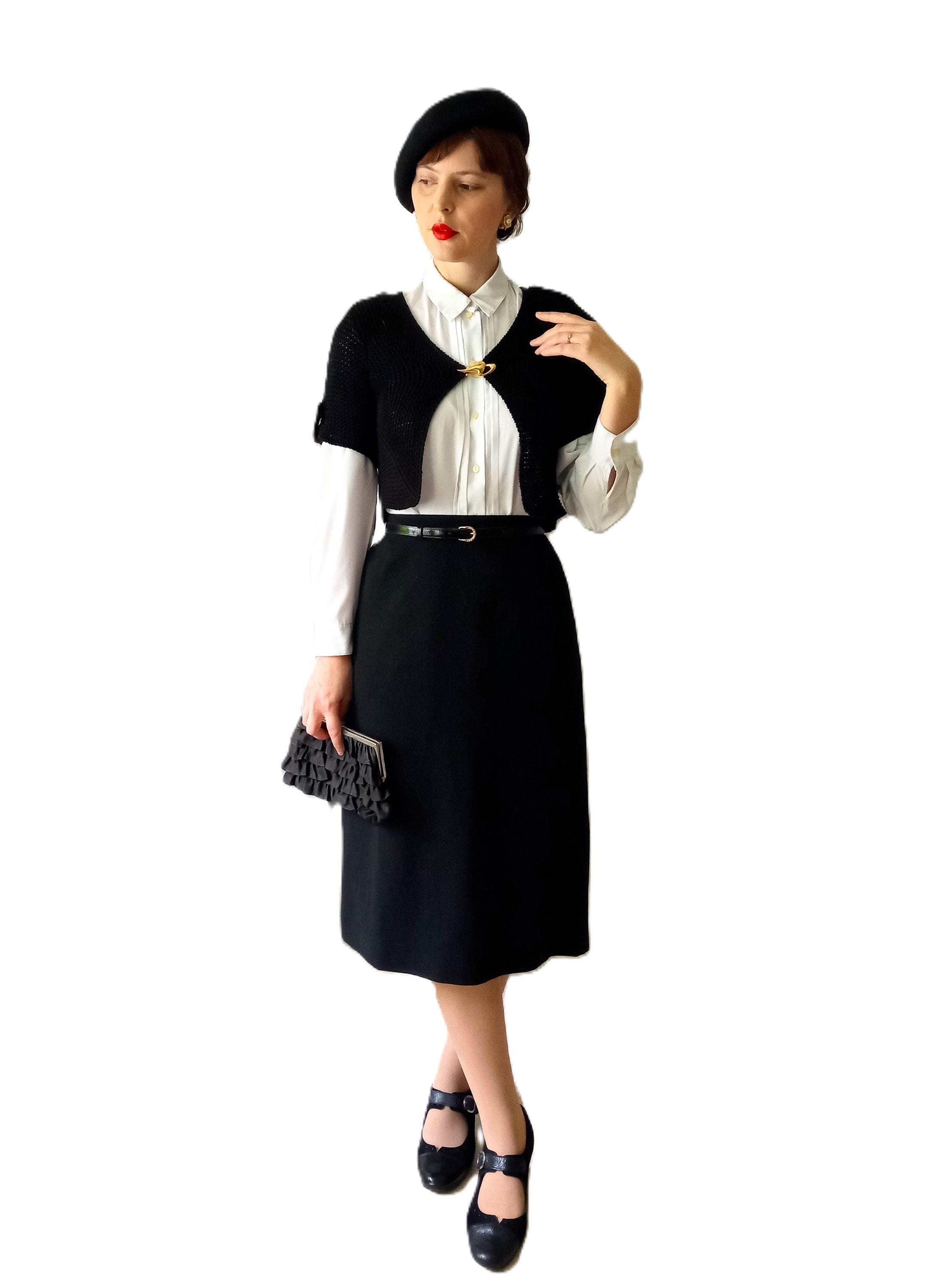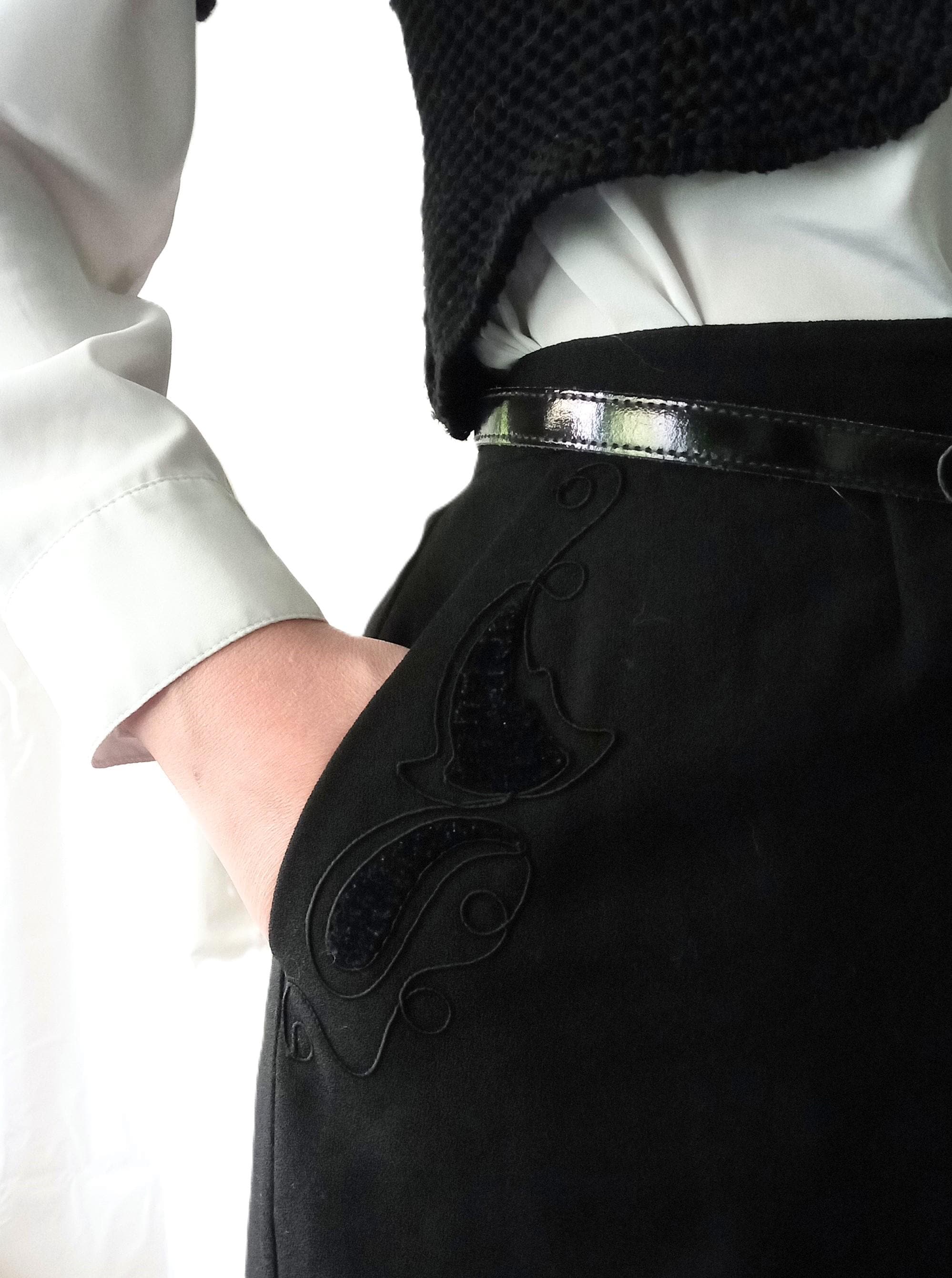 Dive into timeless elegance with this superb black embroidered midi skirt, inspired by the 1940s.