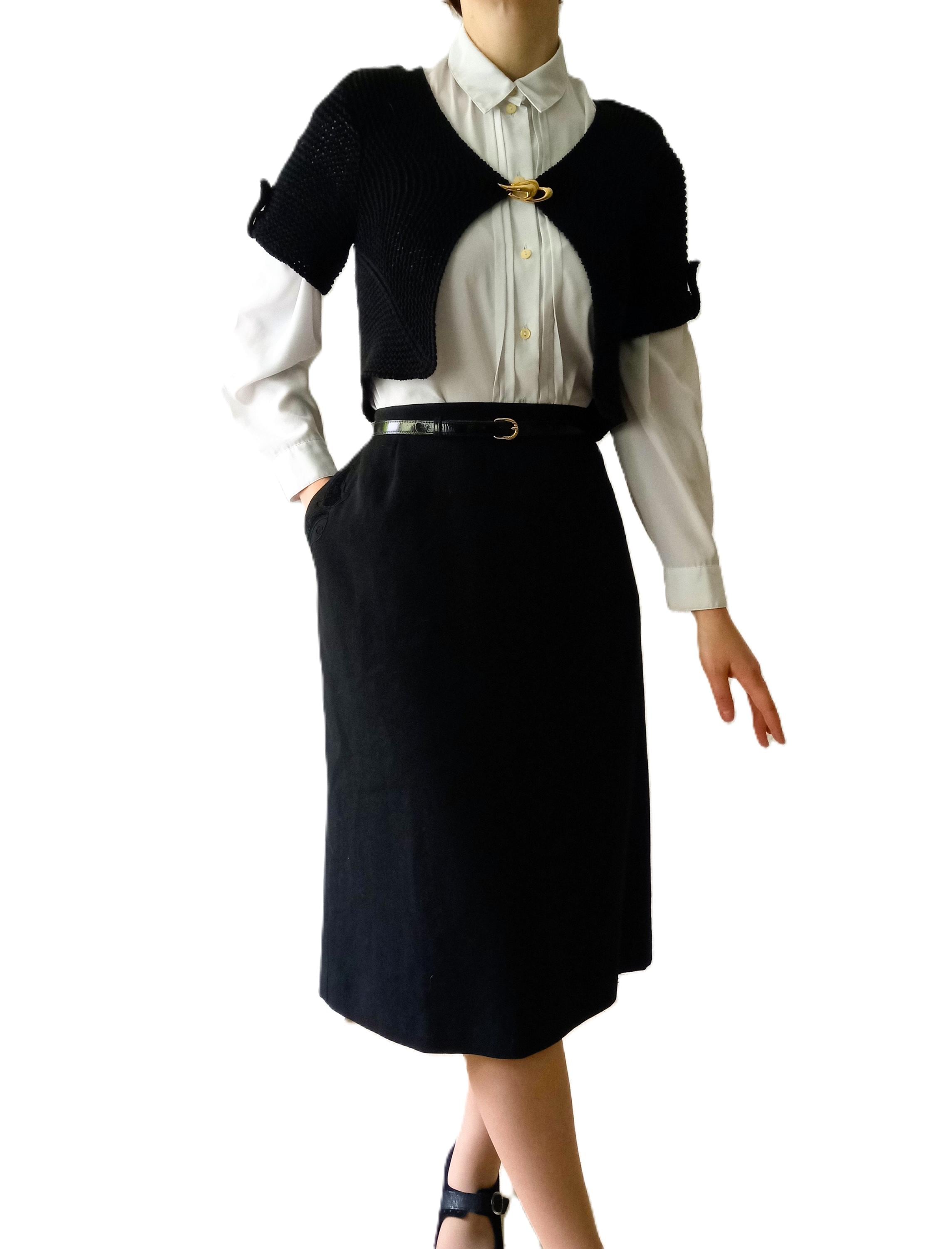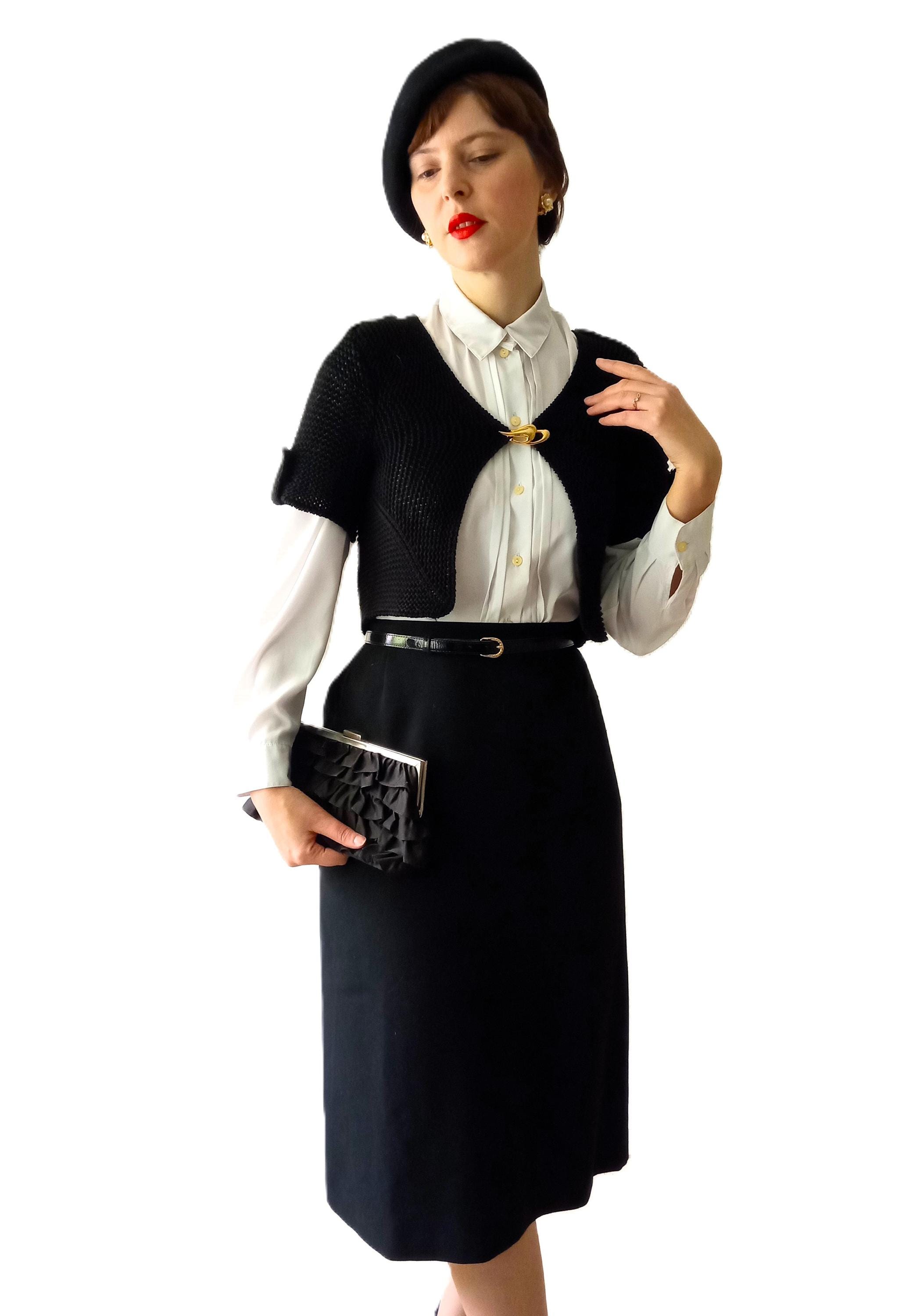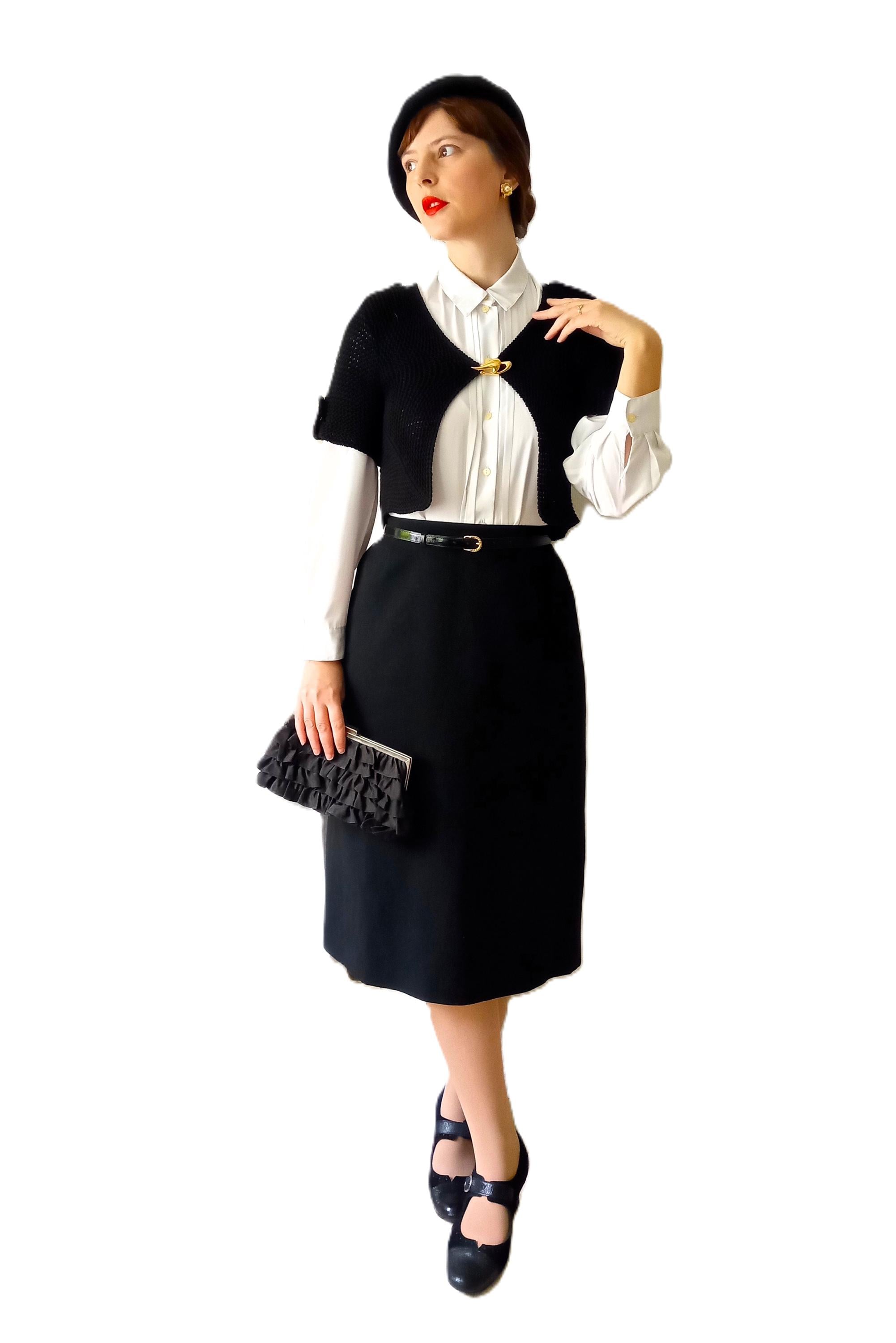Dive into timeless elegance with this superb black embroidered midi skirt, inspired by the 1940s.