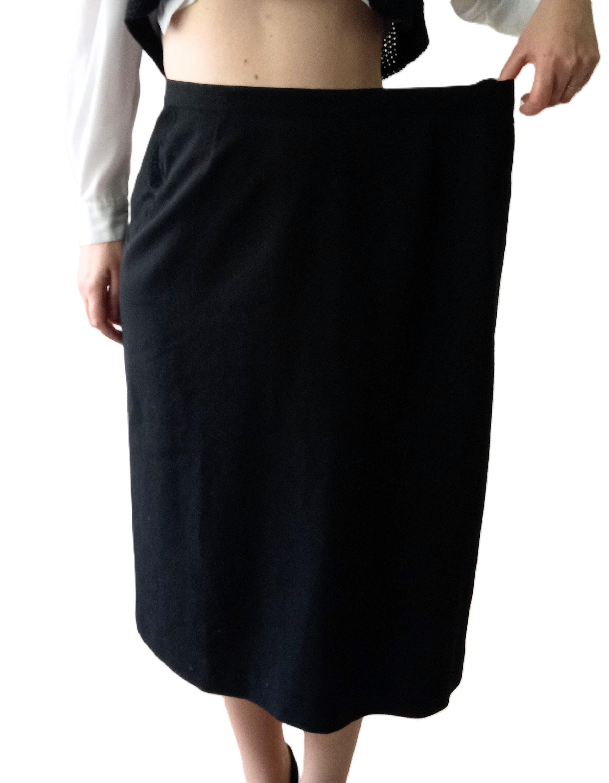 Jupe Midi Noire Brodée Rétro Weinberg - Fabriquée En France - Style Années 40 - 3×L/4×L (46/48)