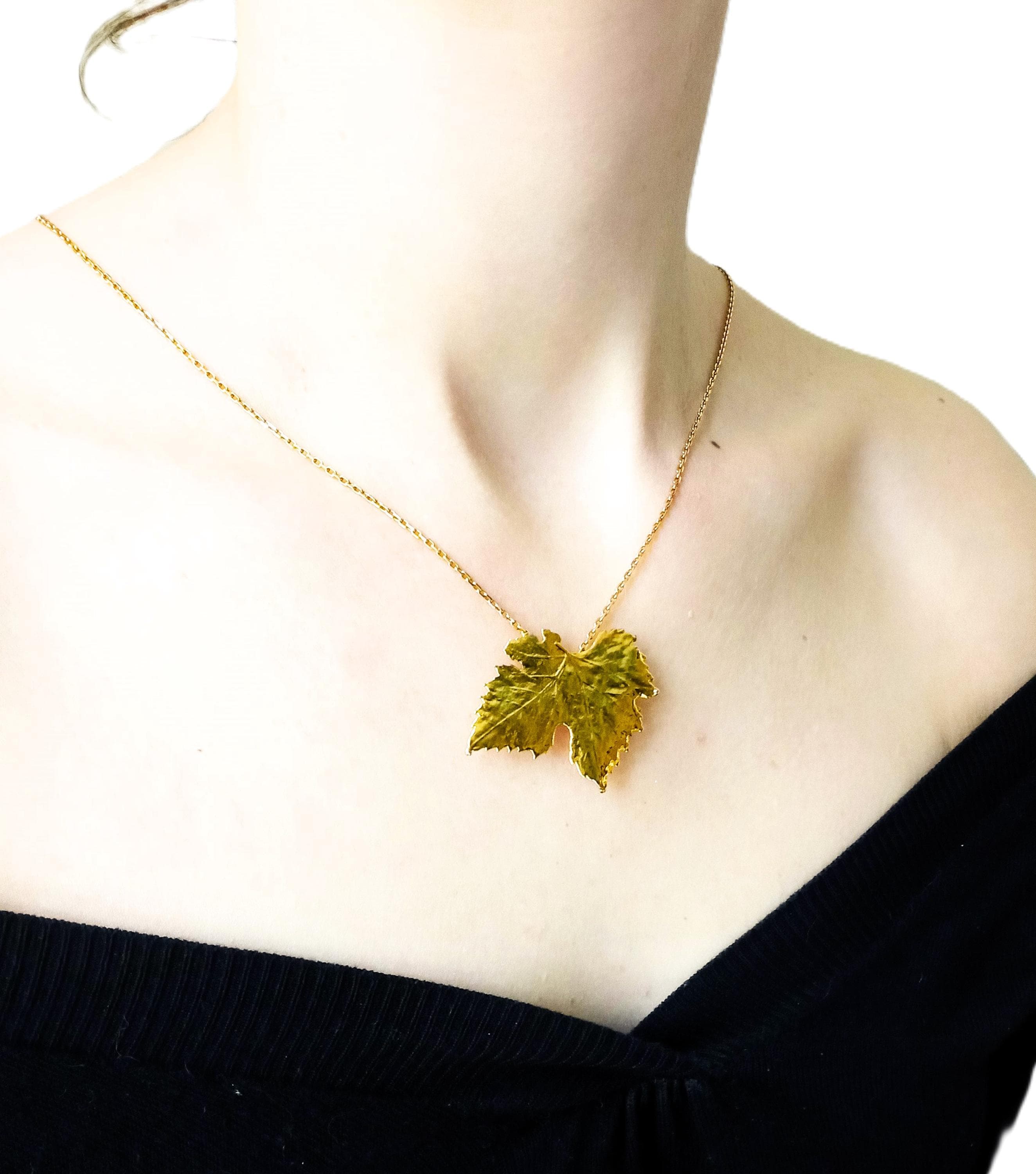 Design élégant et classique : Sa forme stylisée de feuille évoque la simplicité raffinée de l’automne, faisant de ce pendentif une pièce maîtresse qui attire les regards.