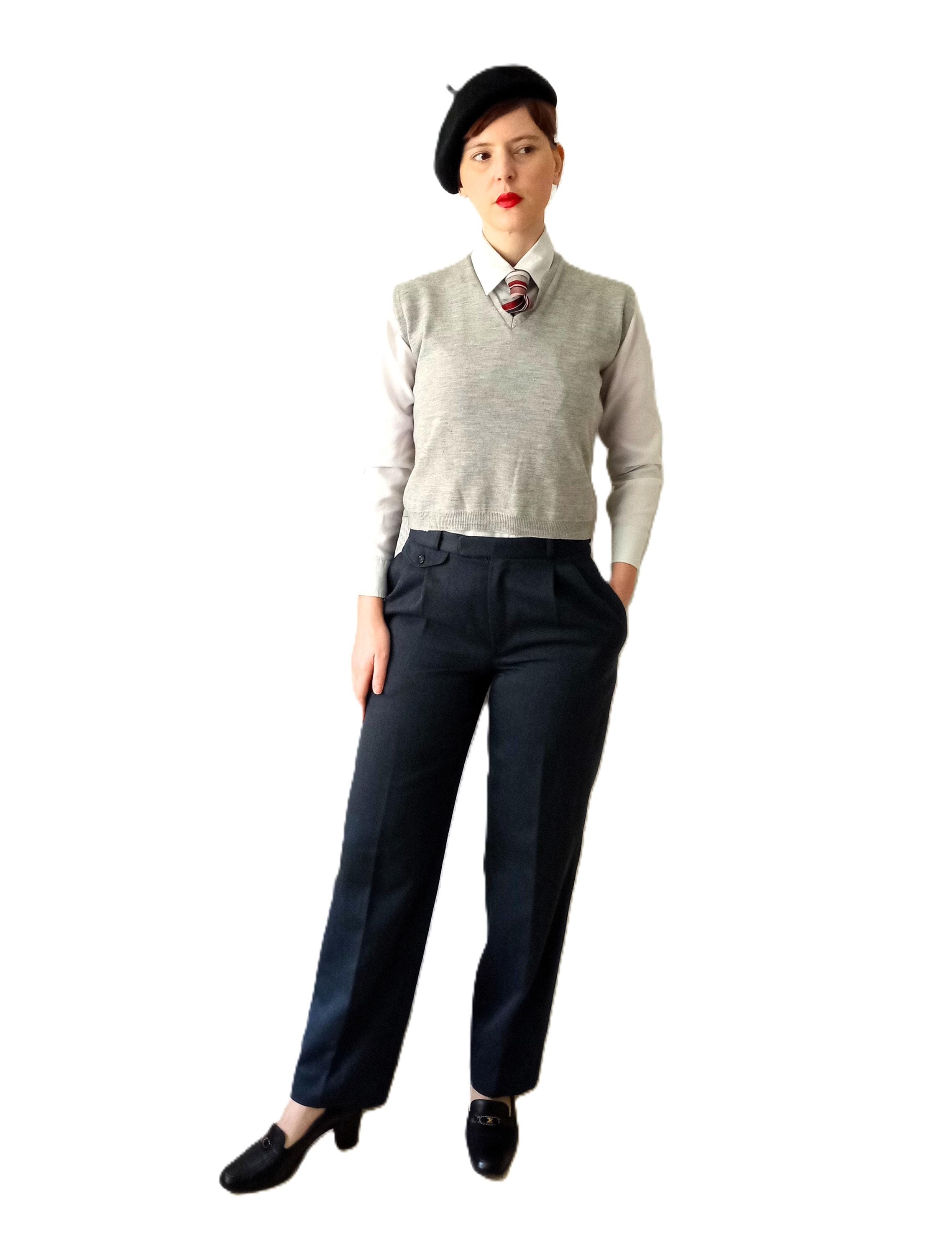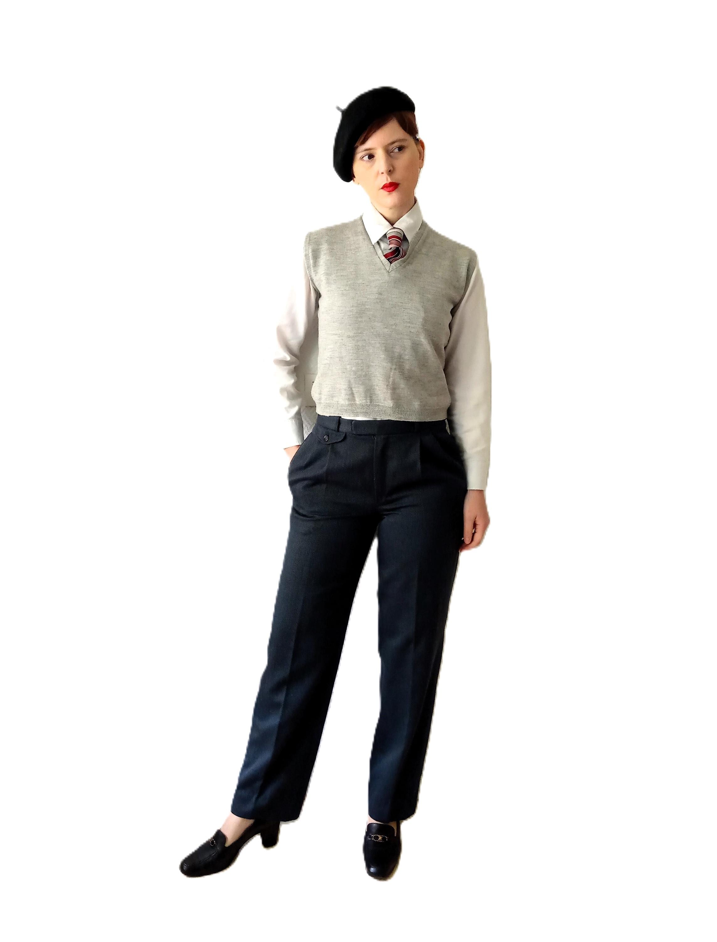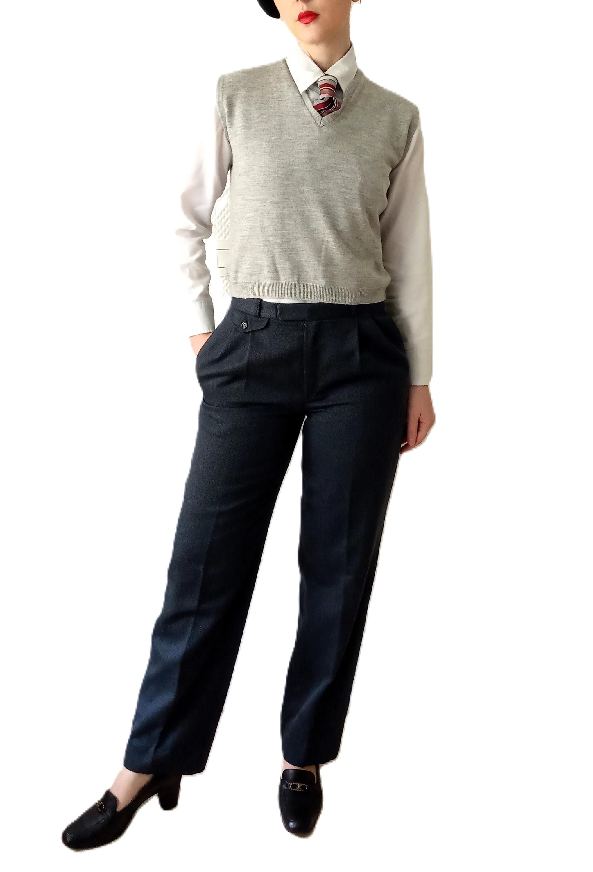 Pantalon Gris Classique Unisexe Vintage - Costume Rétro - Années 80 - Elégance Intemporelle - L (40)
