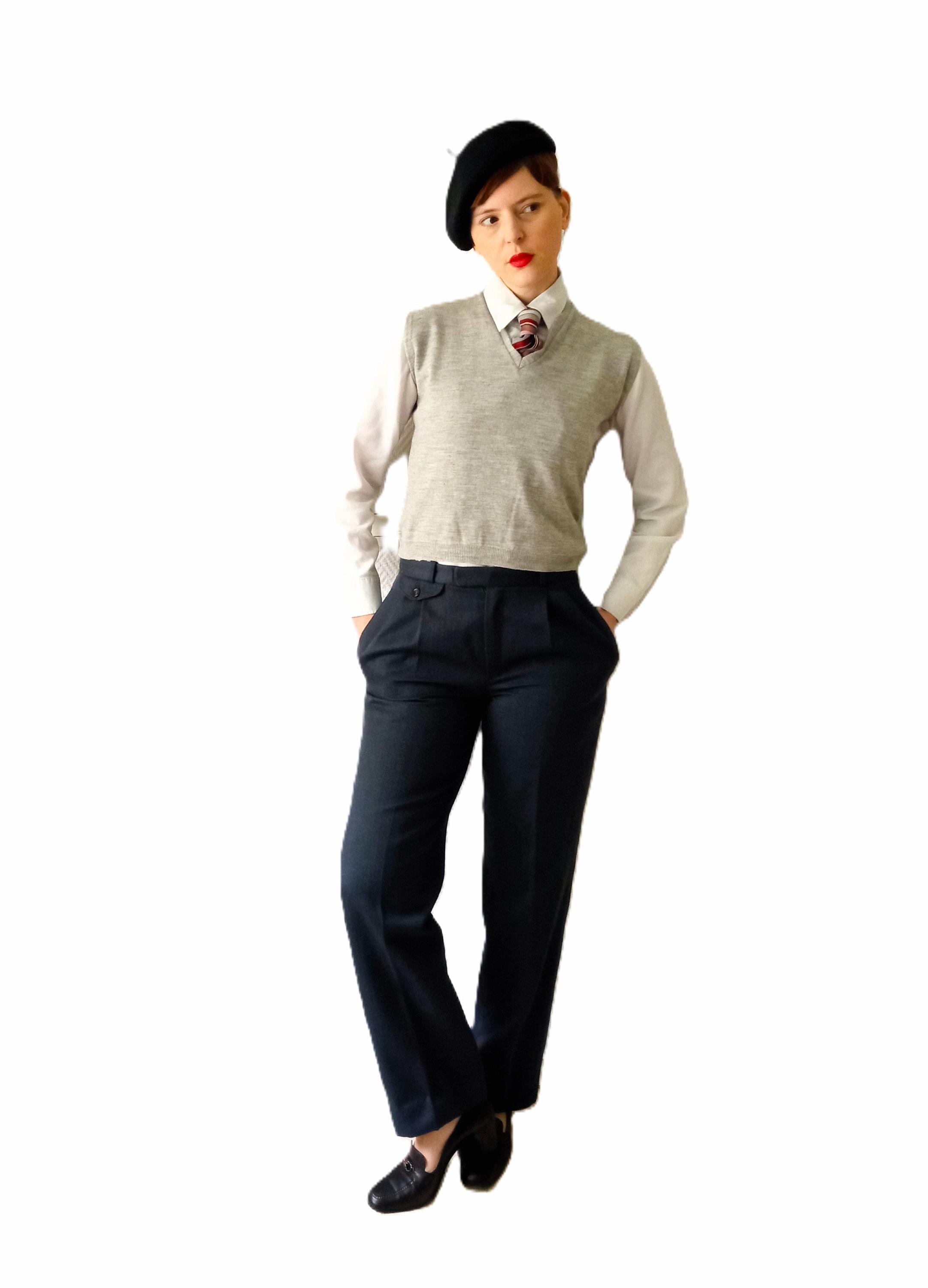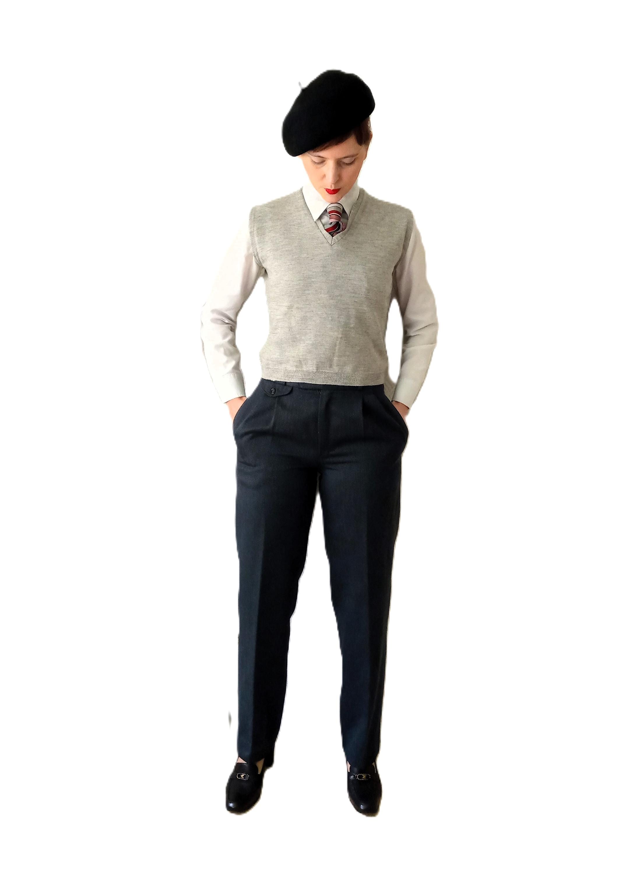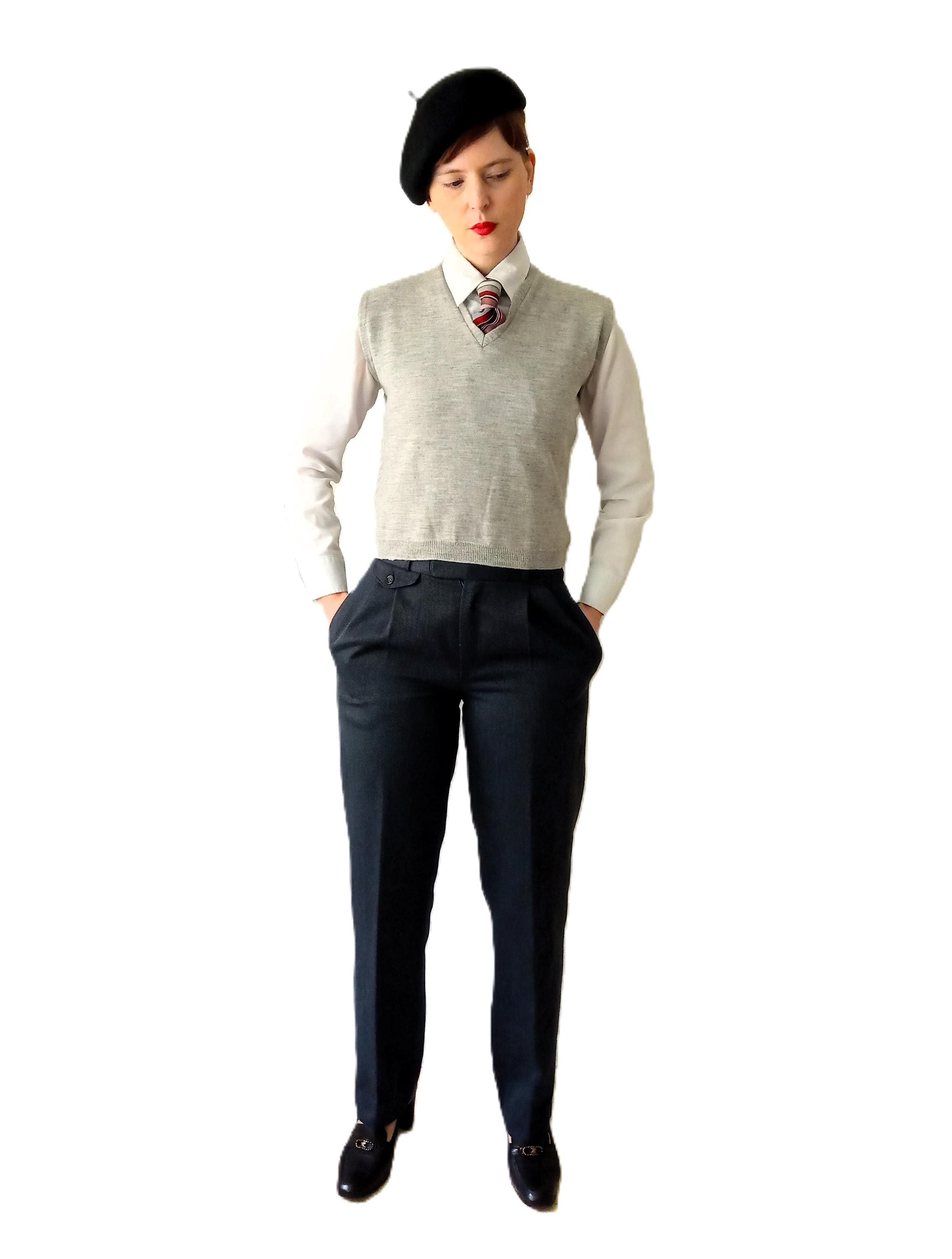 Pantalon Gris Classique Unisexe Vintage - Costume Rétro - Années 80 - Elégance Intemporelle - L (40)