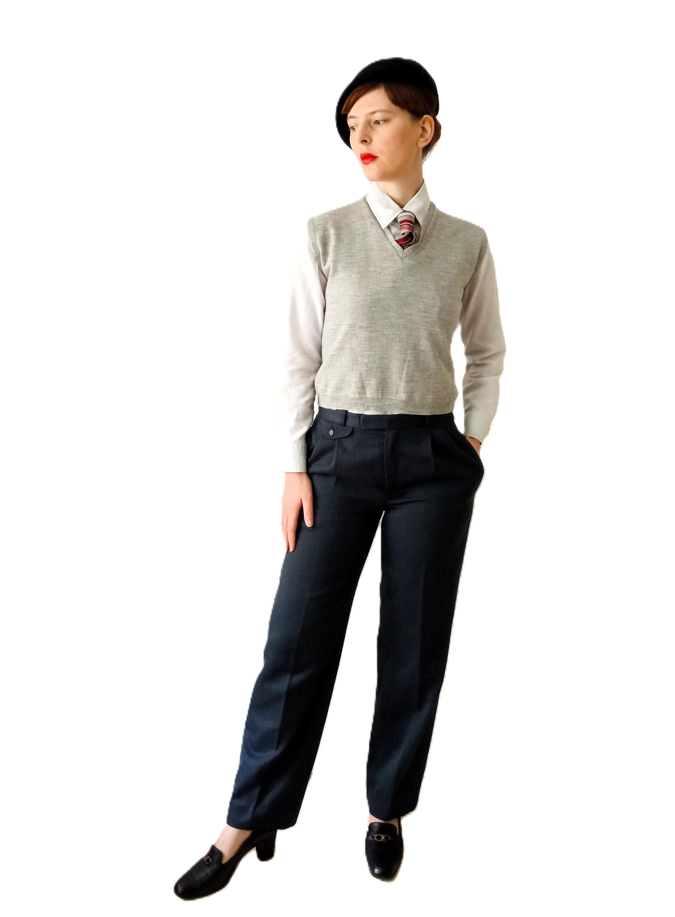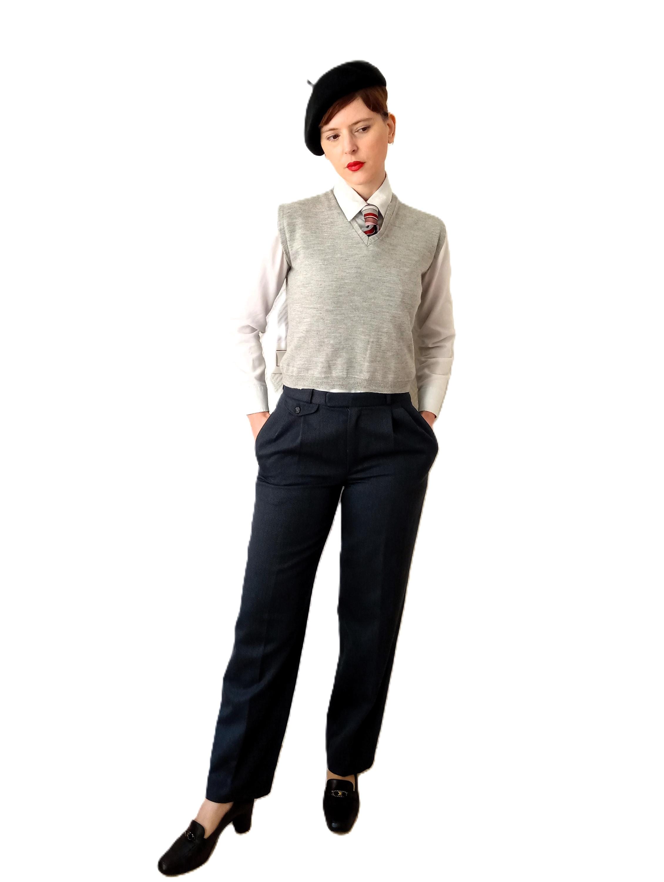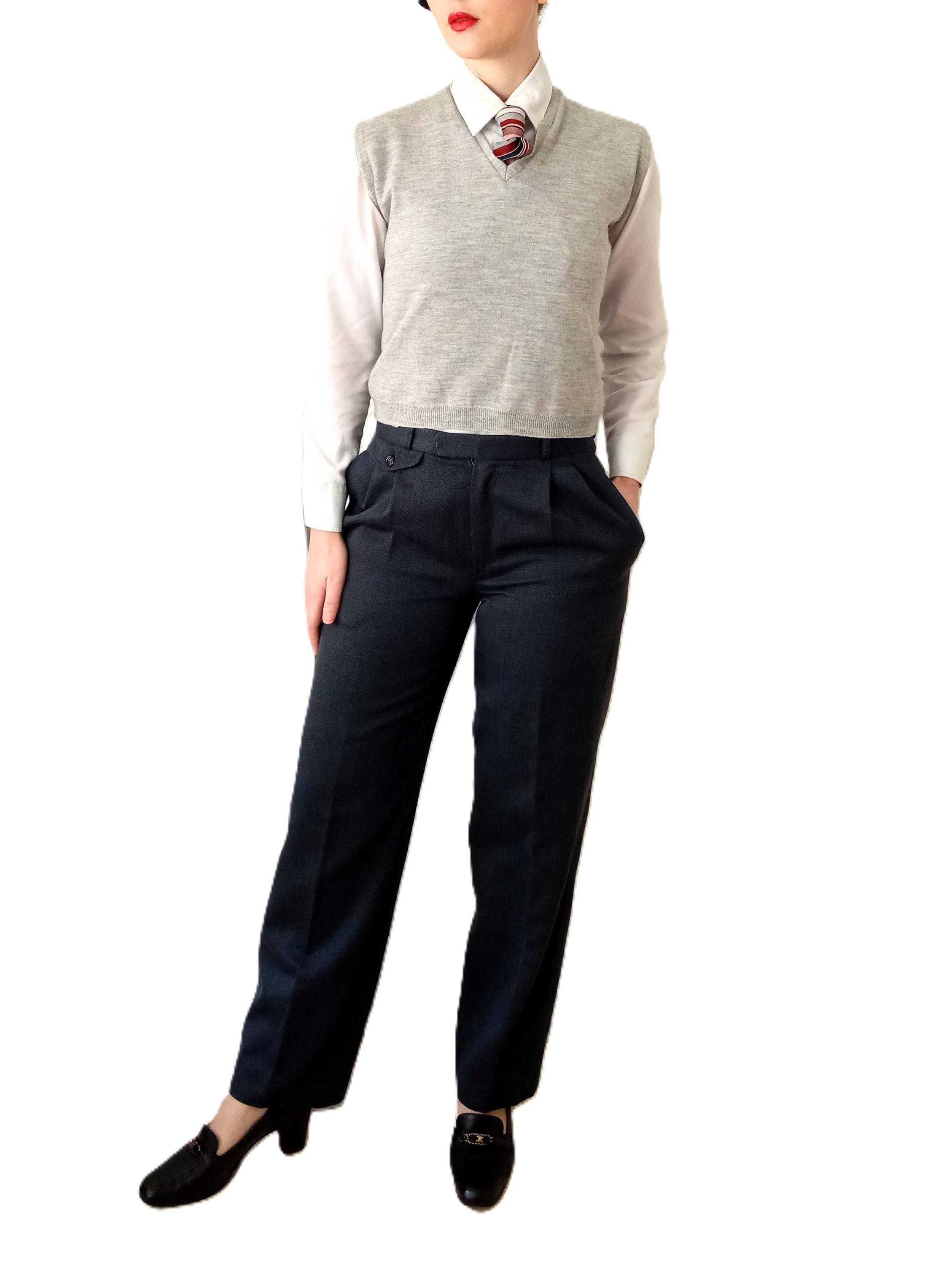 🇬🇧Classic Grey Unisex Trousers Vintage - Retro Suit - 80s - Timeless Elegance - L (40)