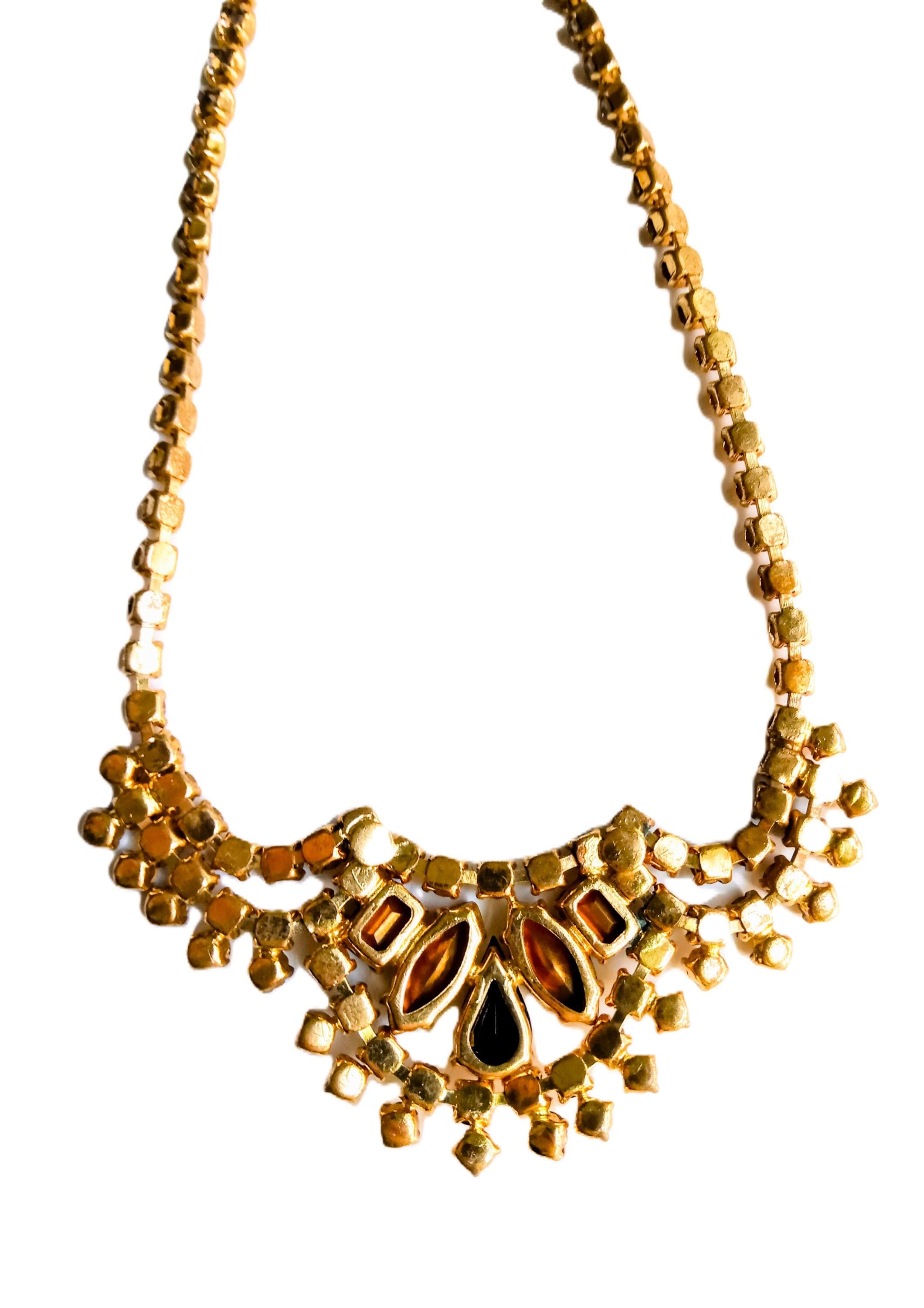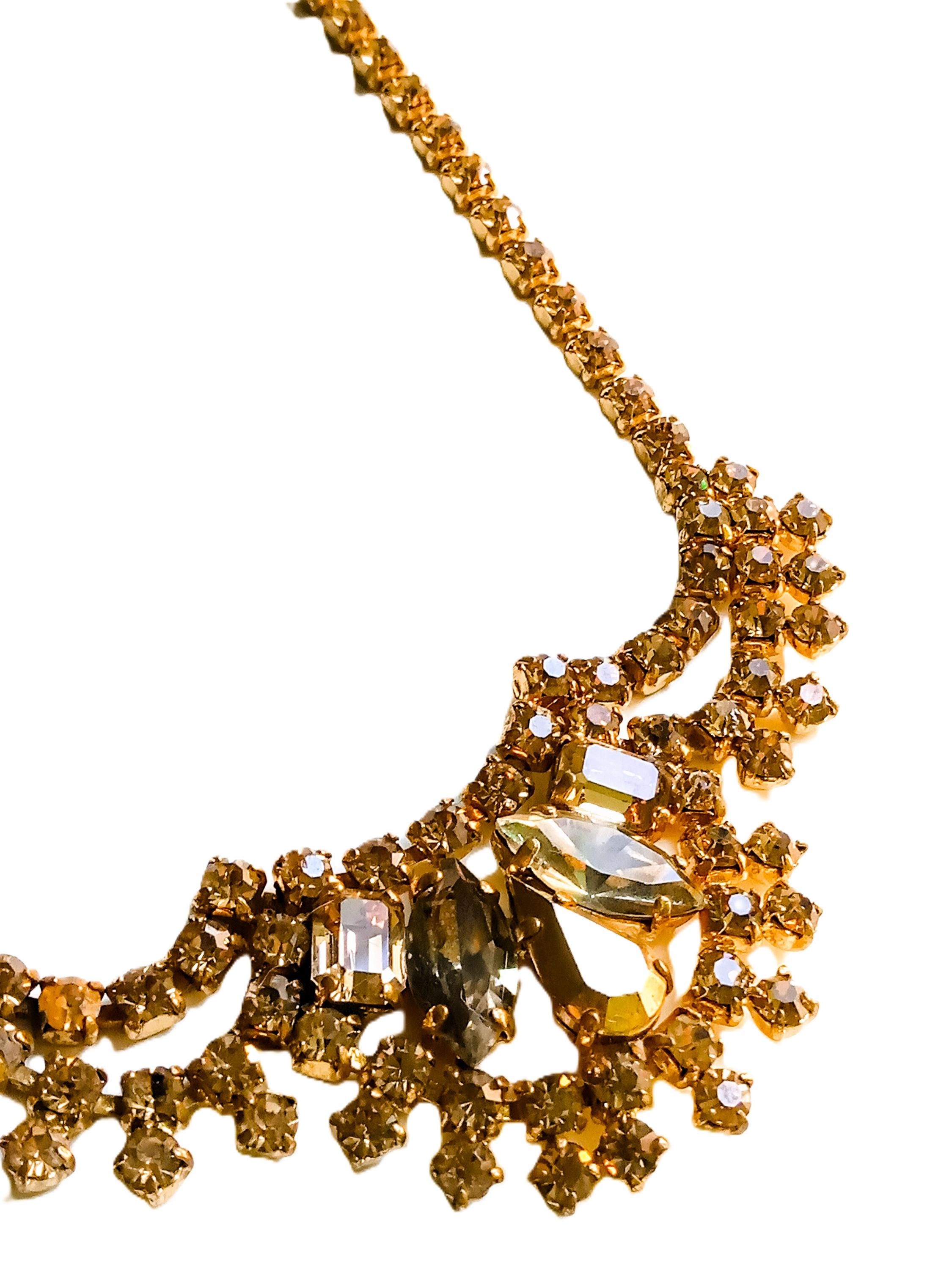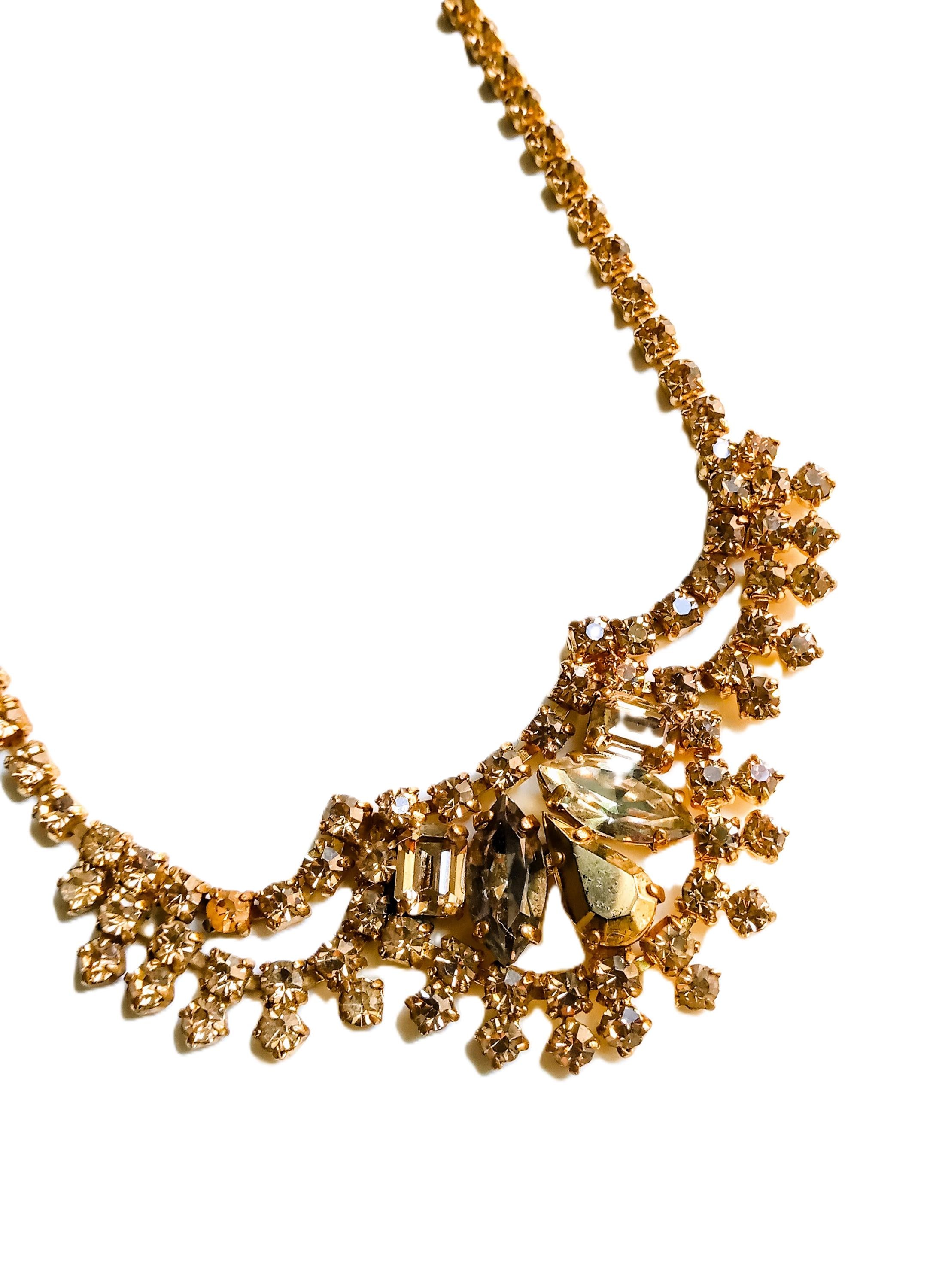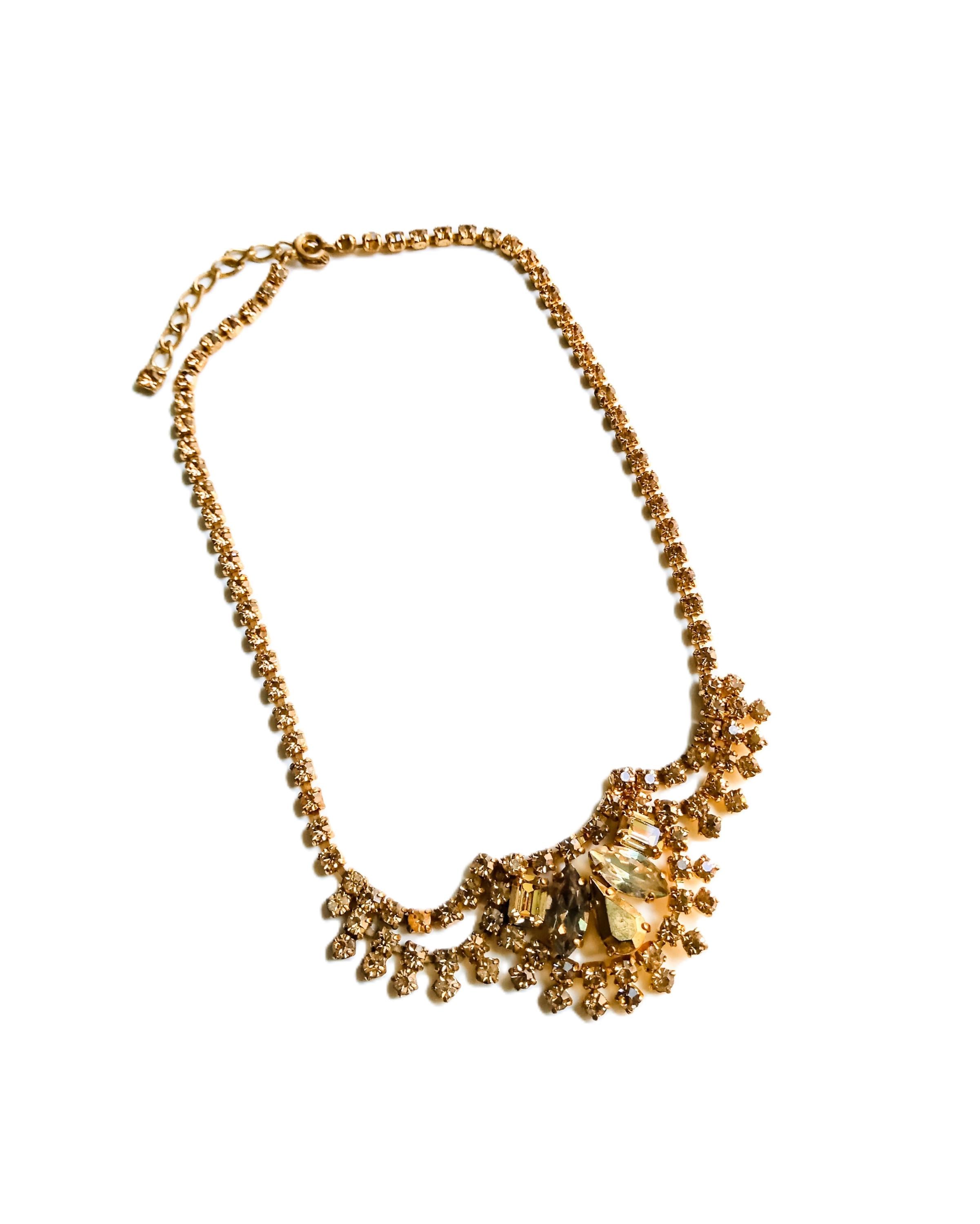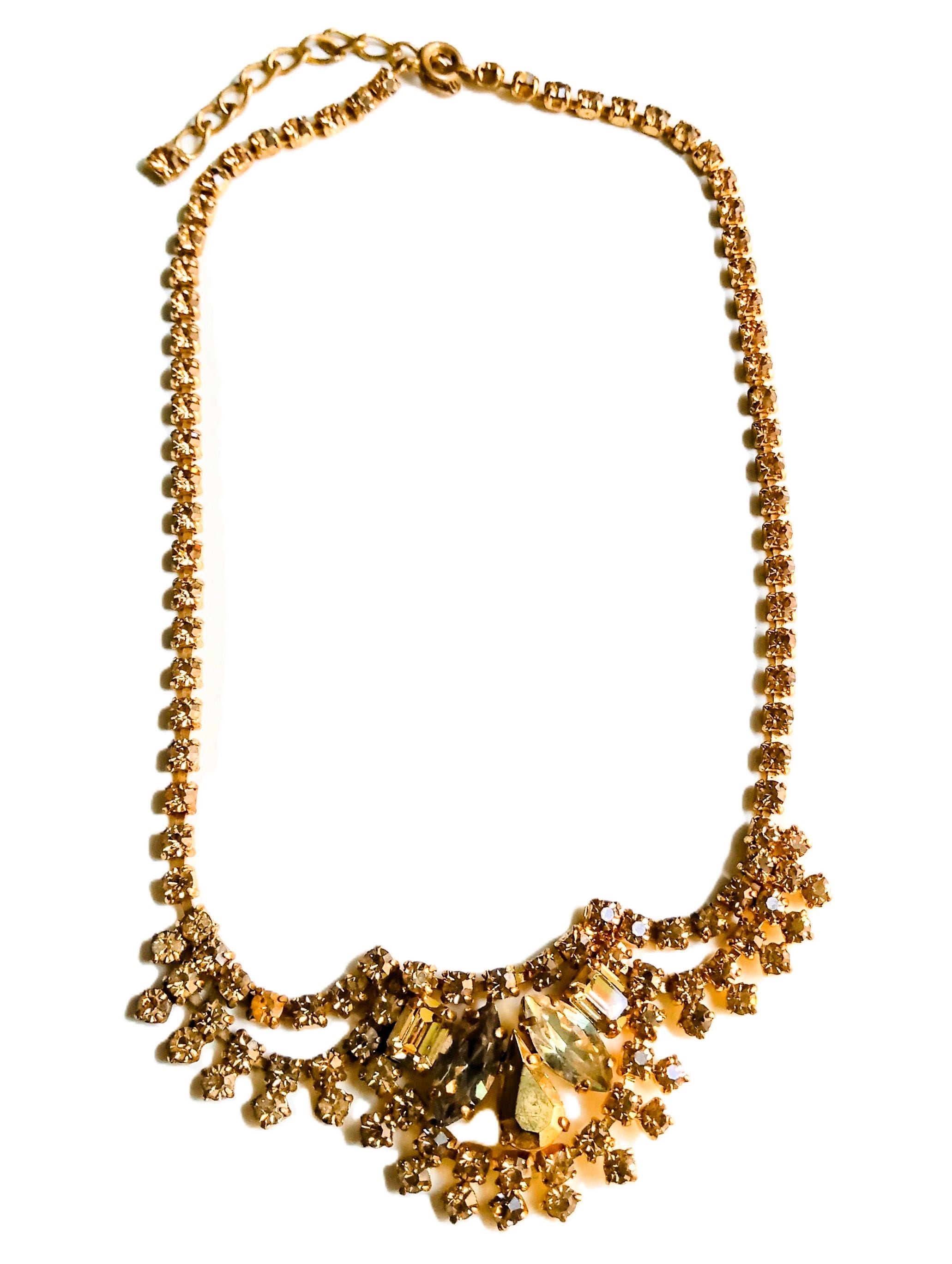🇬🇧Vintage 50s Rhinestone Plastron Necklace - Golden Stones - Antique Jewelry - Wedding Ceremony Celebration - Women’s Christmas Gift