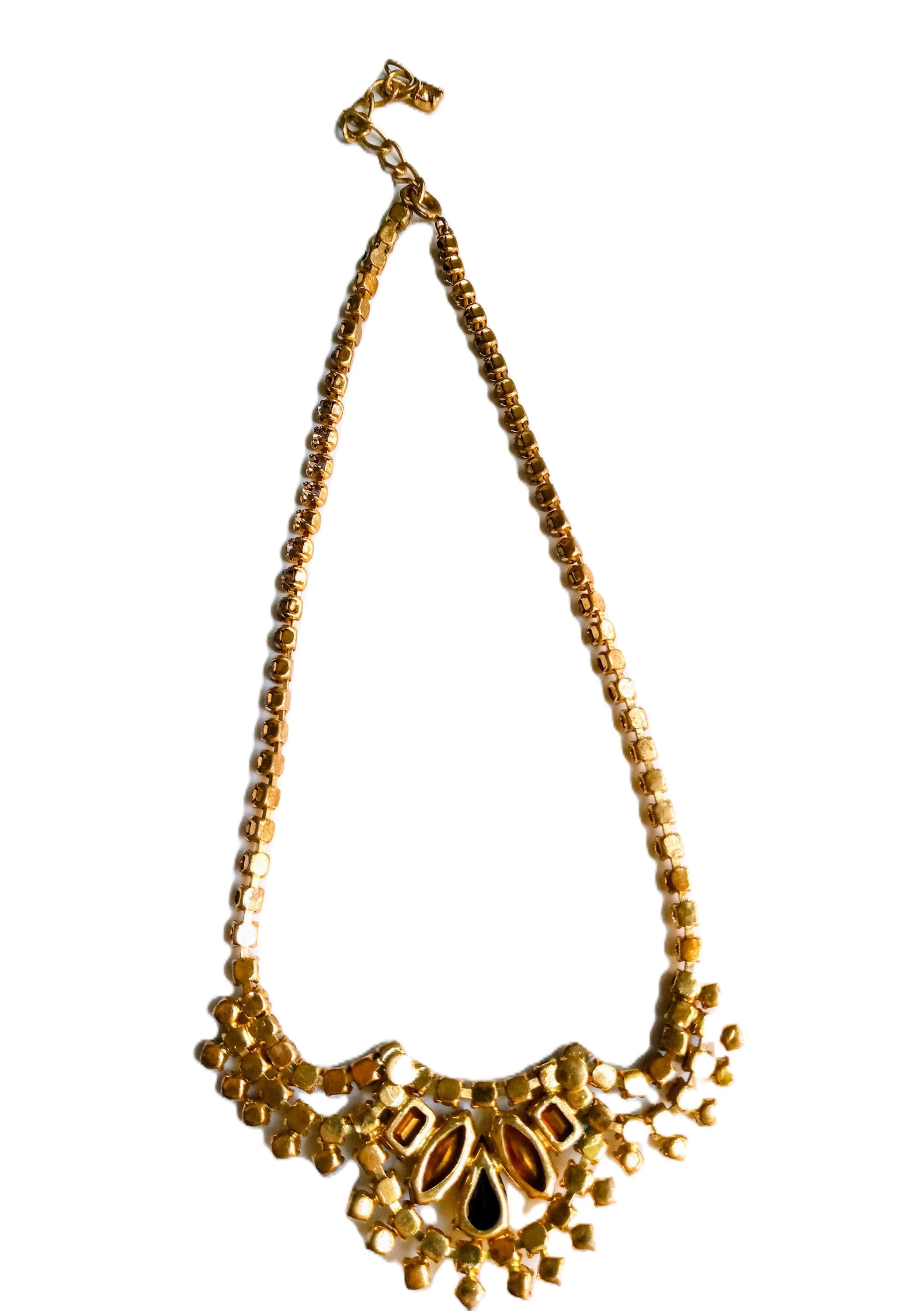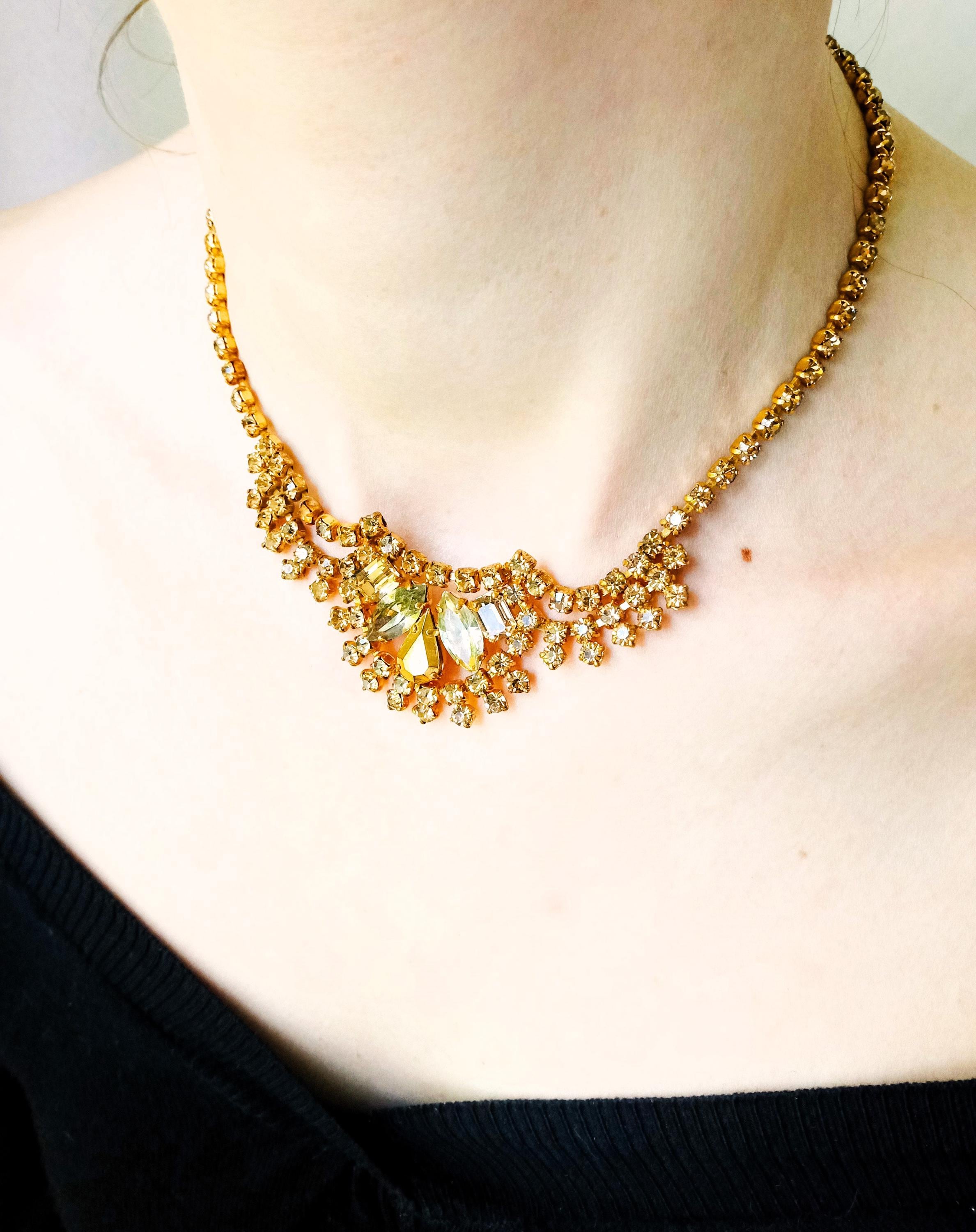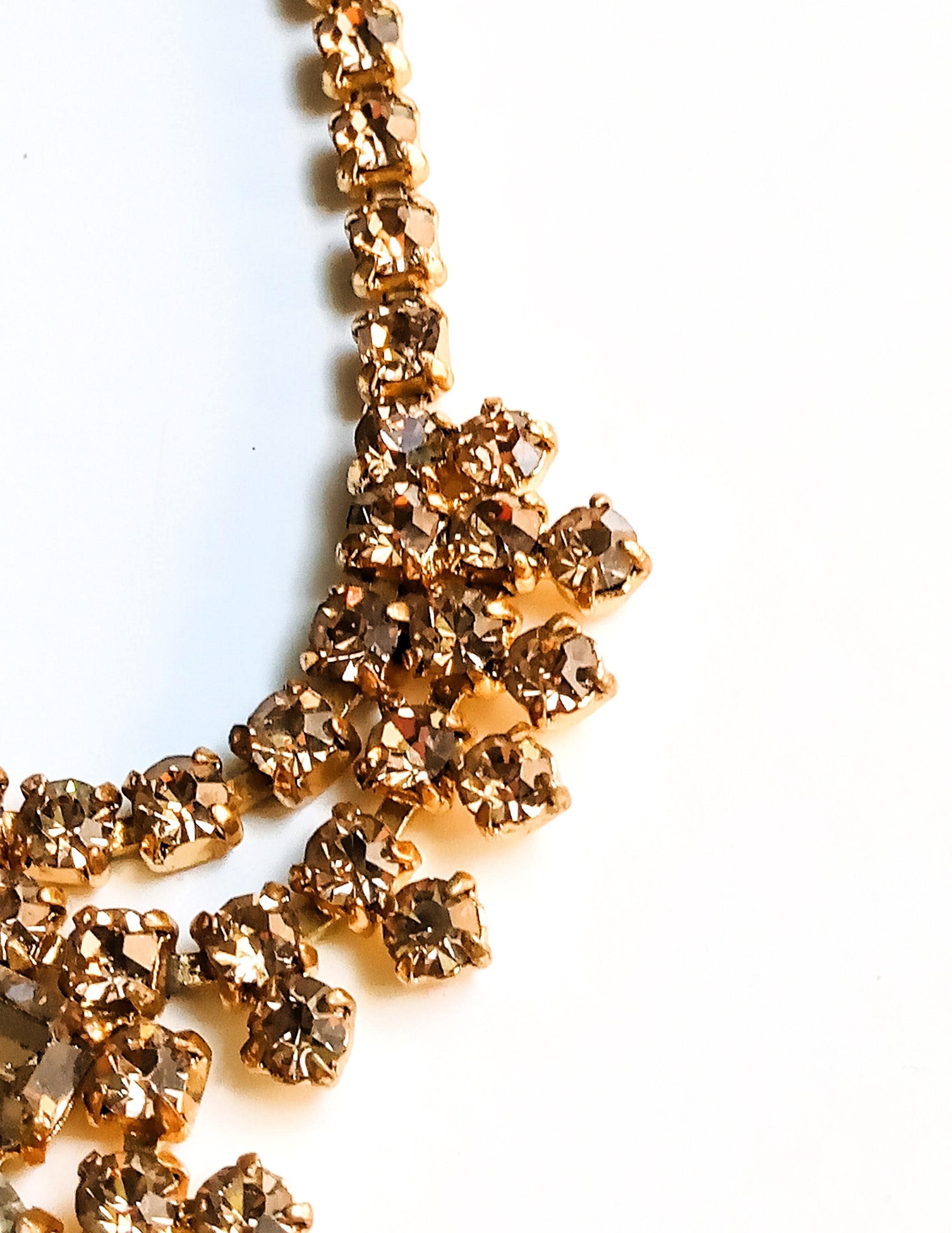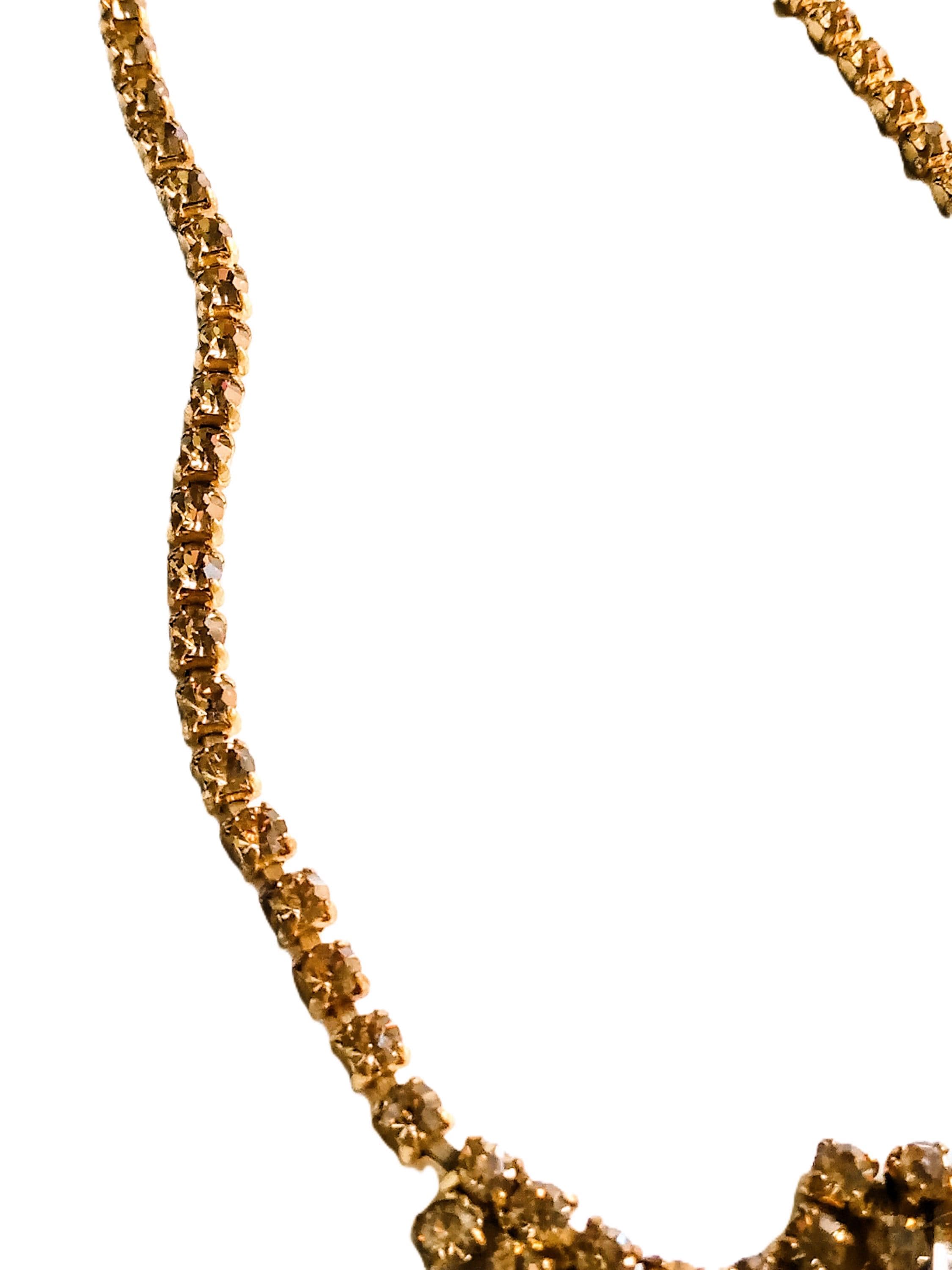 🇬🇧Vintage 50s Rhinestone Plastron Necklace - Golden Stones - Antique Jewelry - Wedding Ceremony Celebration - Women’s Christmas Gift