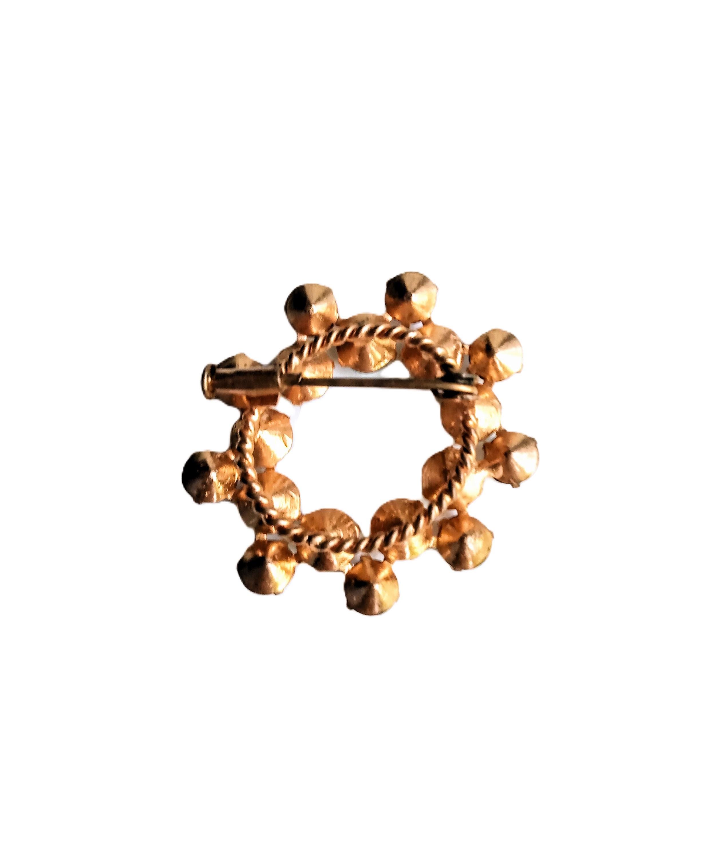 🇬🇧 Vintage Rhinestone Brooch Aurora Borealis – Antique Jewel 50s – Sparkling Golden Circle Brooch - Women’s Christmas Gift