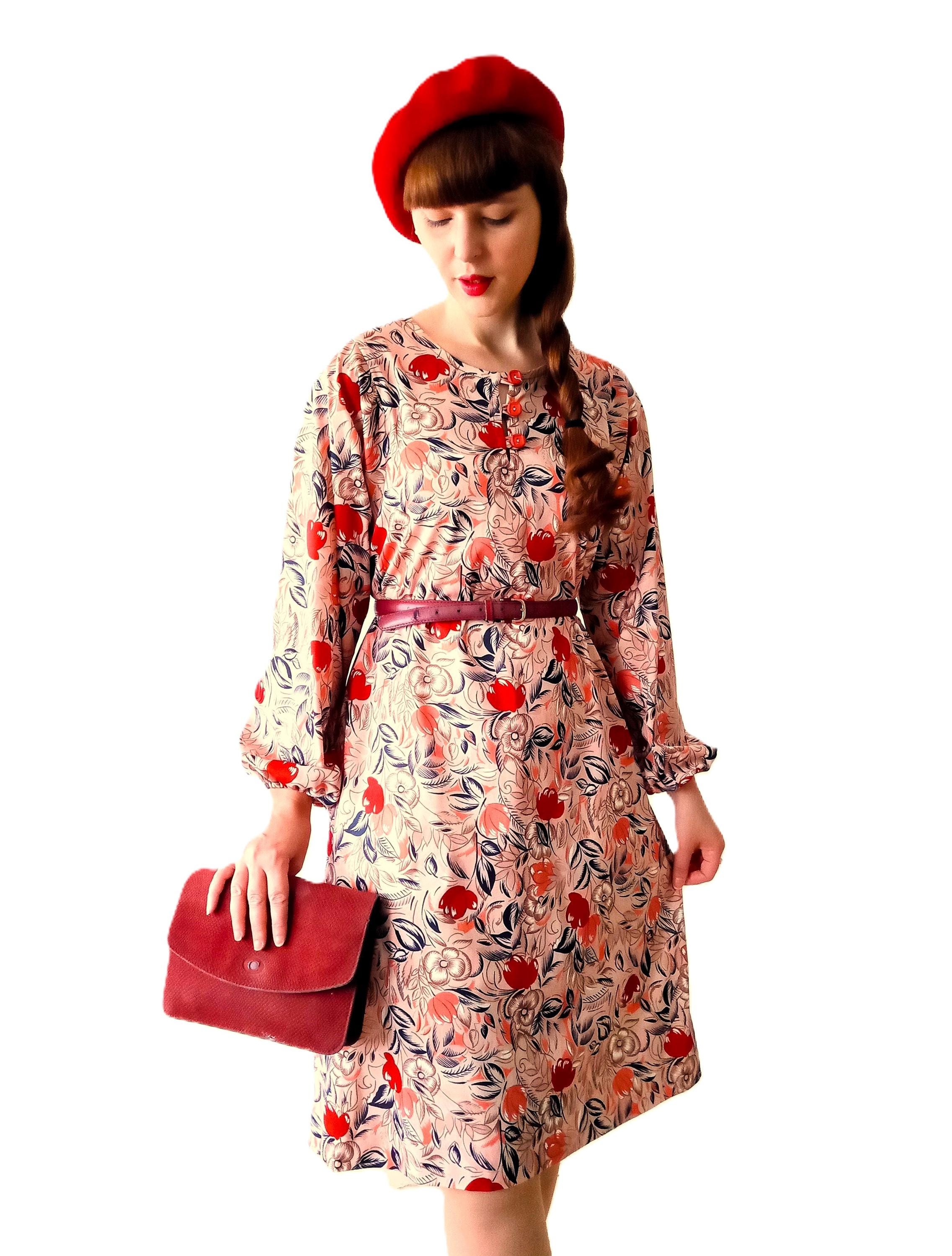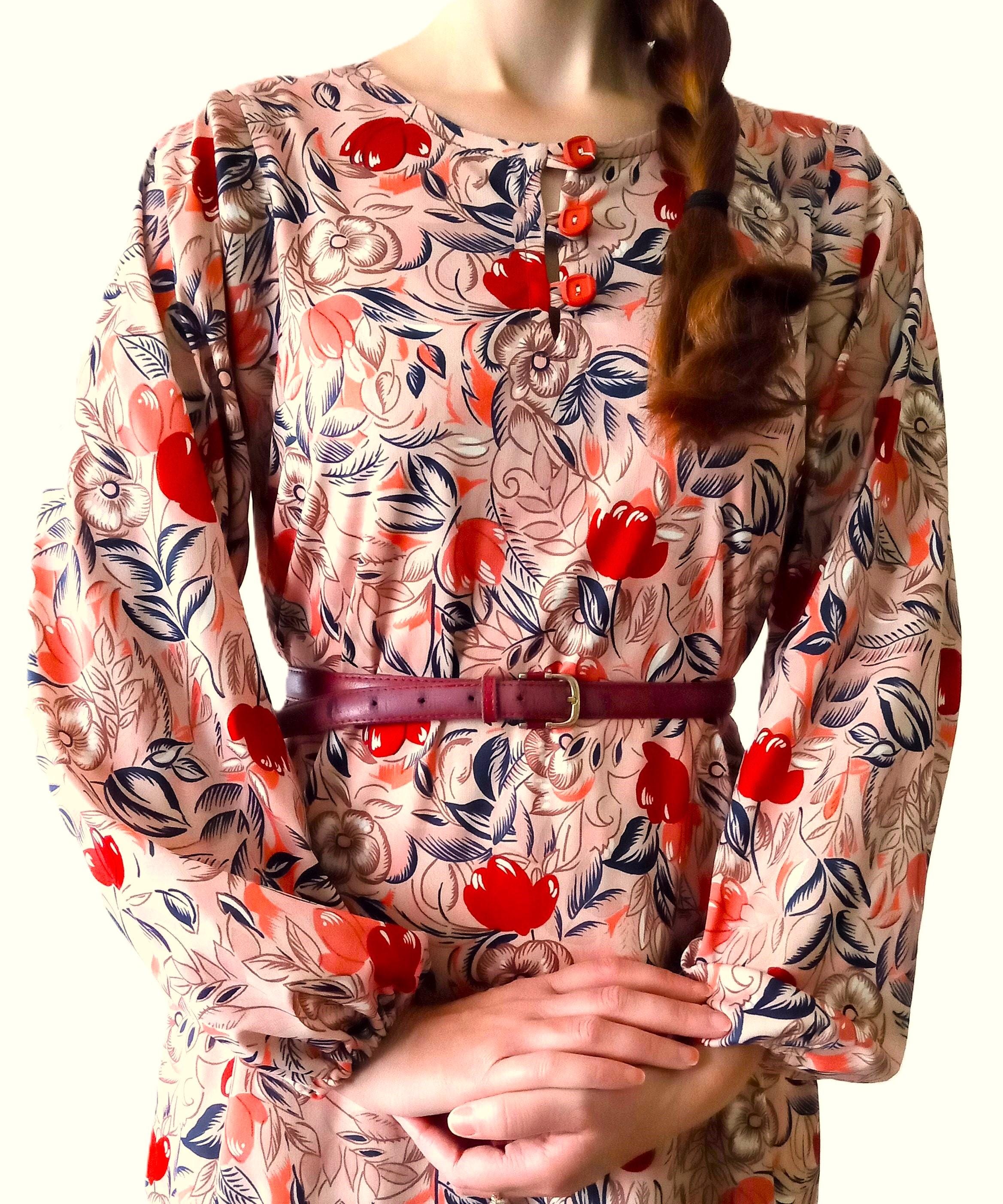 🇬🇧✨Dive into the charm of yesteryear with this lovely retro dress in autumn colors. Its leaves and flowers print blends with an elegant look that delicately evokes the spirit of the 1940s. Fluid, feminine and easy to wear, it envelops the silhouette with softness thanks to its long sleeves and comfortable fit. A unique piece, full of character, ideal for those who like to combine vintage style and timeless beauty.