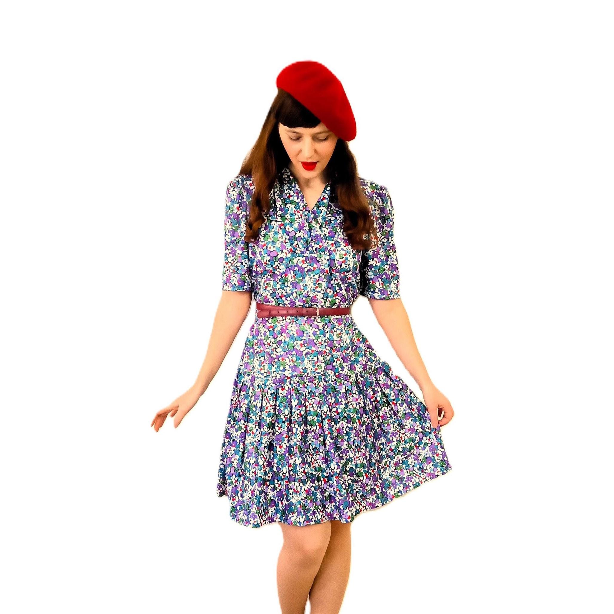 🇬🇧Bring a retro chic touch to your wardrobe with this vintage pleated dress with flower patterns, a perfect blend of the elegance of the 40s and the charm of the 80s. Its refined draped collar and decorative pearl buttons make it a unique piece, ideal for lovers of retro fashion and pin-up style.