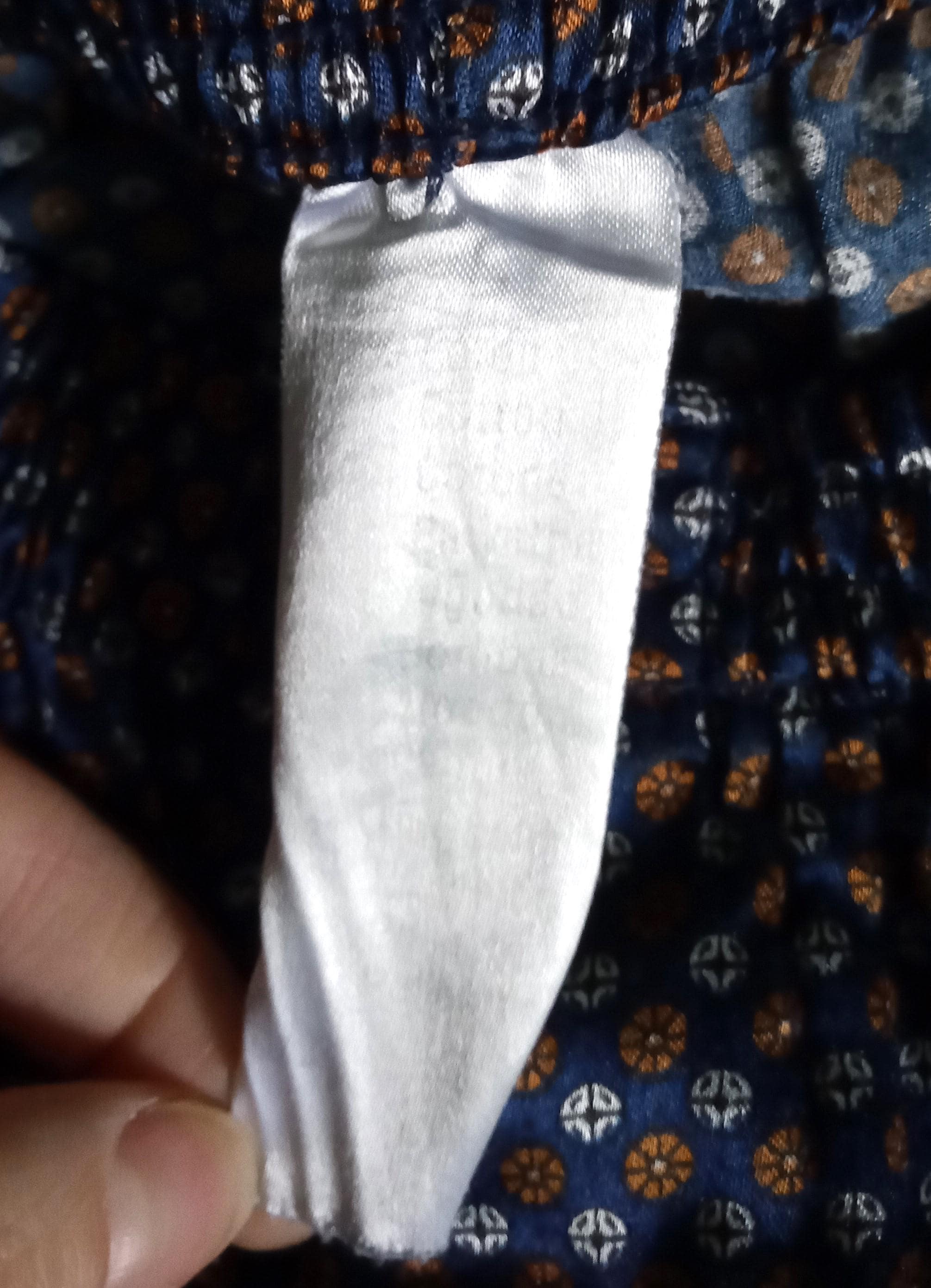 Material: Satin (silky and fluid appearance), 17% cotton, 83% polyester
