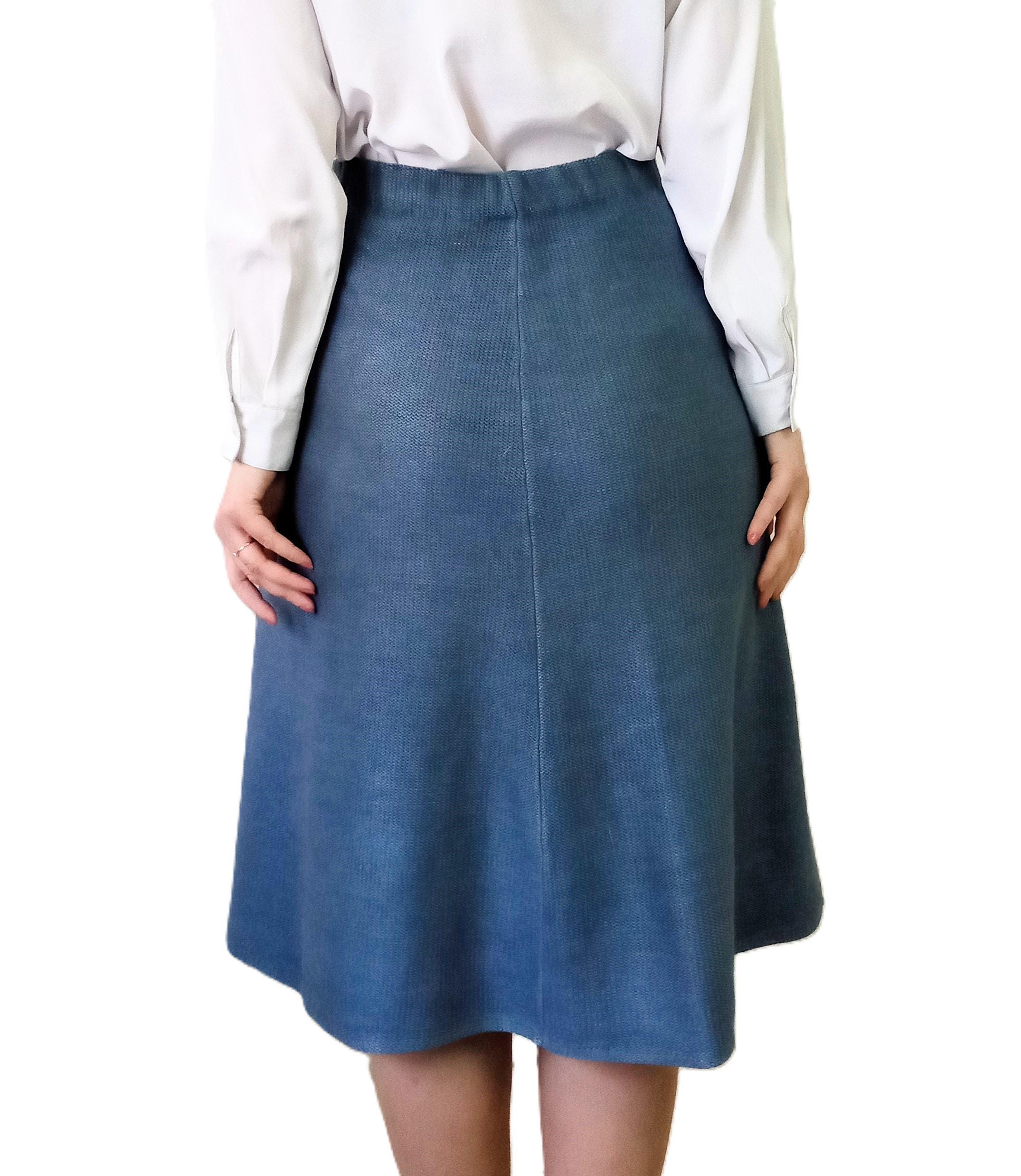 Son tombé fluide et structuré met en valeur la silhouette sans la contraindre, offrant une allure à la fois chic, sobre et rétro. Cette jupe s’intègre parfaitement dans une garde-robe vintage ou slow fashion, portée aussi bien avec un pull ajusté qu’un chemisier rentré.
