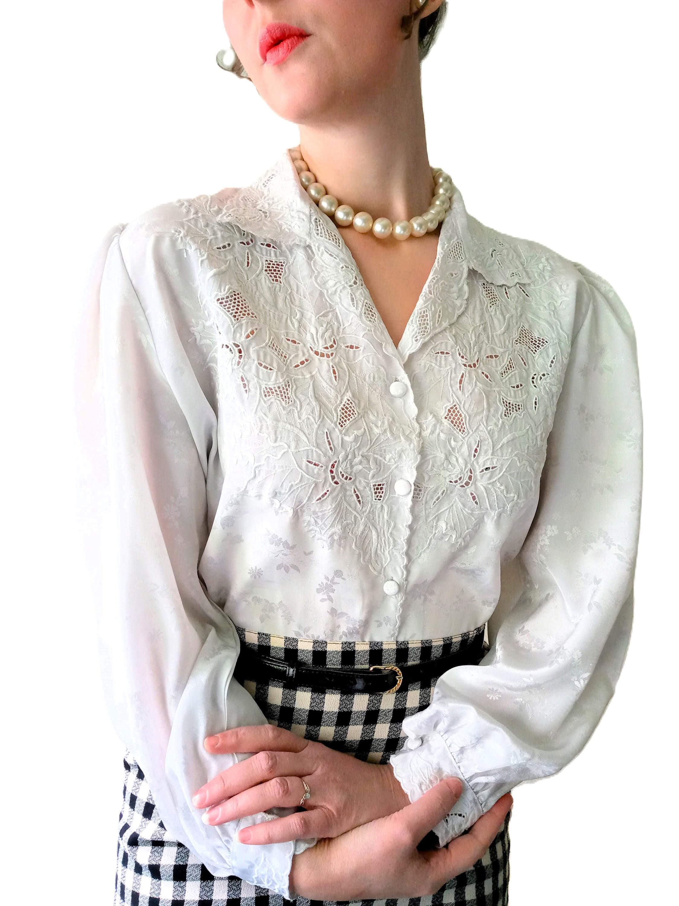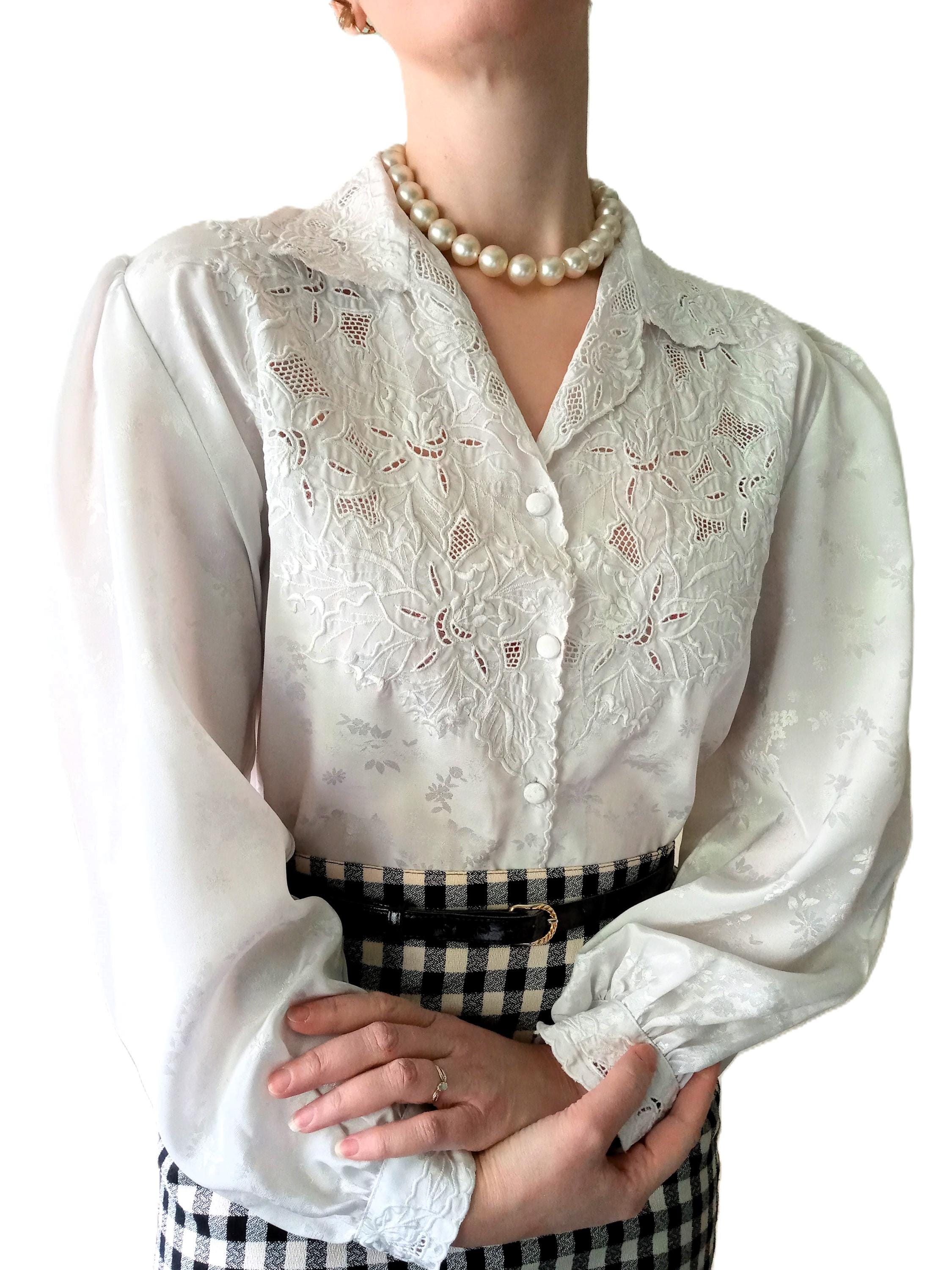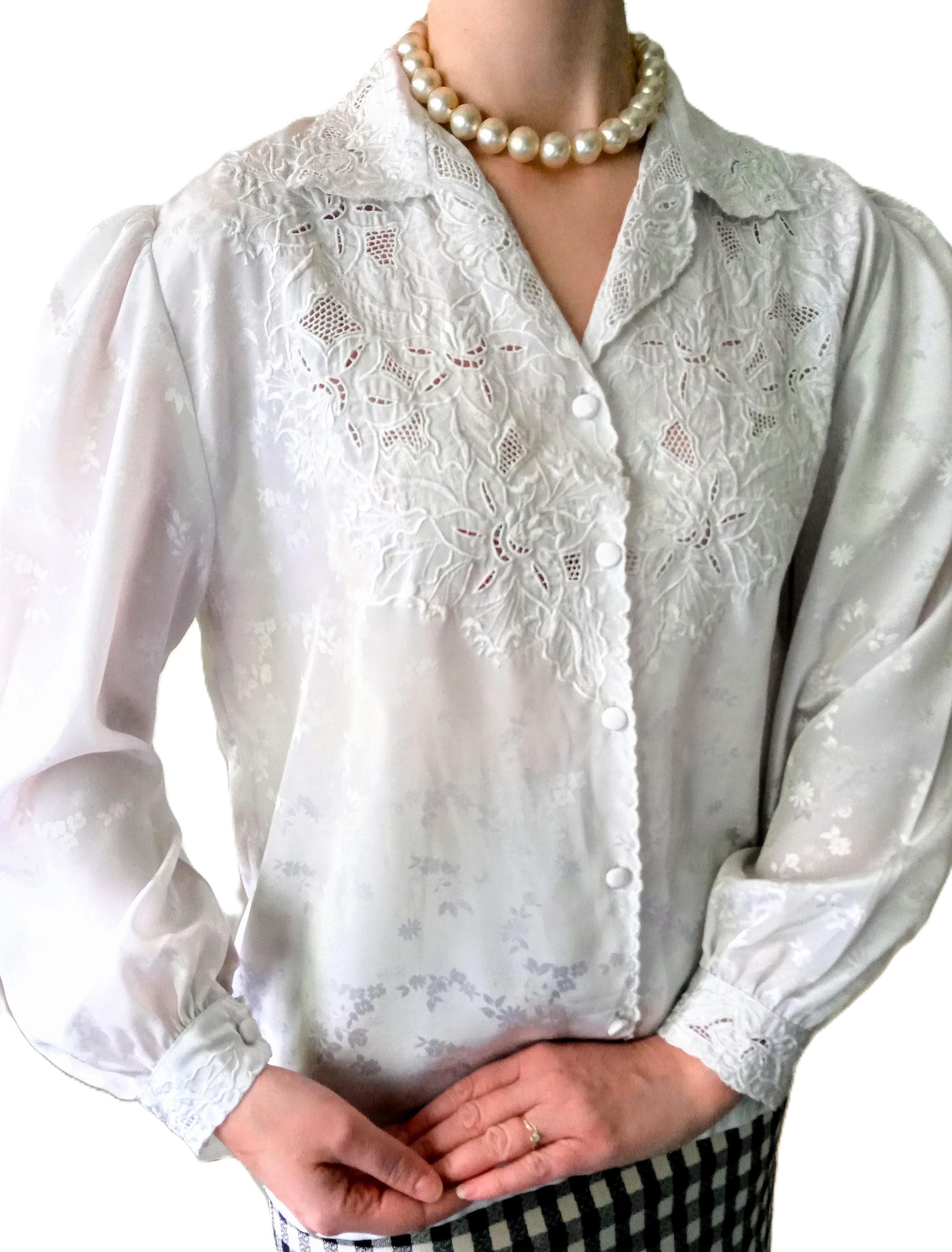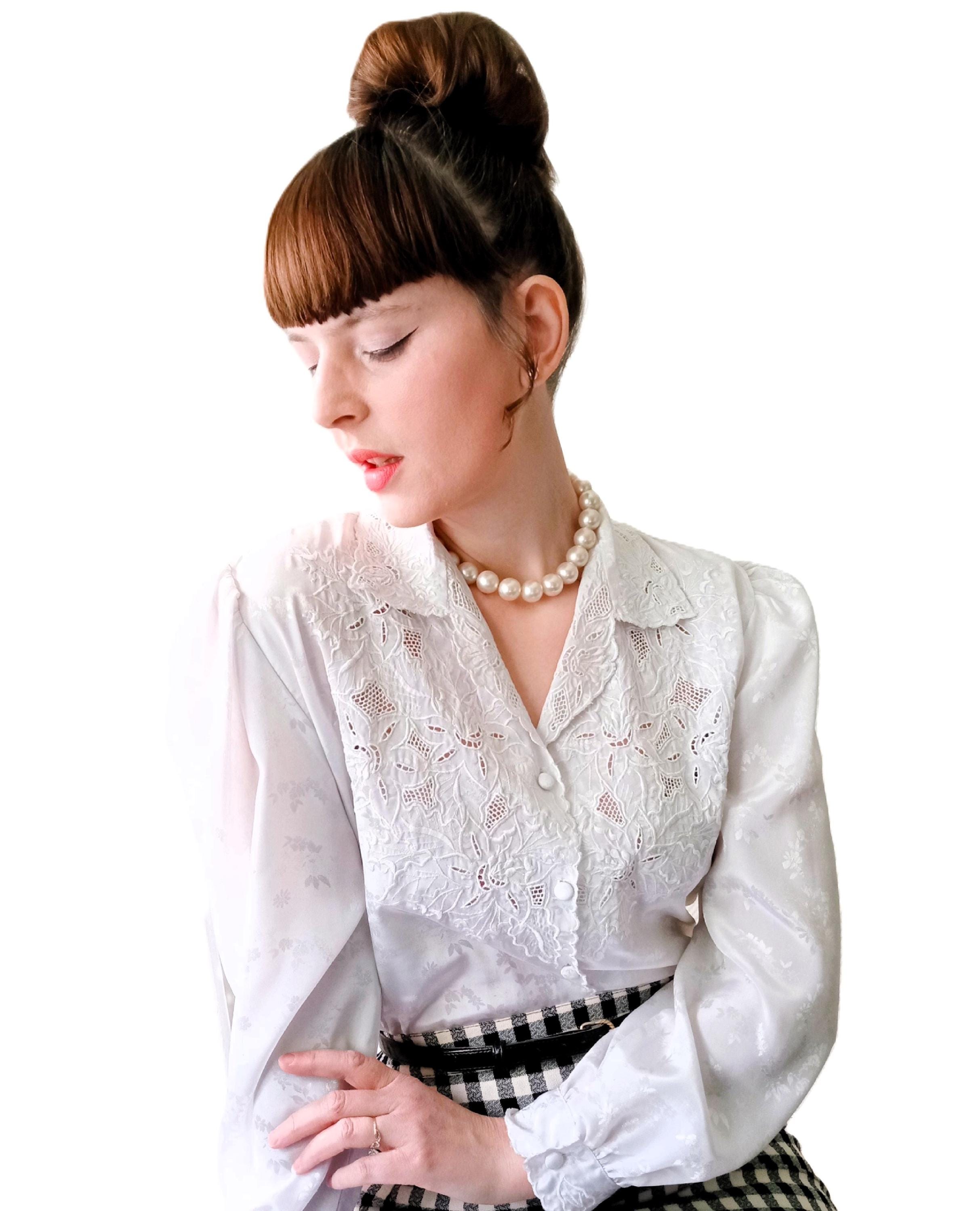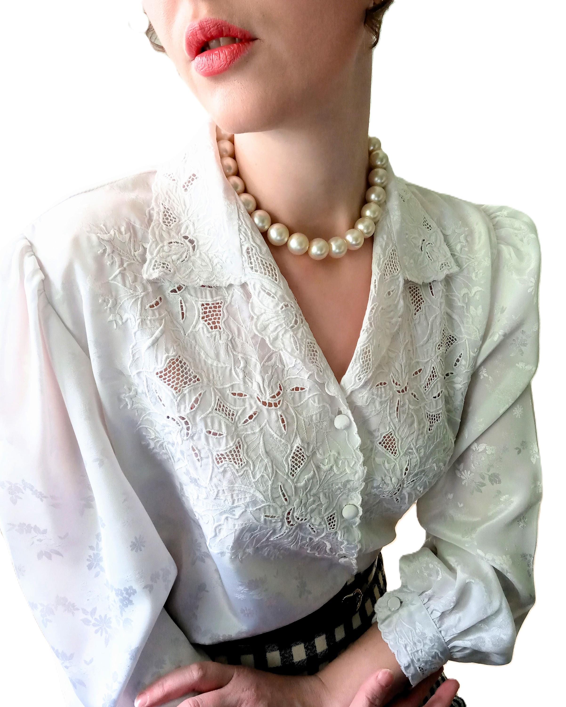 Ce chemisier vintage authentique des années 80 incarne à merveille l’élégance douce et féminine de l’époque.