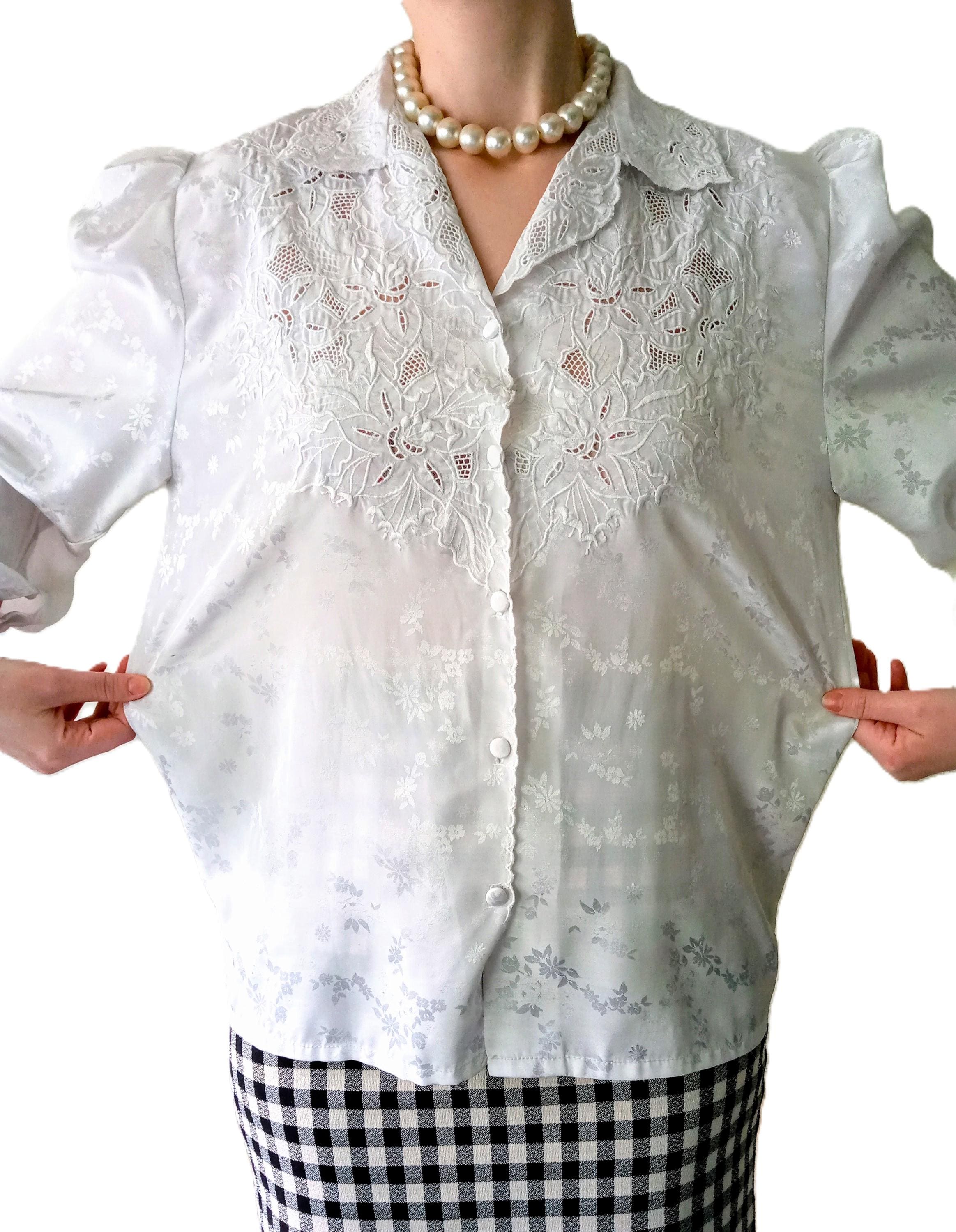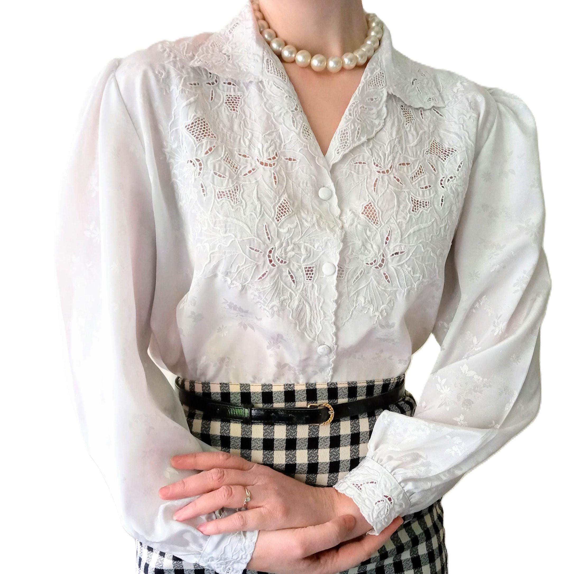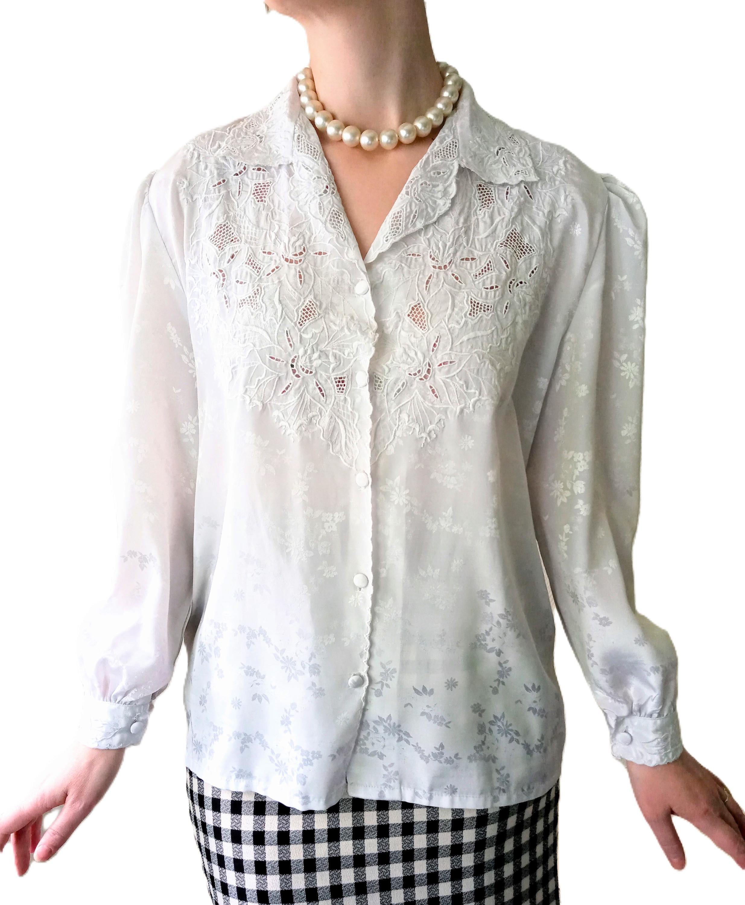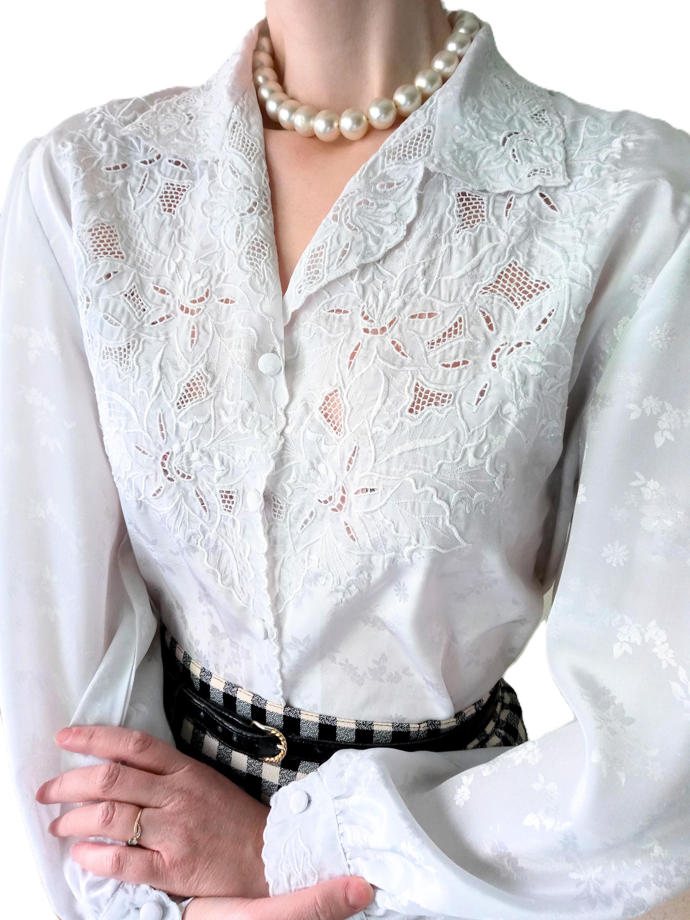 🇬🇧 This authentic vintage blouse from the 80s wonderfully embodies the soft and feminine elegance of the time.