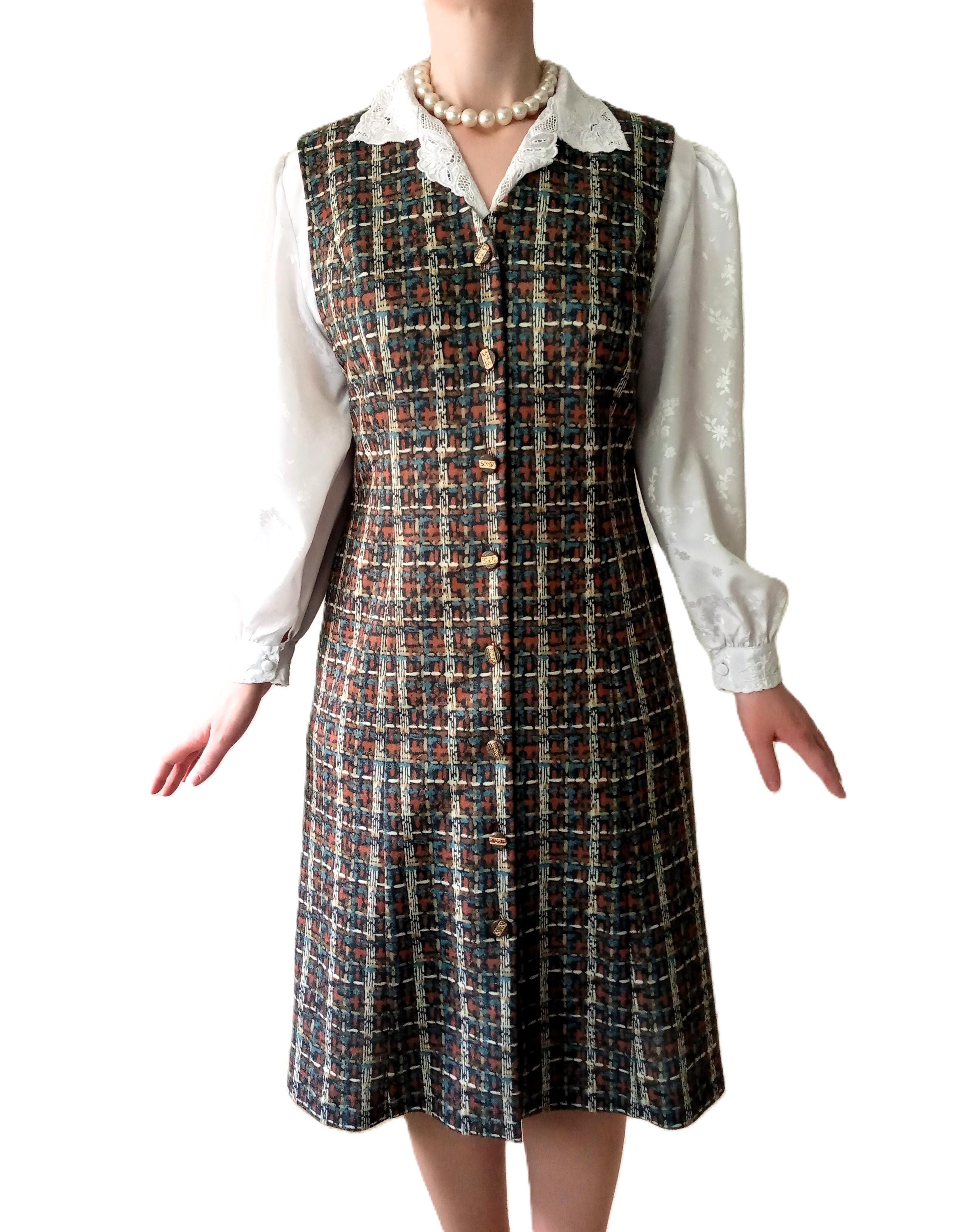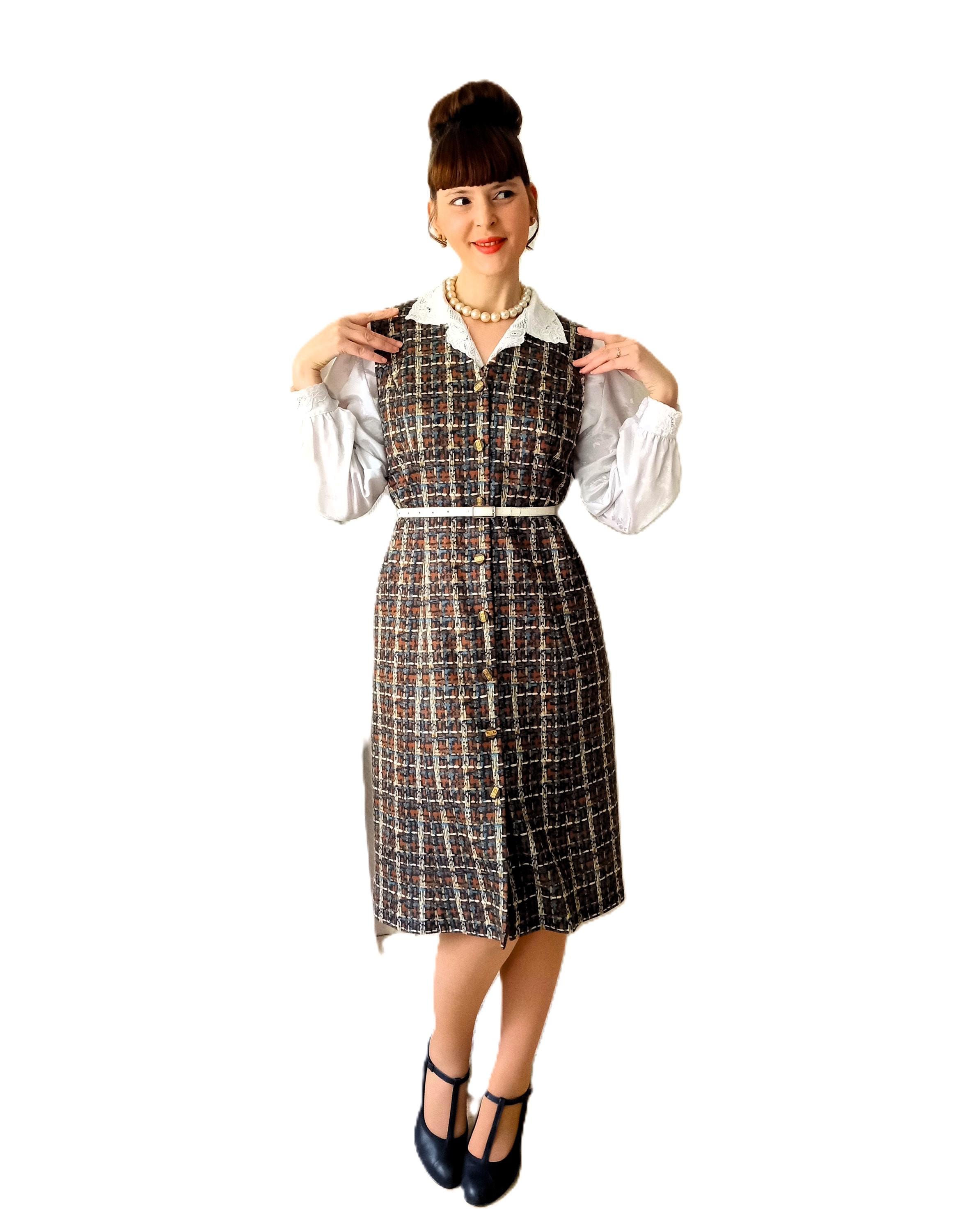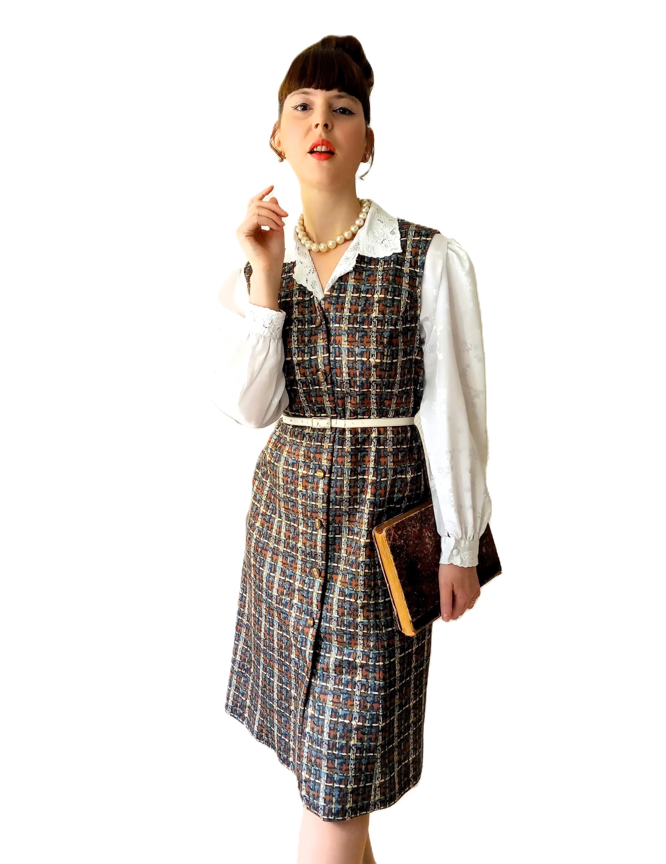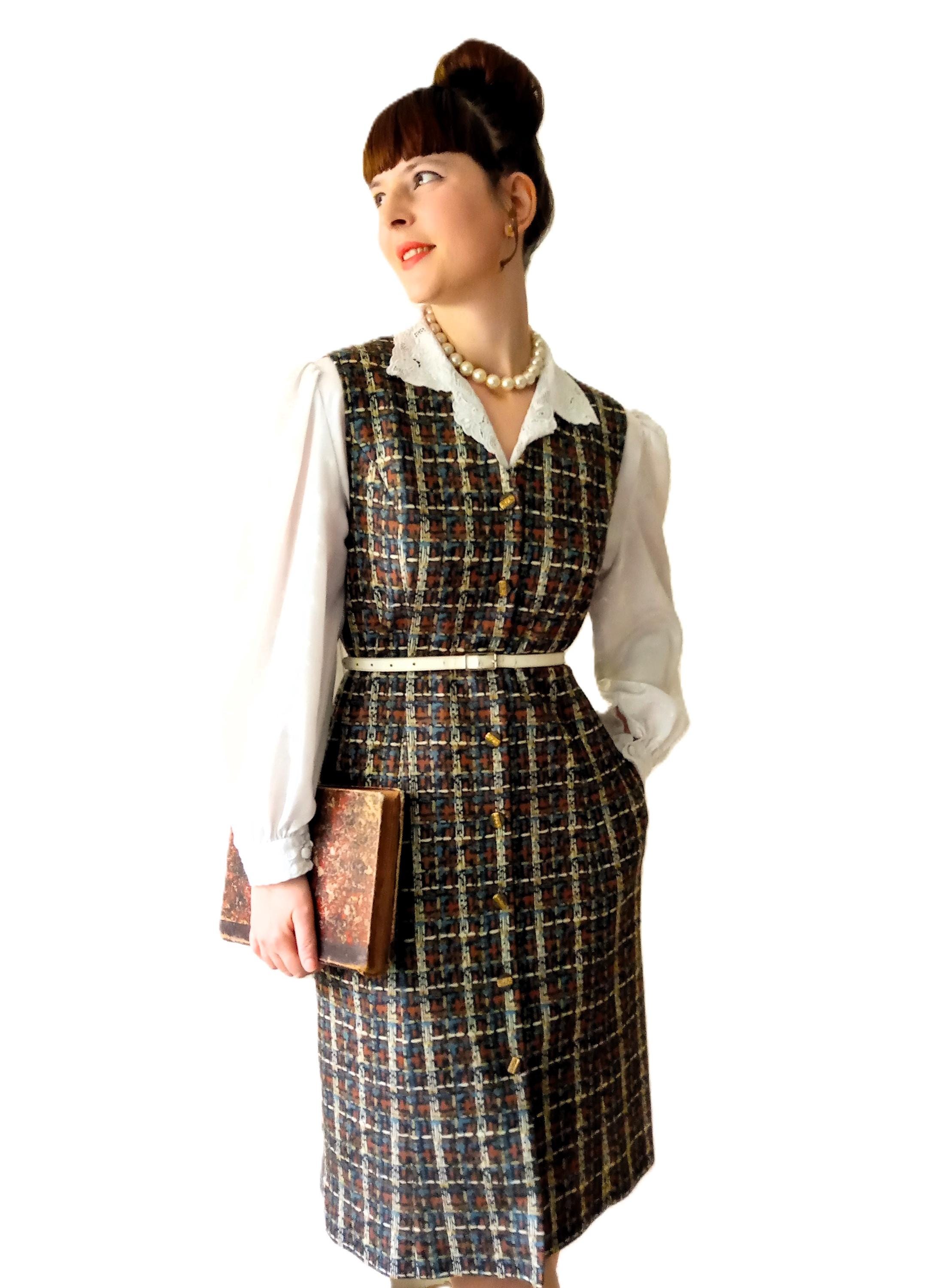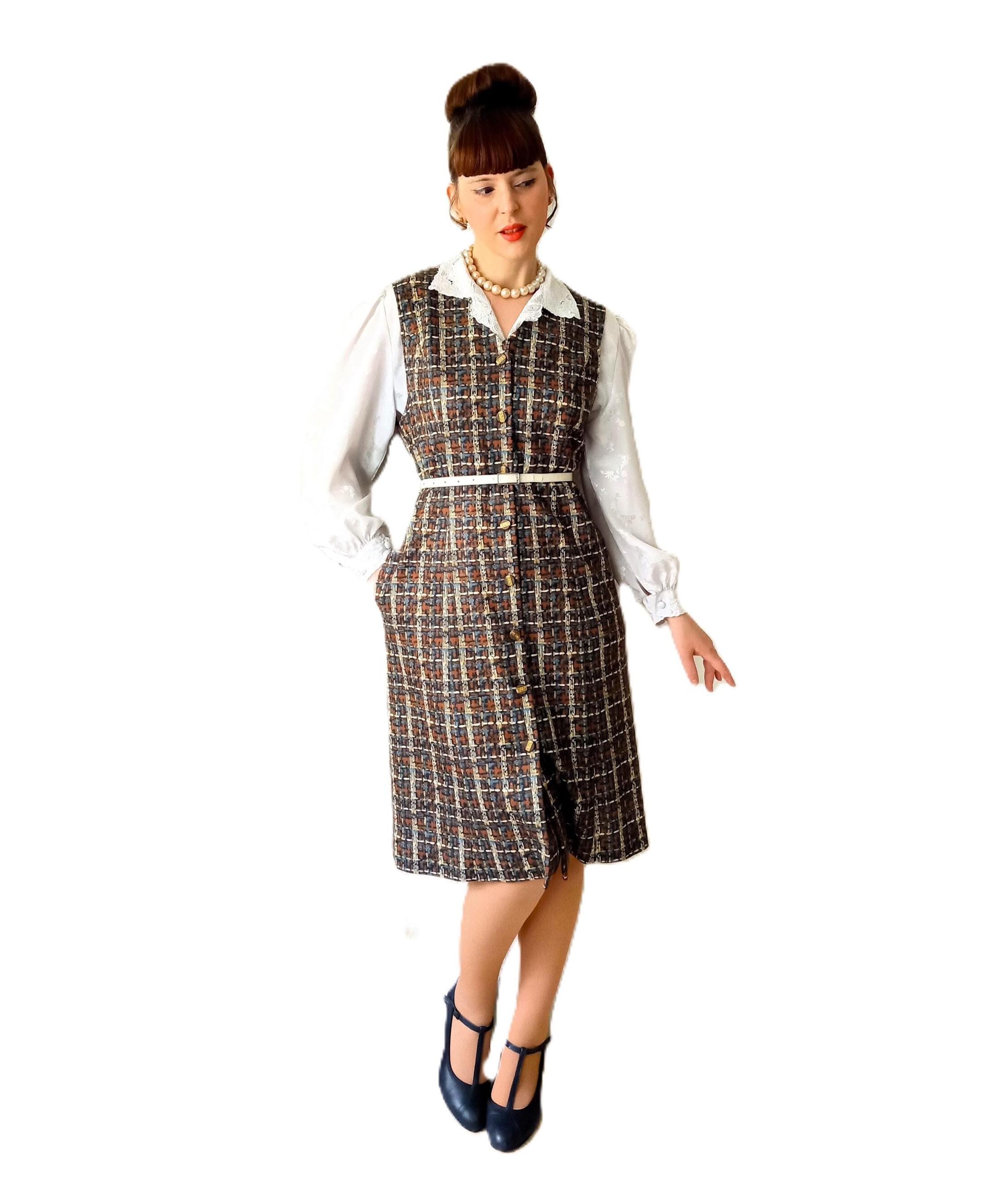 🇬🇧 Bring a retro and elegant touch to your wardrobe with this vintage sleeveless plaid dress. Inspired by the 50s and revisited in the 80s style, it is perfect for lovers of retro fashion, pin-up and rockabilly.