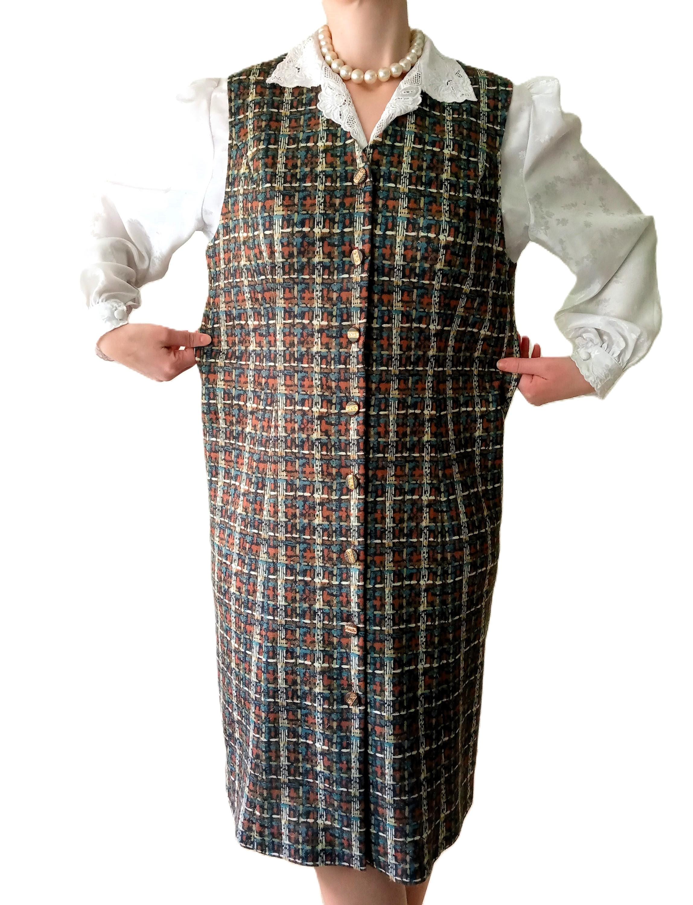 ▪️Coupe : Coupe midi sans manche, parait en toute saison ou à superposer avec un chemisier, sous-pull ou gilet vintage.