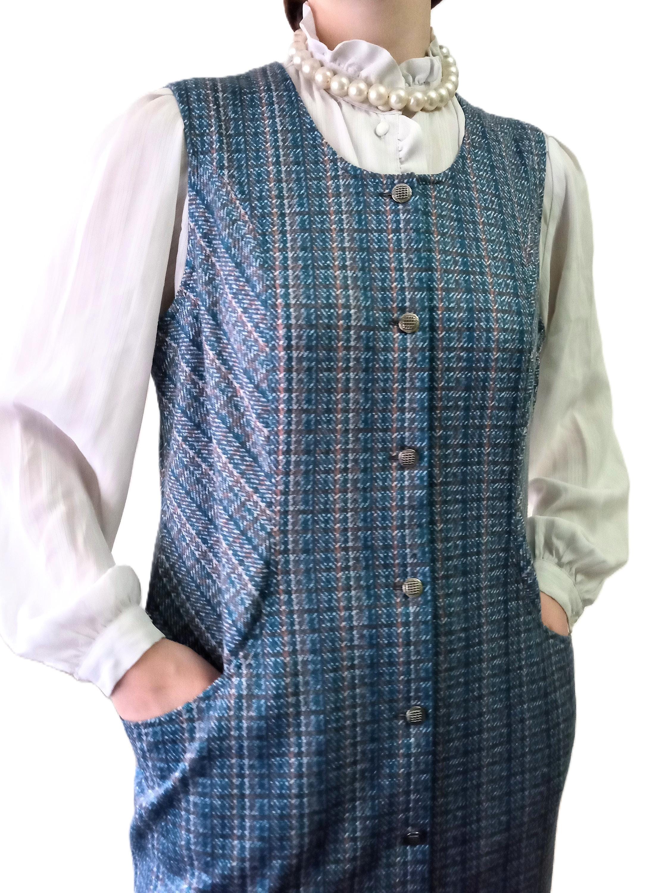 ▪️Cut: Sleeveless midi cut, perfect in any season or to layer with a blouse, under-sweater or vintage vest.