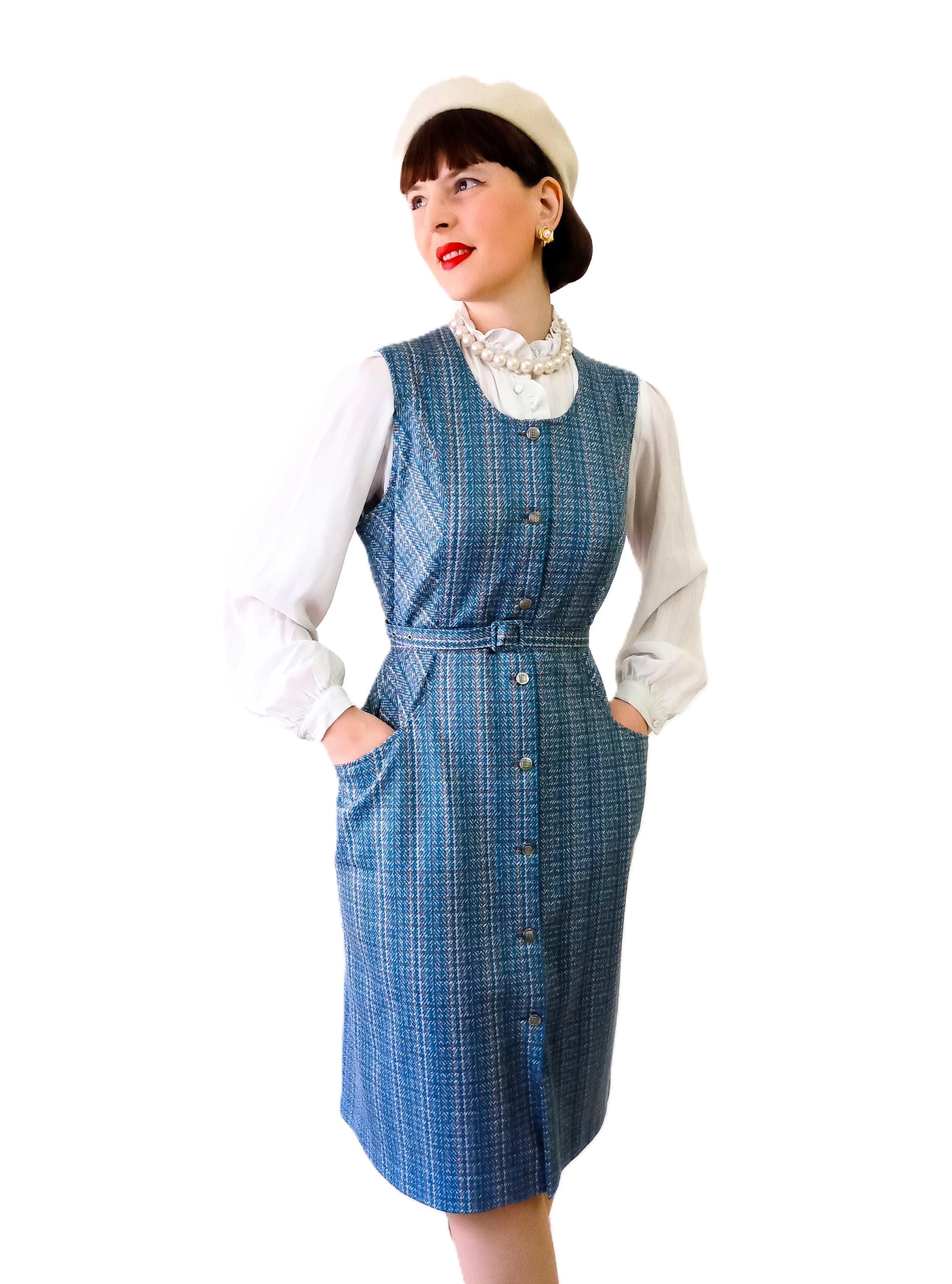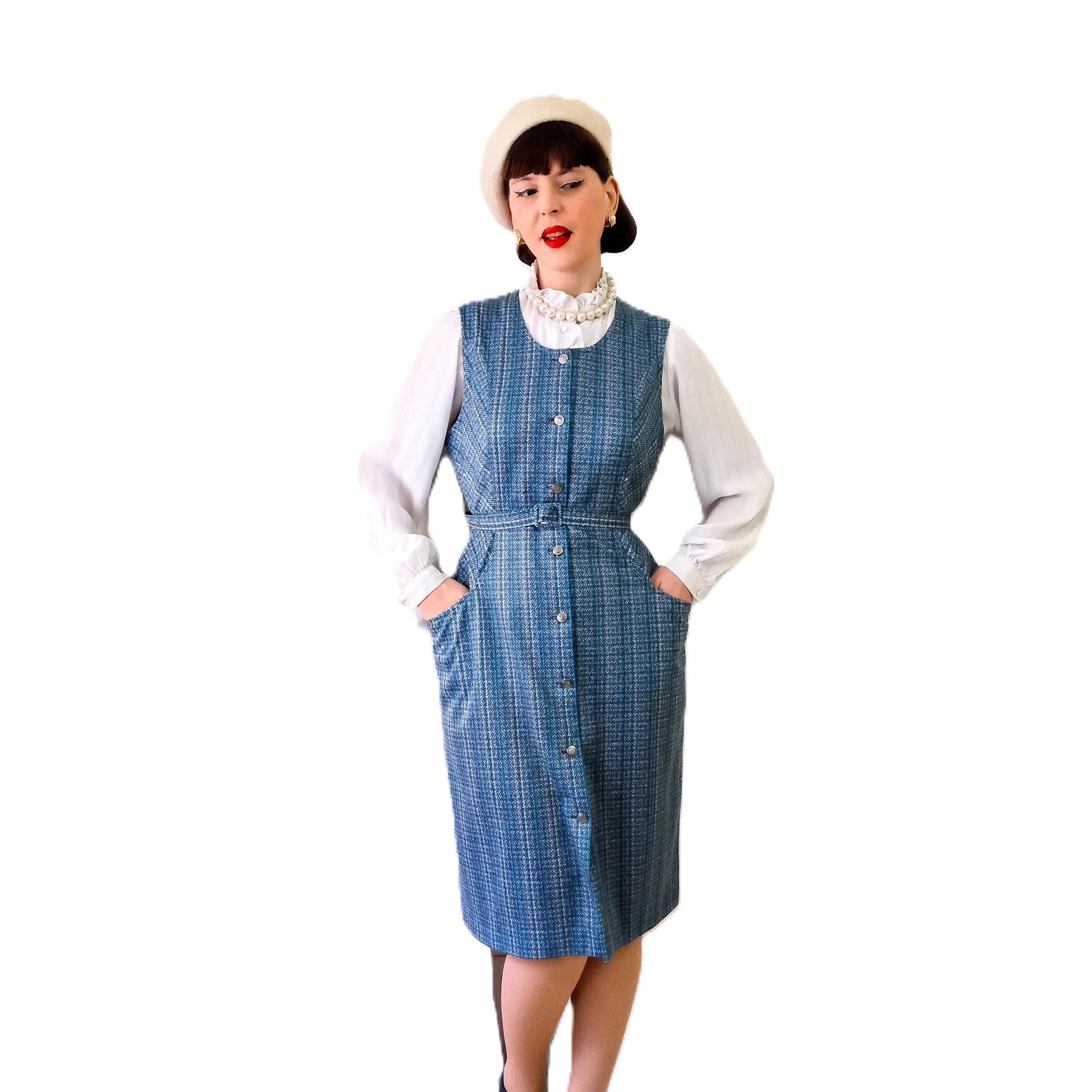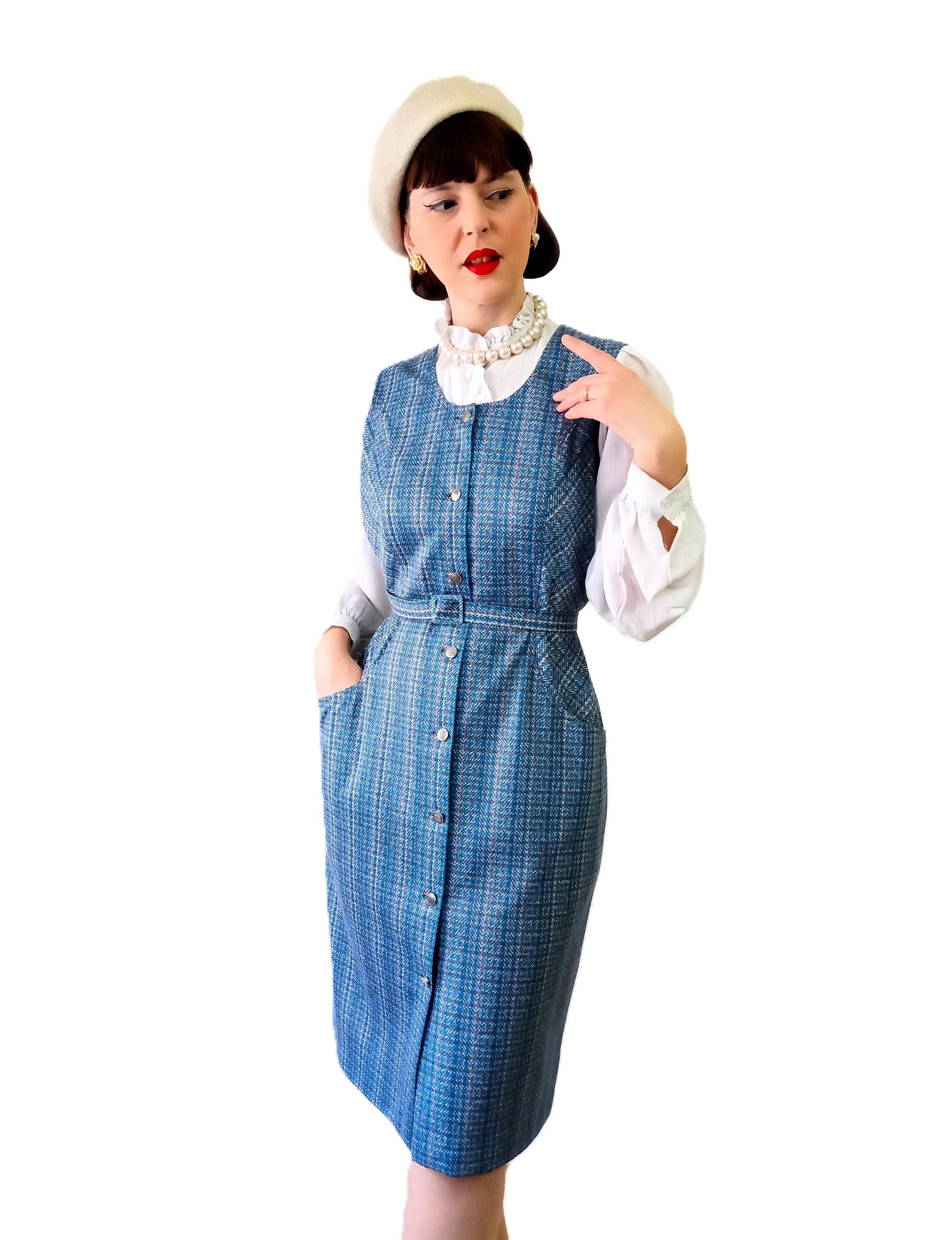🇬🇧 Bring a retro and elegant touch to your wardrobe with this blue checked sleeveless vintage dress. Inspired by the 50s and revisited in the 80s style, it is perfect for lovers of retro fashion, pin-up and rockabilly.