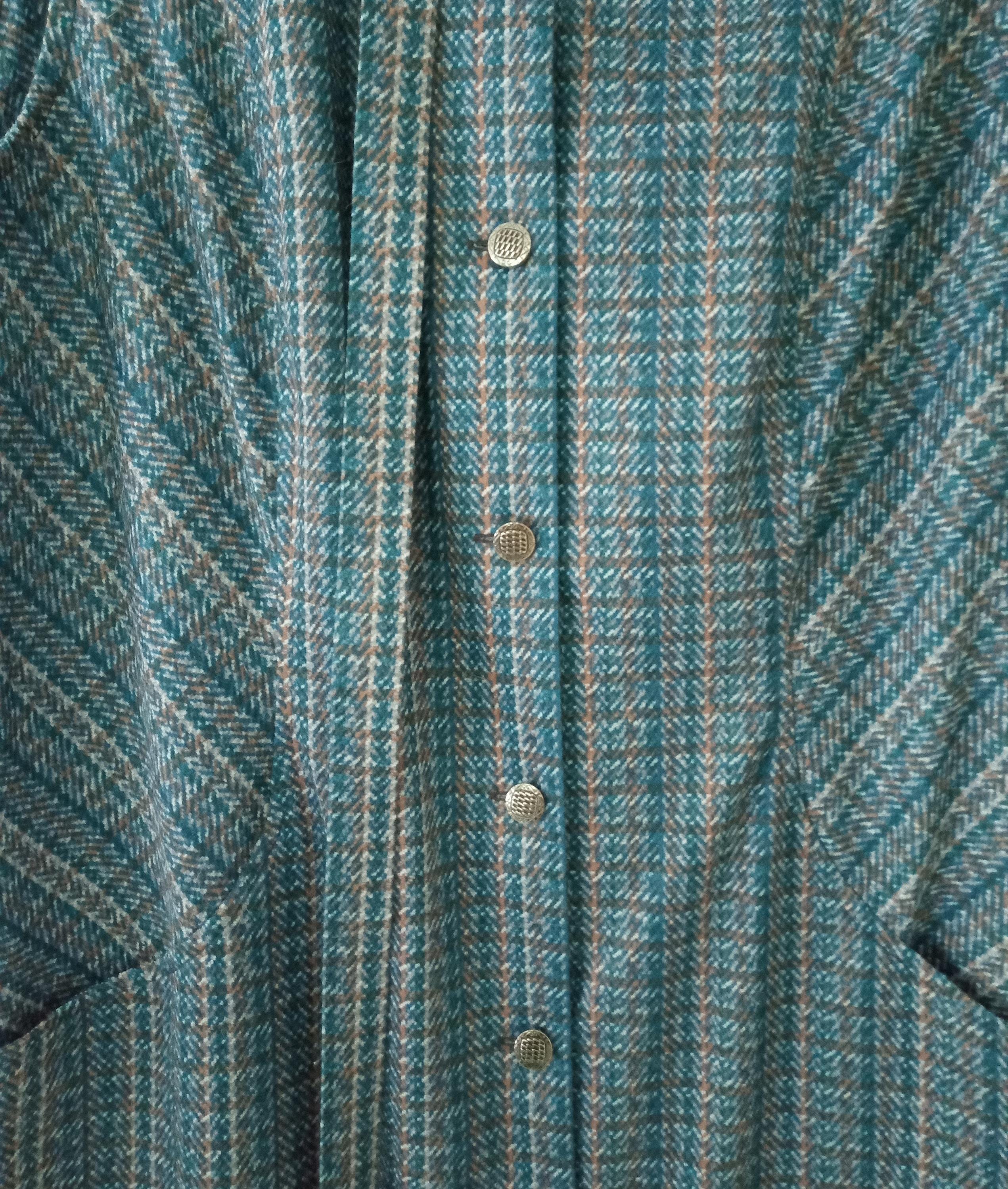 ▪️ Motifs : Motif à carreaux dans des tons bleu, vert, beige et noisette