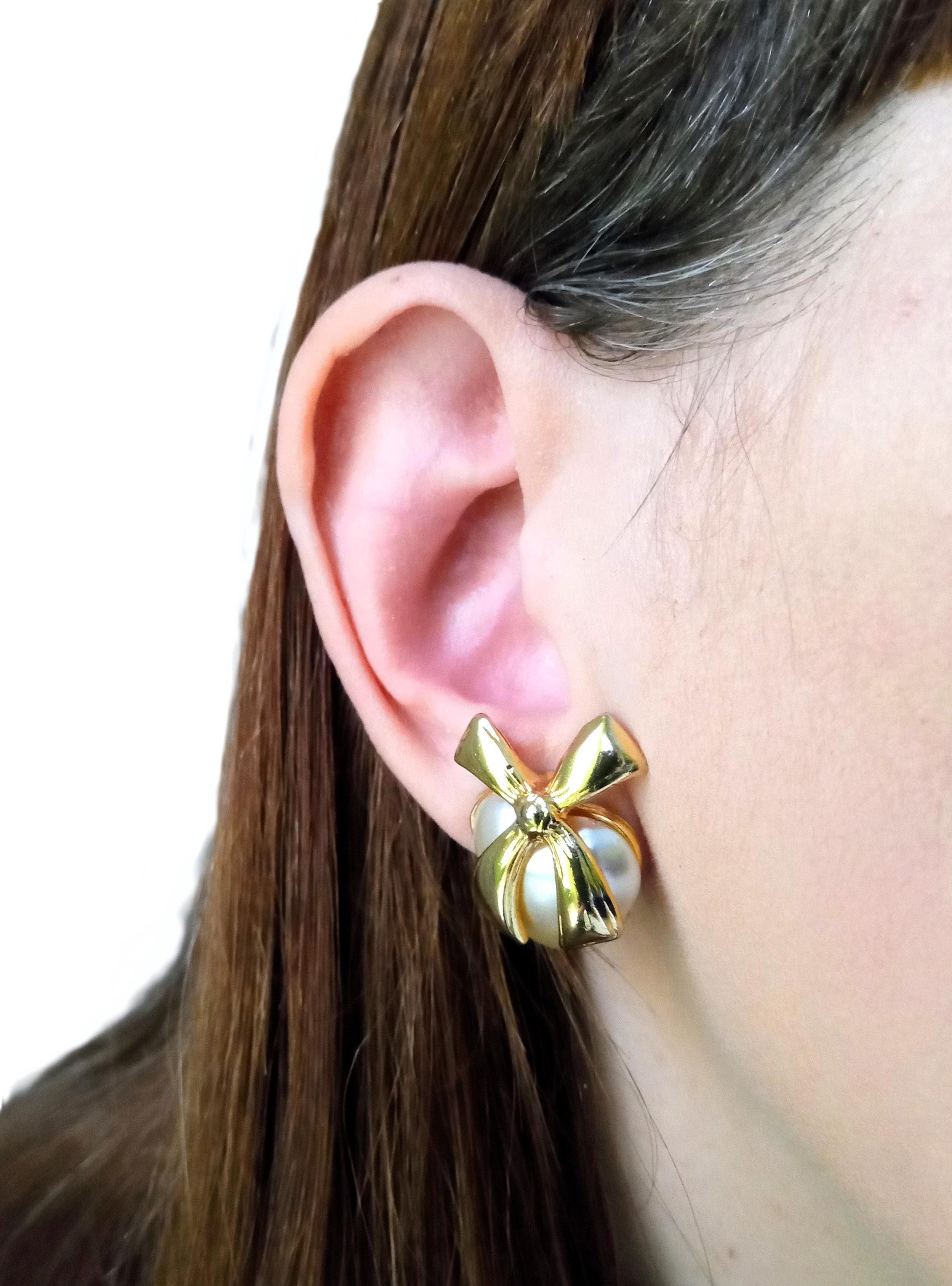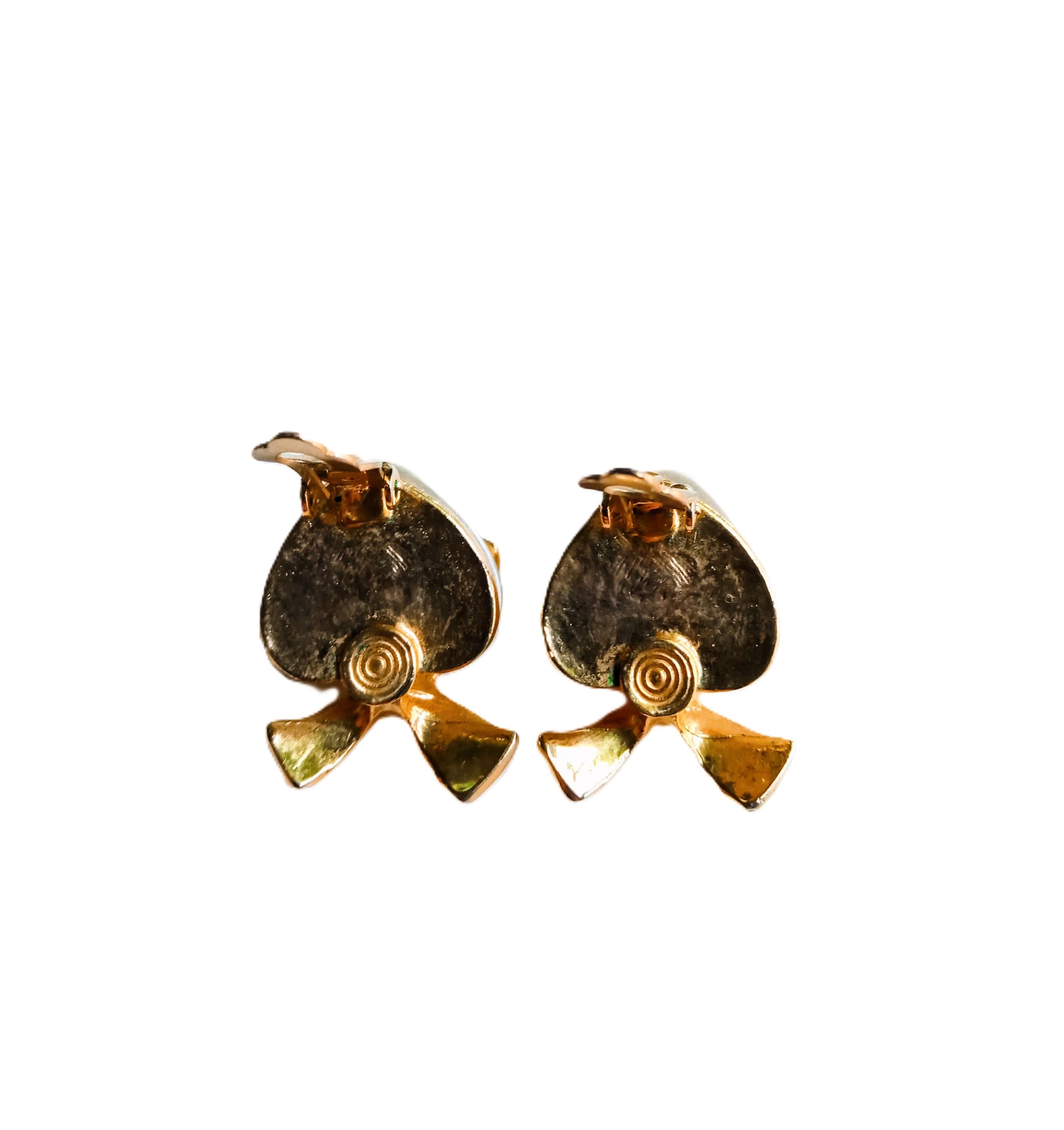 🇬🇧Fall for these authentic vintage clip earrings from the 80s, with a romantic and sophisticated design. Their heart shape, delicately highlighted by a pearl pearl and a golden bow, perfectly embodies the feminine elegance and glamour of eighties fashion.