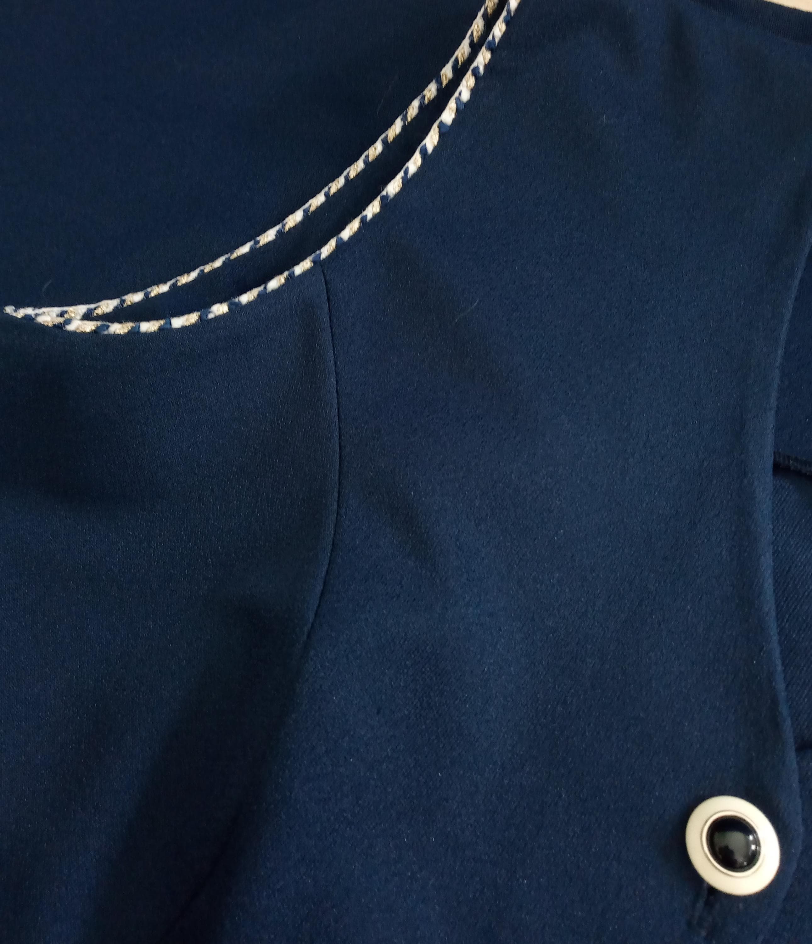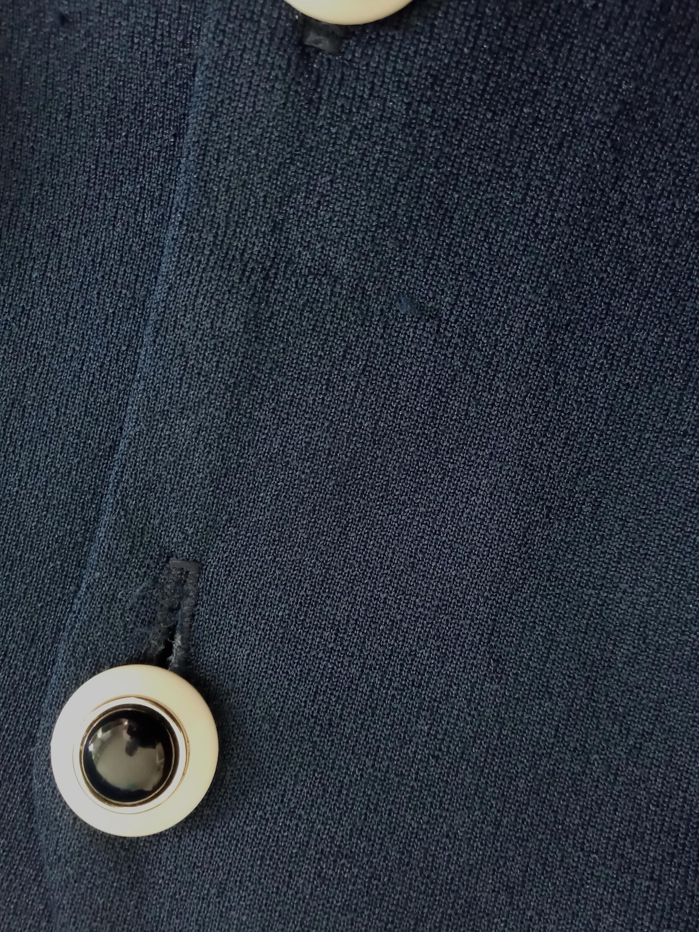 Cette pièce est l'alliée idéale pour un look rétro élégant et confortable. Sa couleur bleu marine profonde et ses détails contrastants en font une pépite intemporelle.