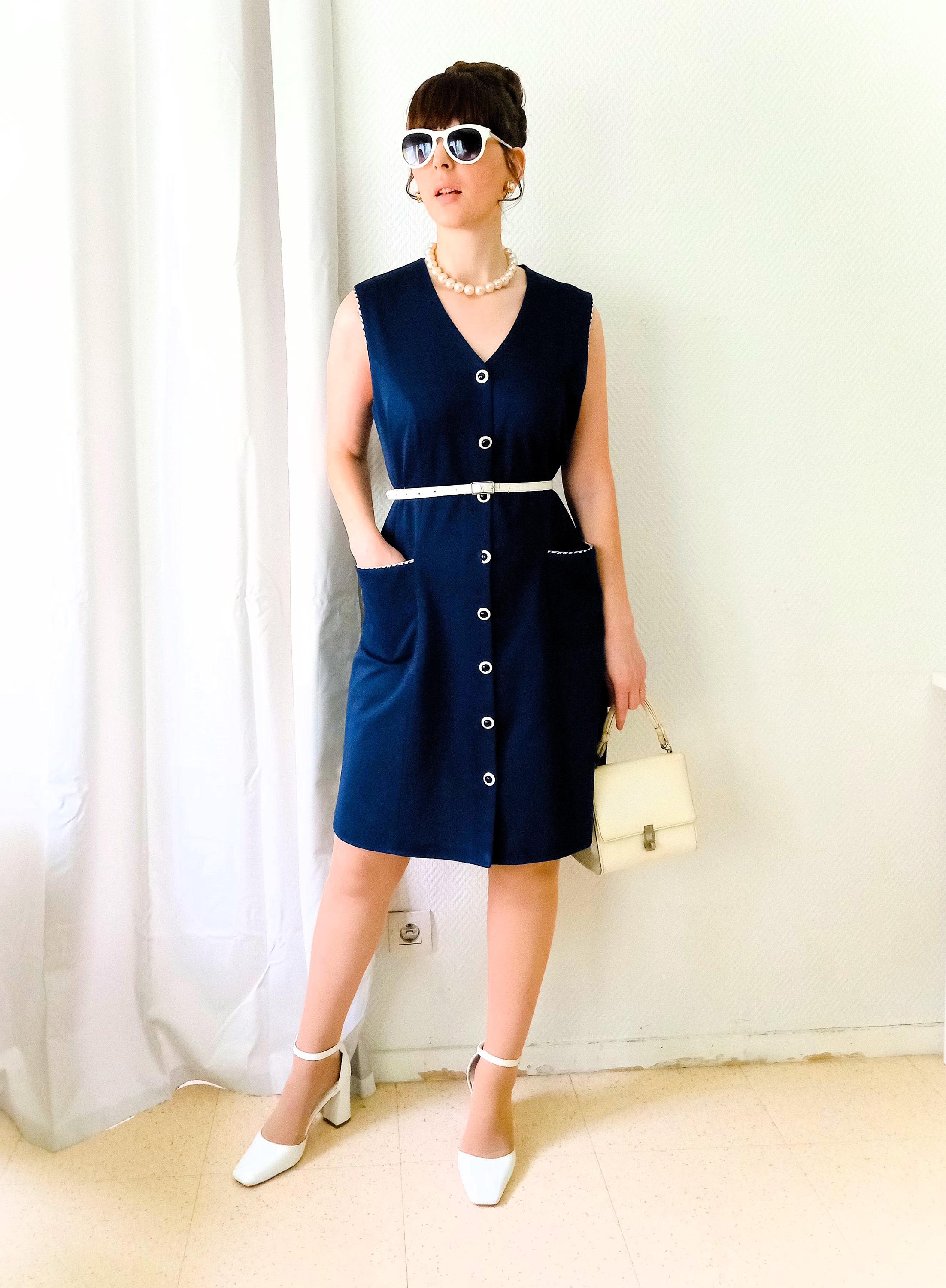 Although manufactured in the 80s, this dress borrows all the iconic codes of 1965-1968 "Mod" fashion: