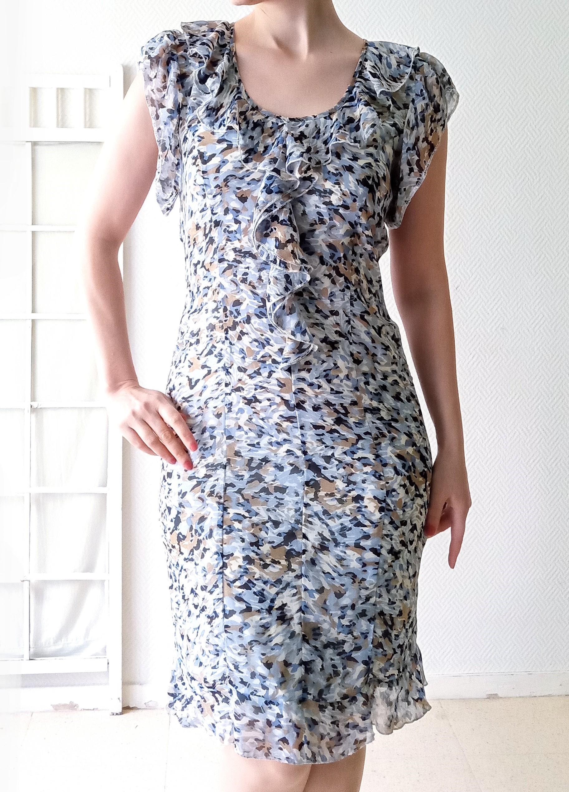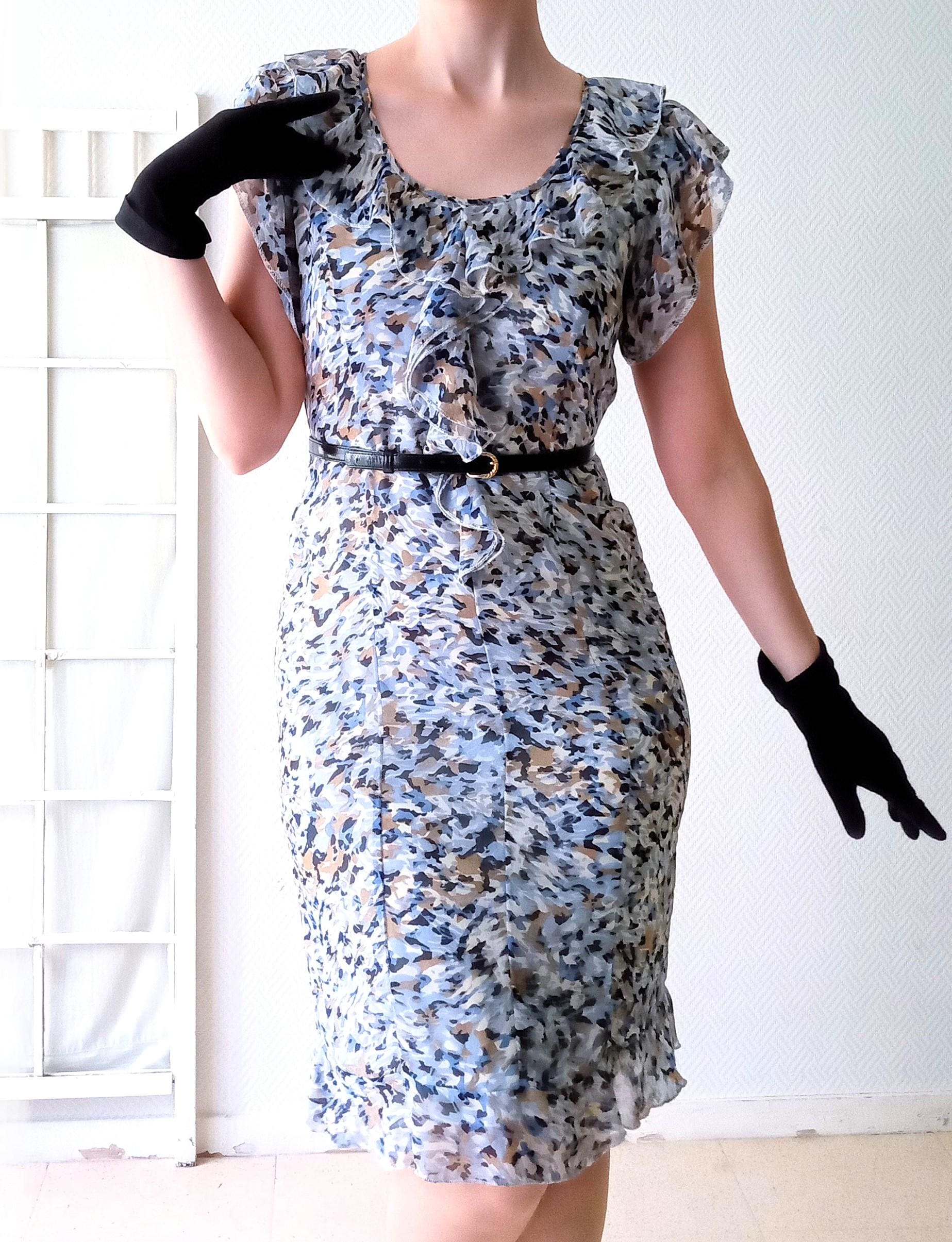 ◾L'Imprimé Graphique : Si le motif est moderne, sa répétition et ses nuances rappellent les imprimés abstraits que l'on retrouvait sur les robes "Day Dress" ou de cérémonie du milieu du siècle.