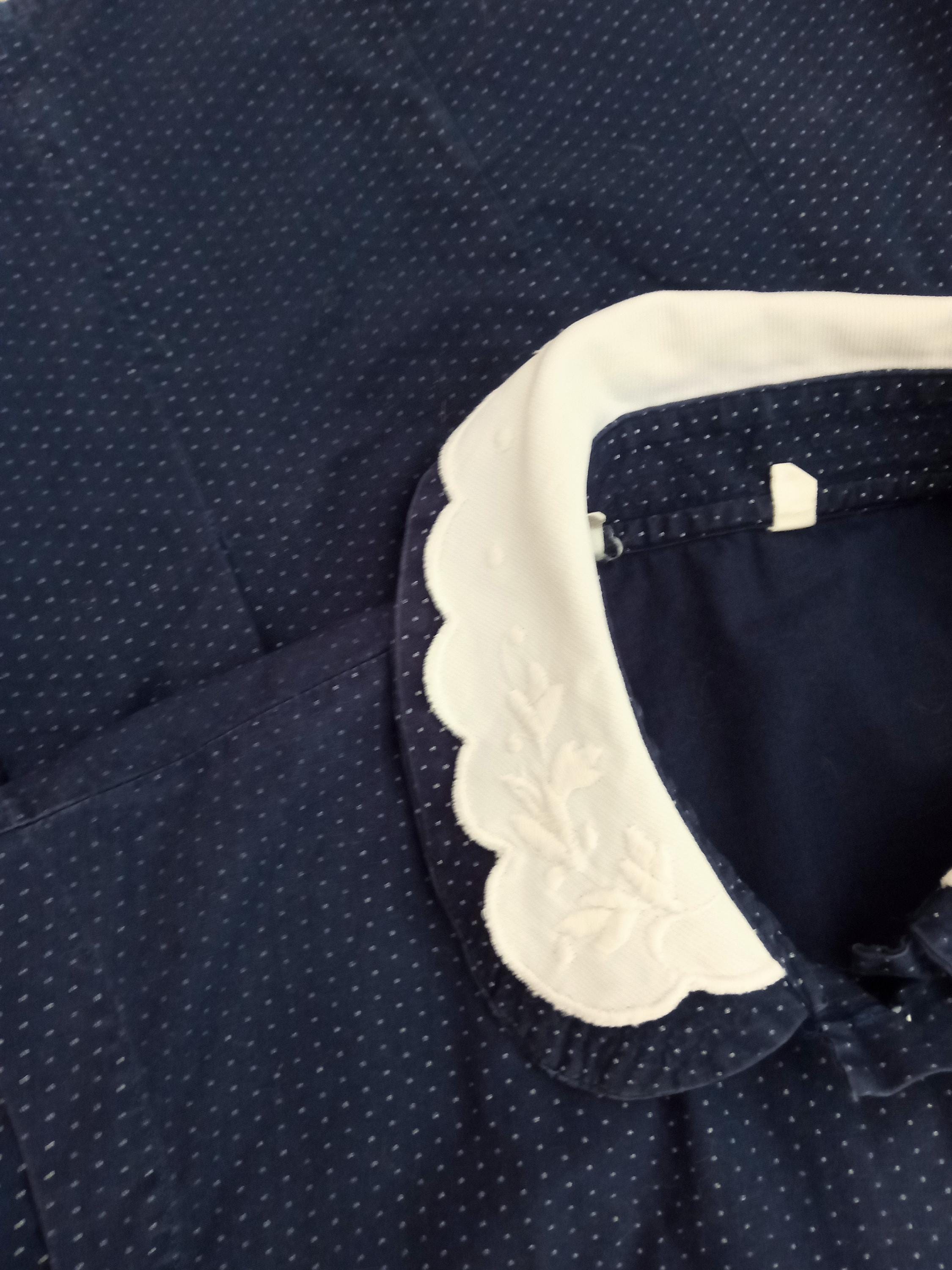 ◾ The Double Collar: A unique design combining a collar in the blouse's fabric topped with a white embroidered and scalloped collar.