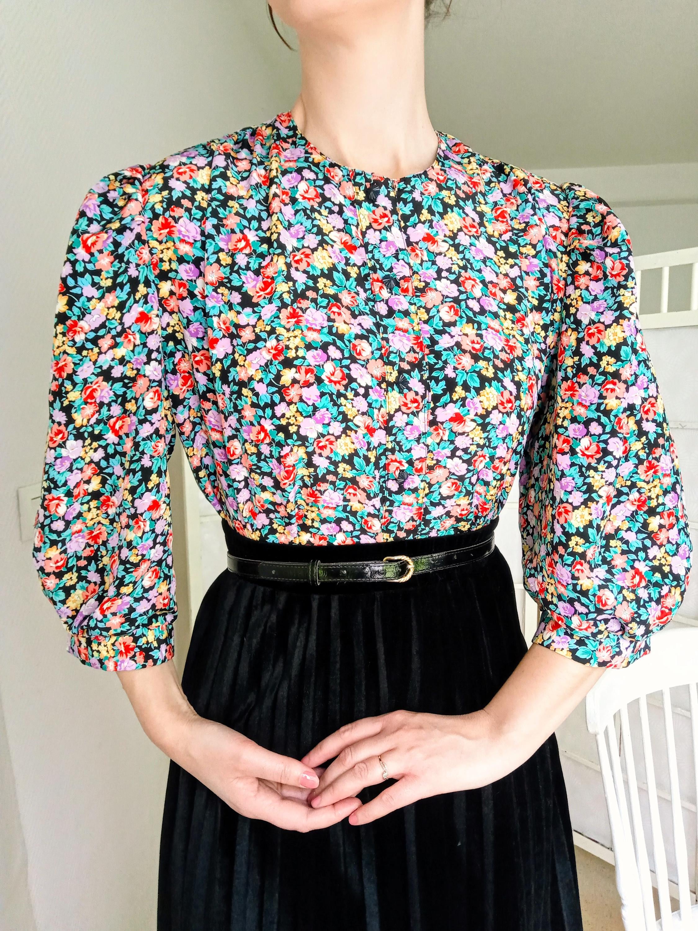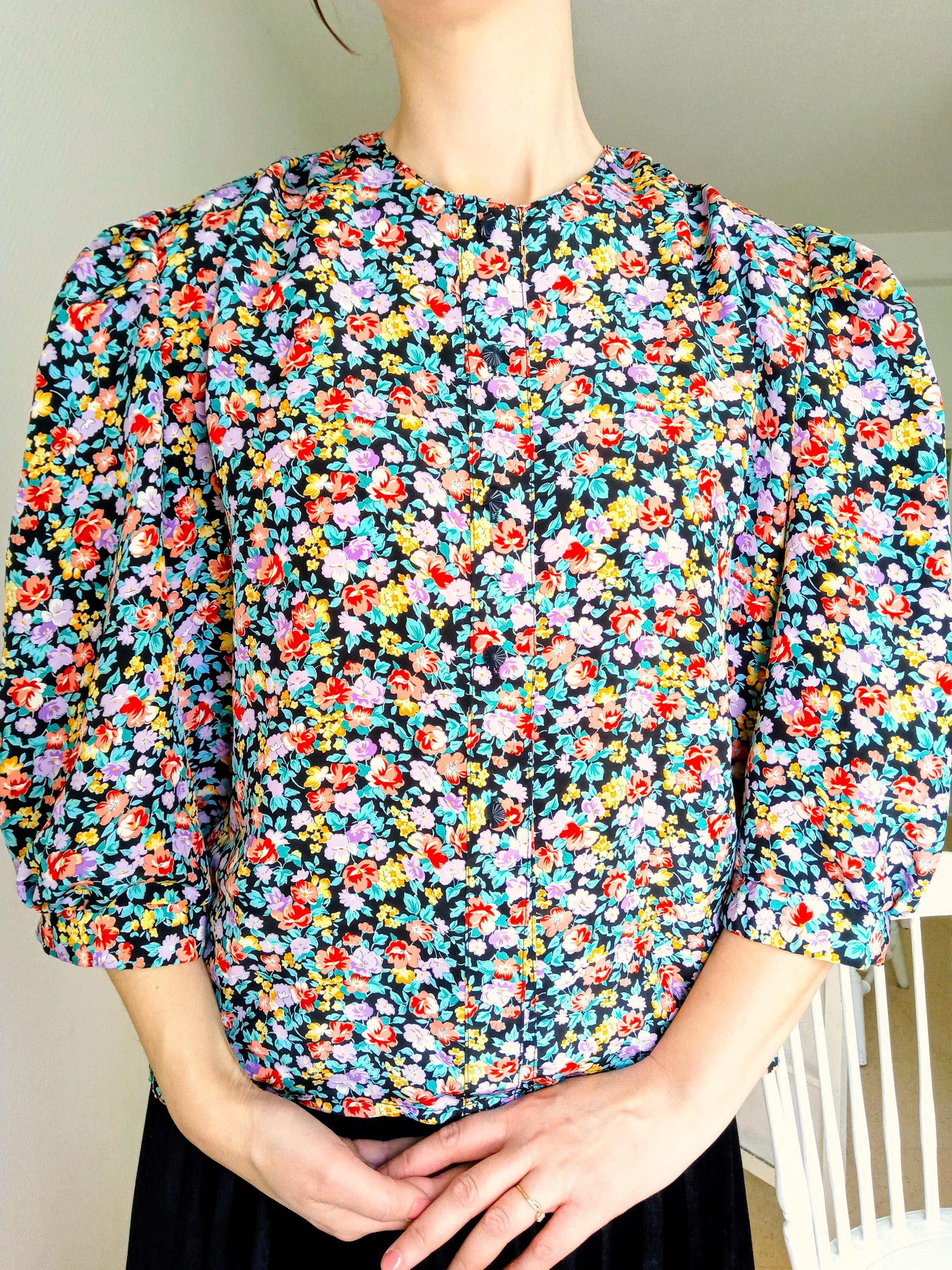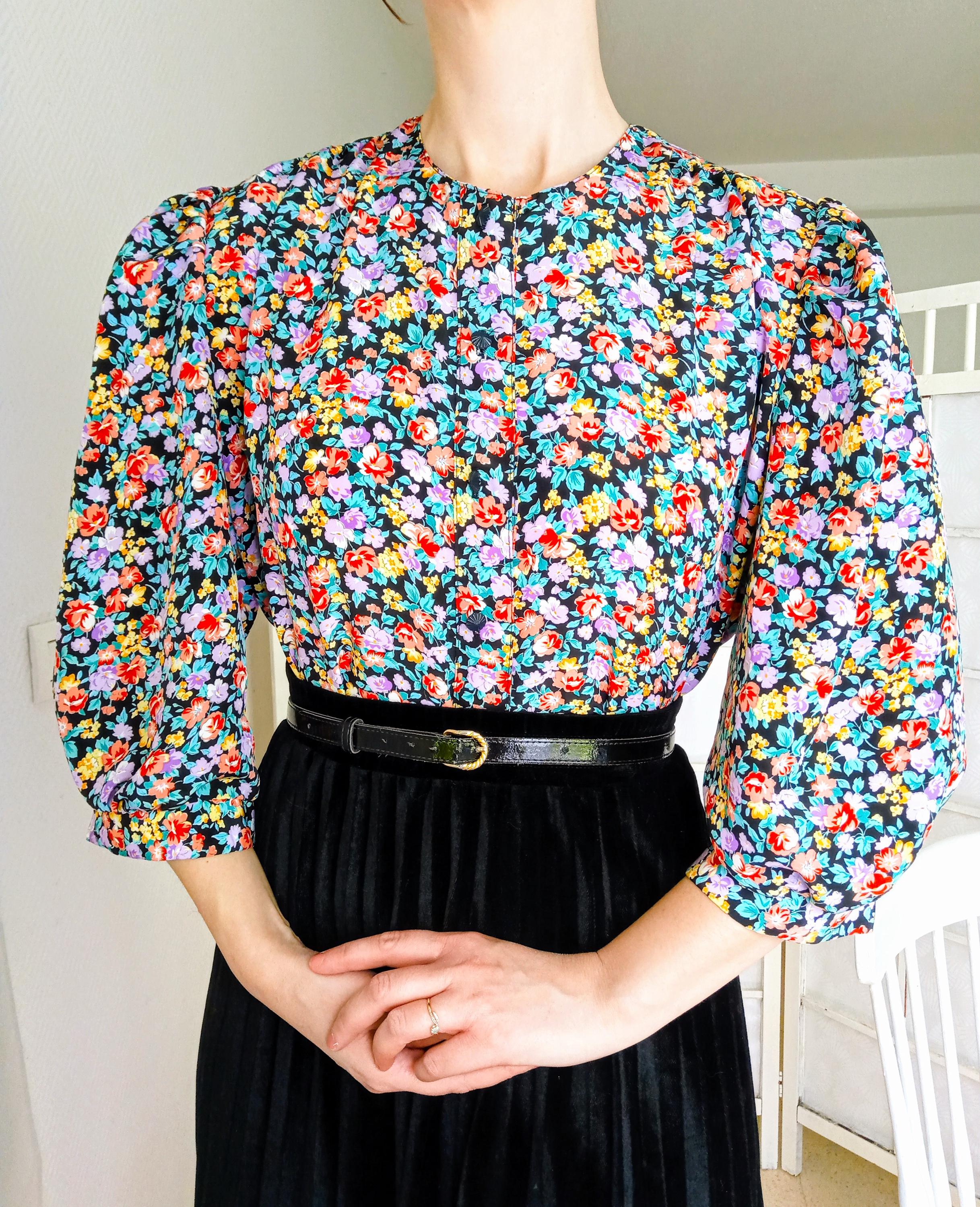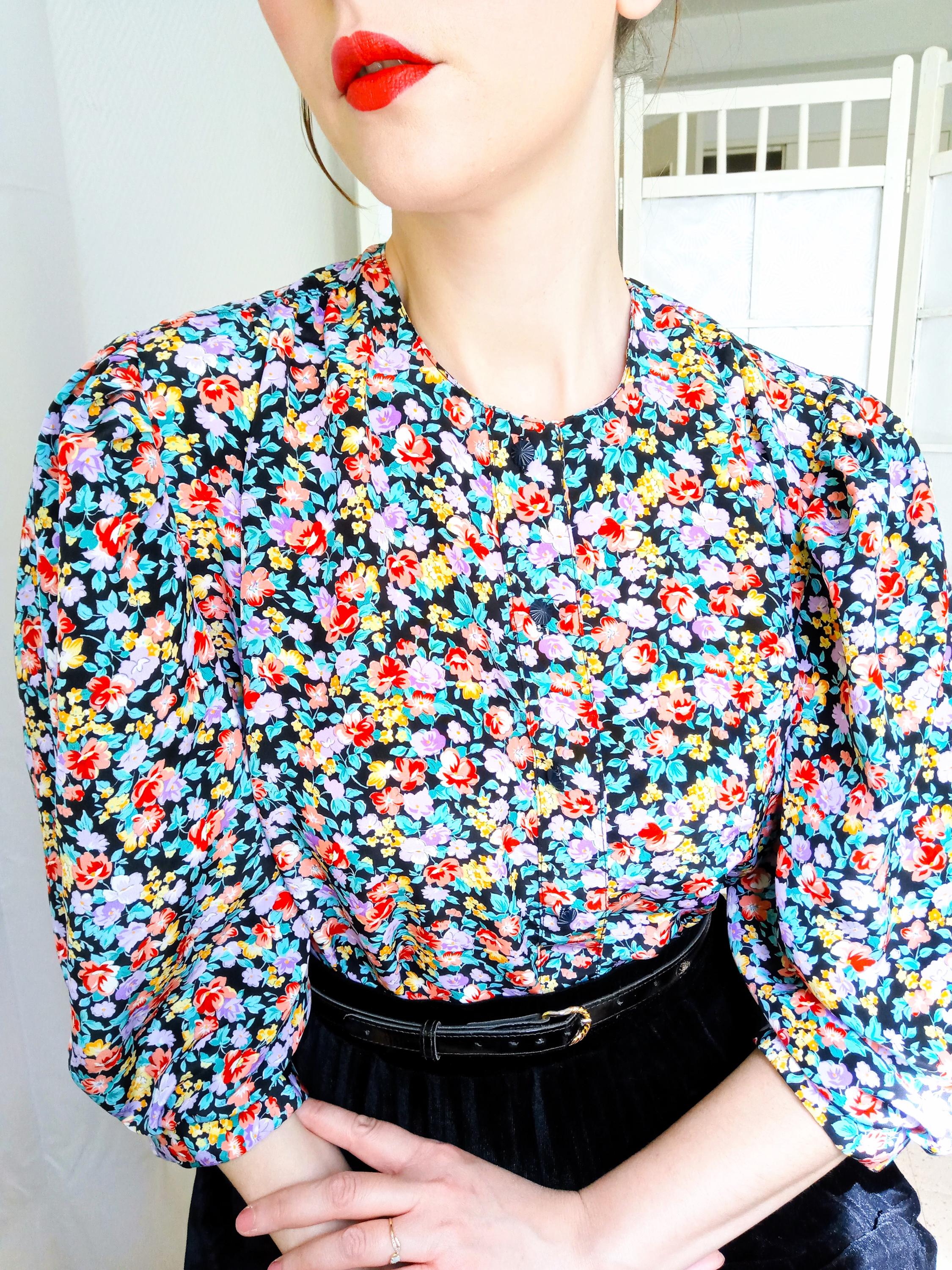 🇬🇧 This stunning 80s blouse from the French fashion house Thérèse Baumaire is a piece of great elegance. It features a typical "Neo-40s" cut, very popular at the time, which pays tribute to the structured and feminine silhouette of the post-war era.