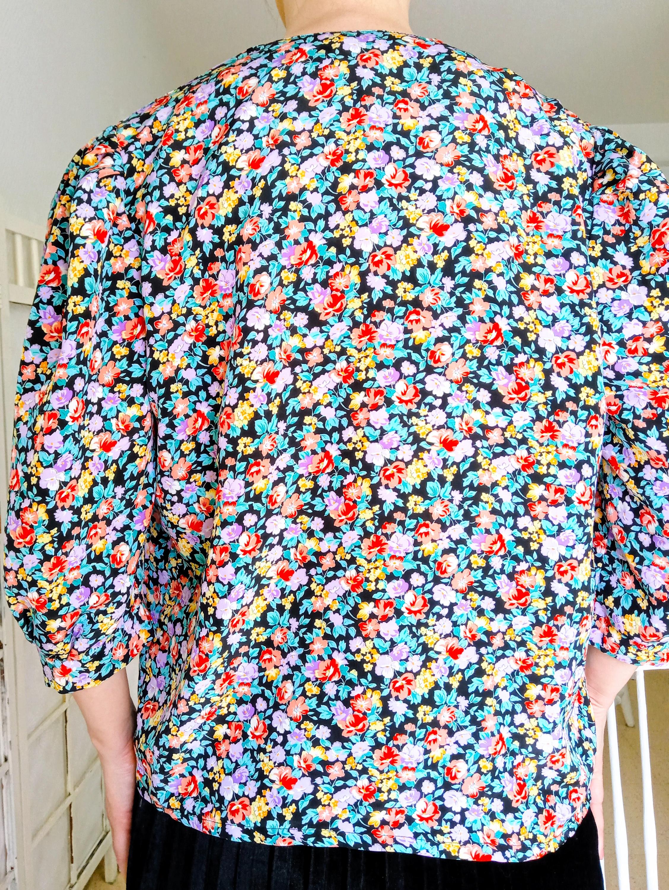 ▪️L'imprimé : Un motif floral multicolore vibrant qui ressort magnifiquement sur un fond noir profond.