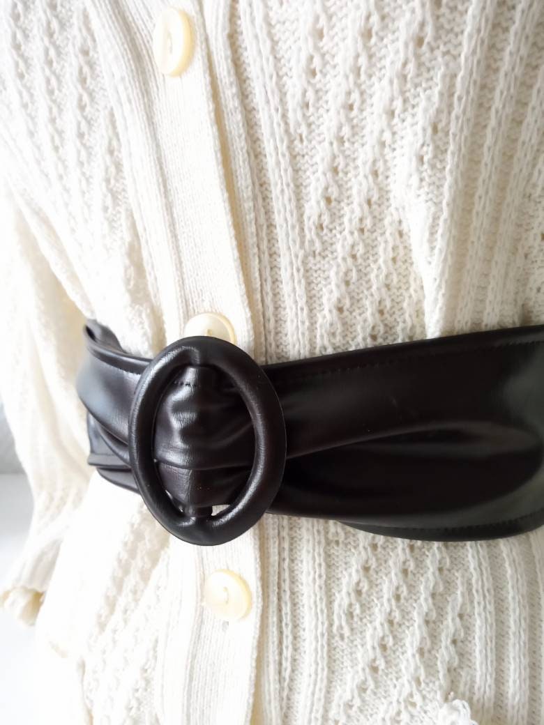 50's style Wide belt in brown imitation leatherette, made in the 70/80's, 8 cm wide, closure system oval sliding buckle, perfect condition.